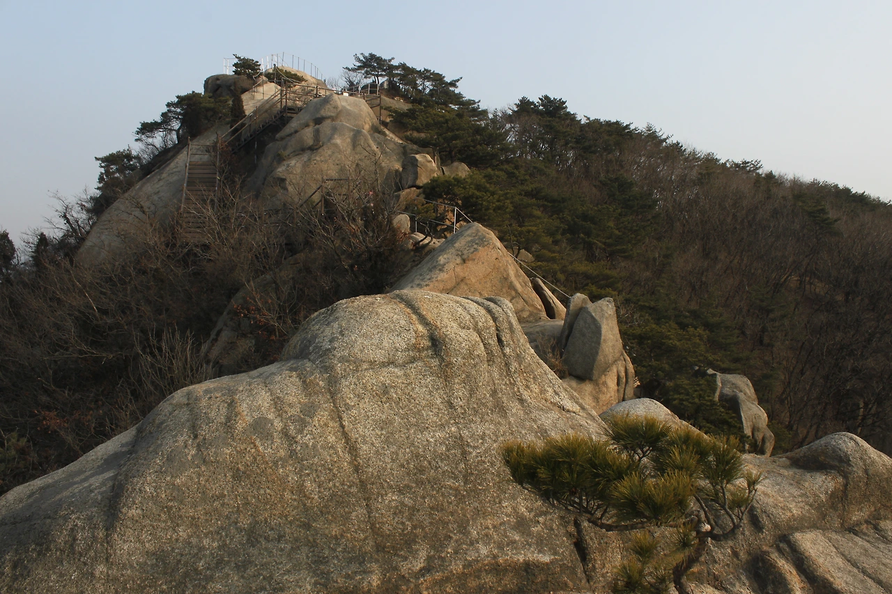 같이 따라갈까 생각도 했지만 '임꺽정봉'을 가보지 못한 터라 다시 발걸음을 위쪽으로 향했다. 임꺽정봉의 한적함과 노을을 즐기며 대교 아파트 방향으로 호젓히 하산길을 재촉했다.