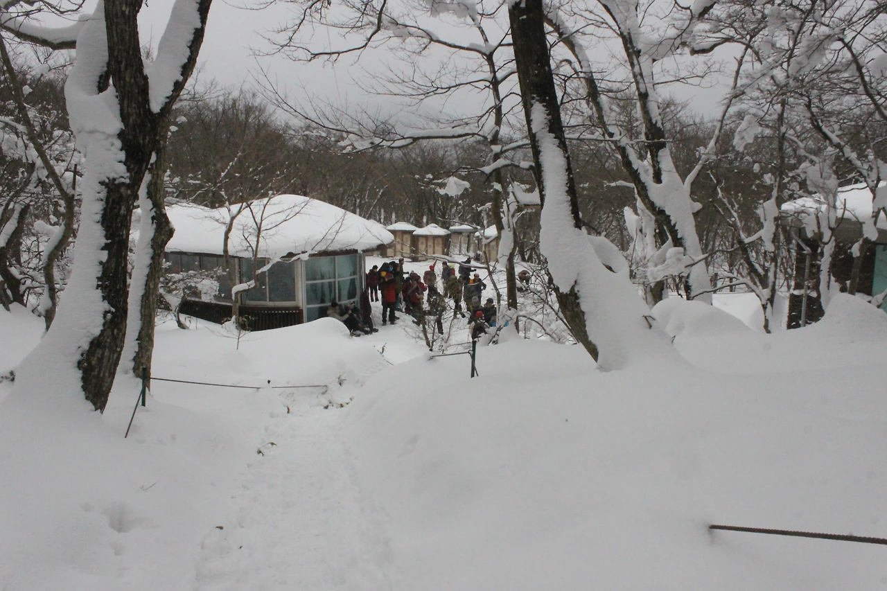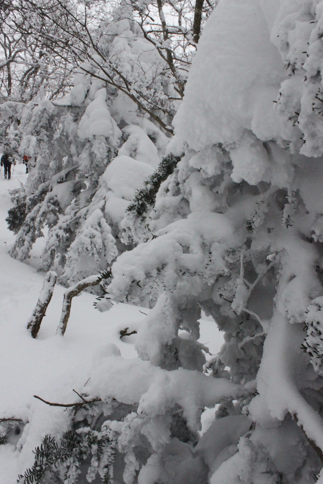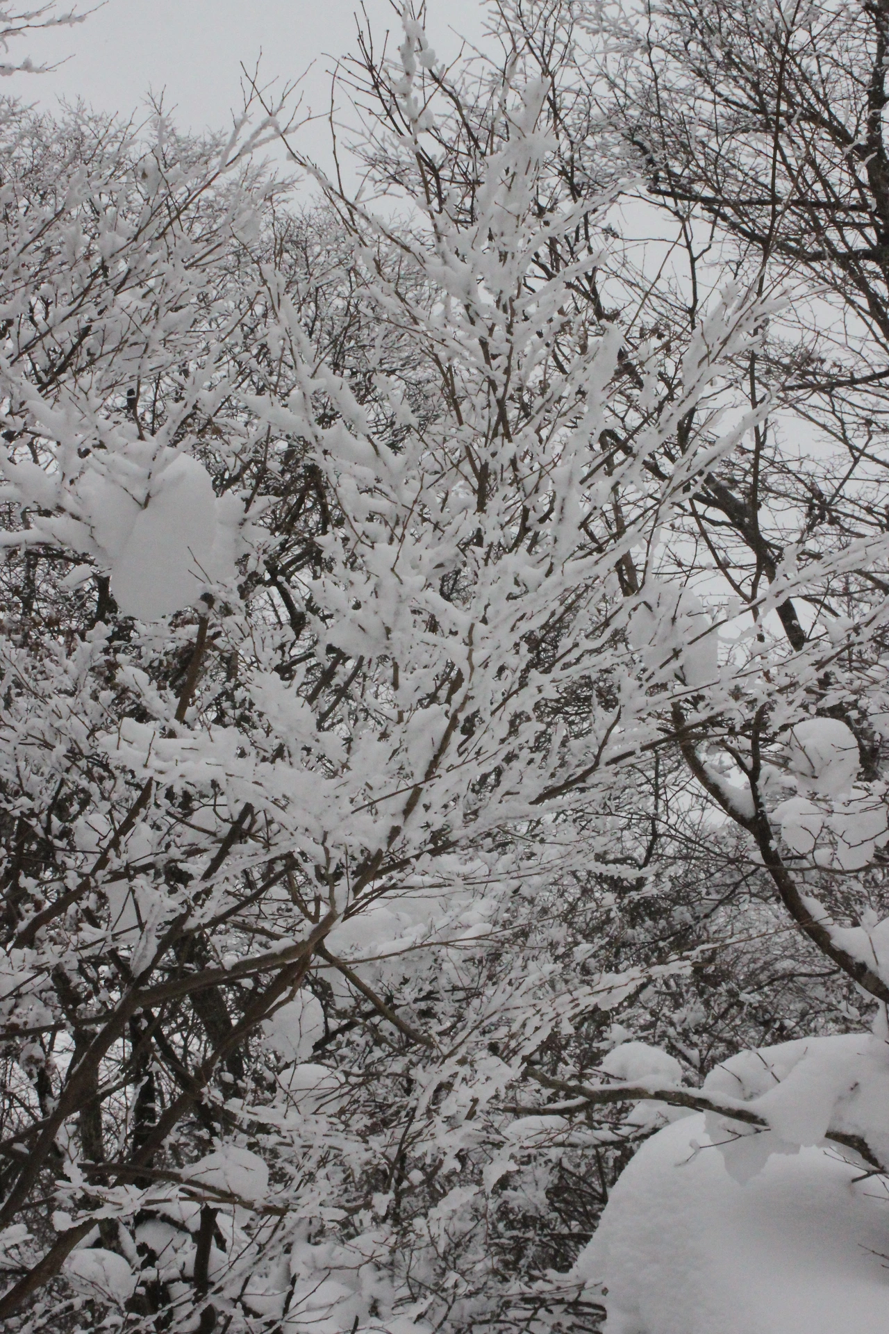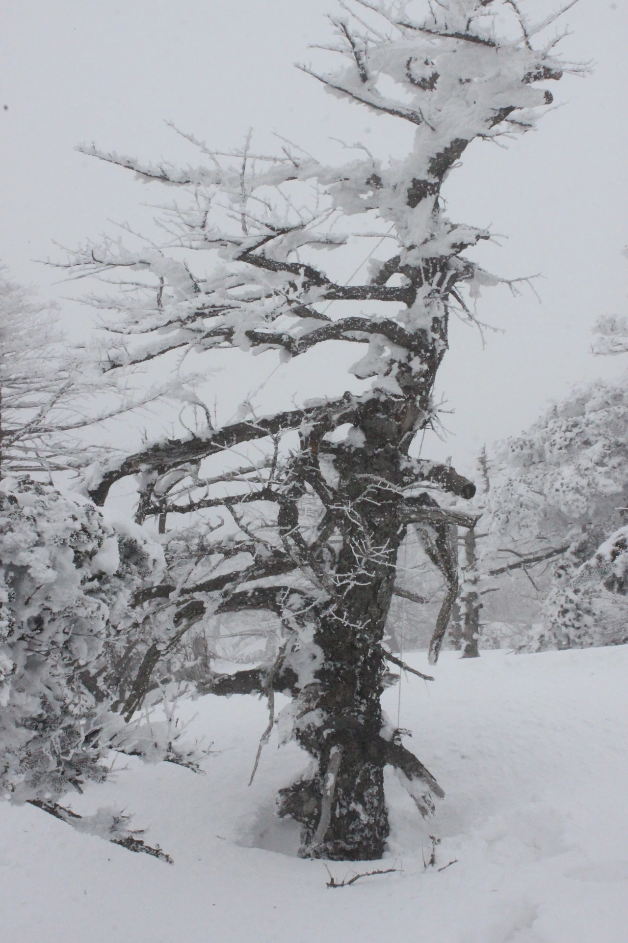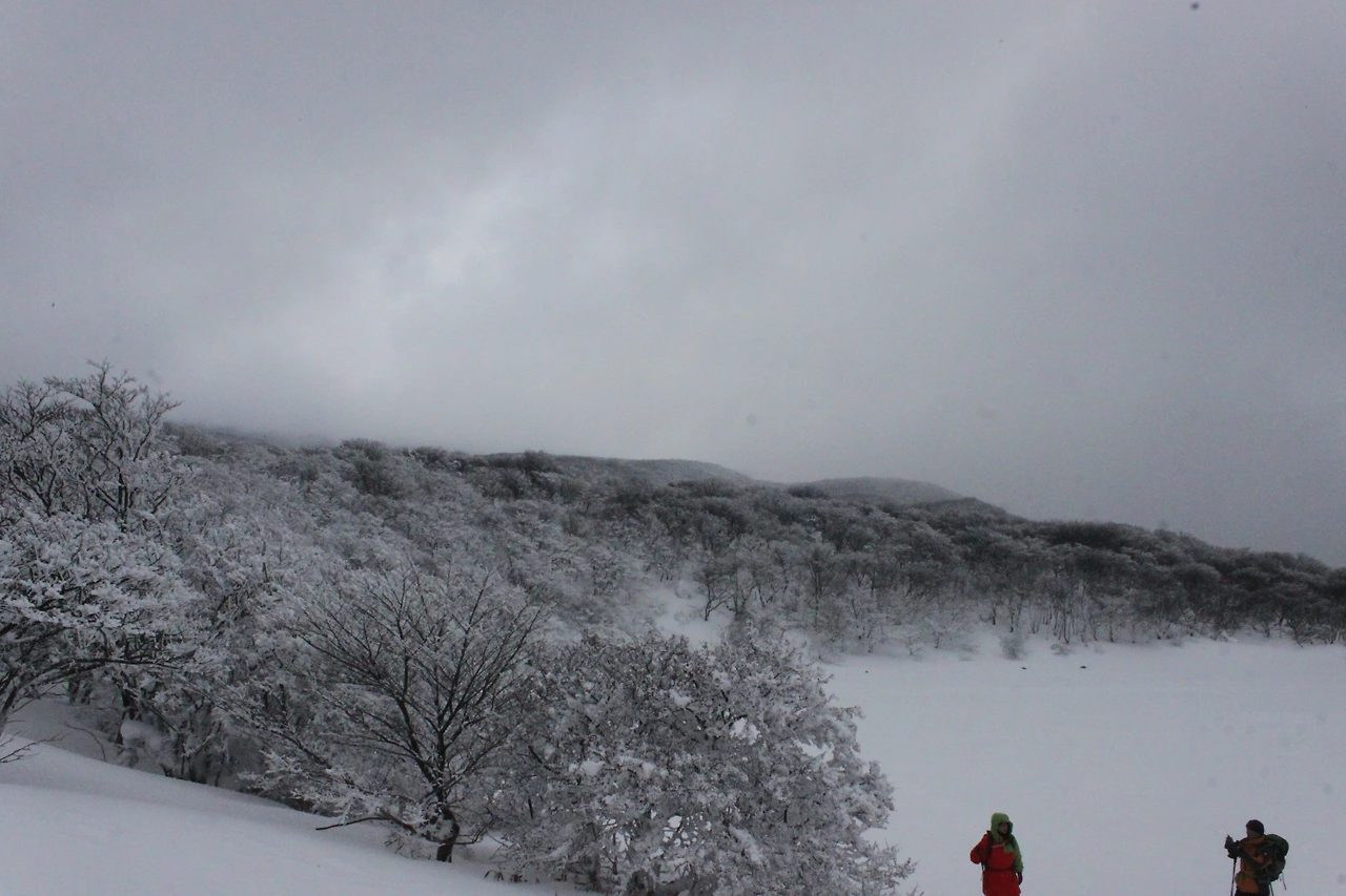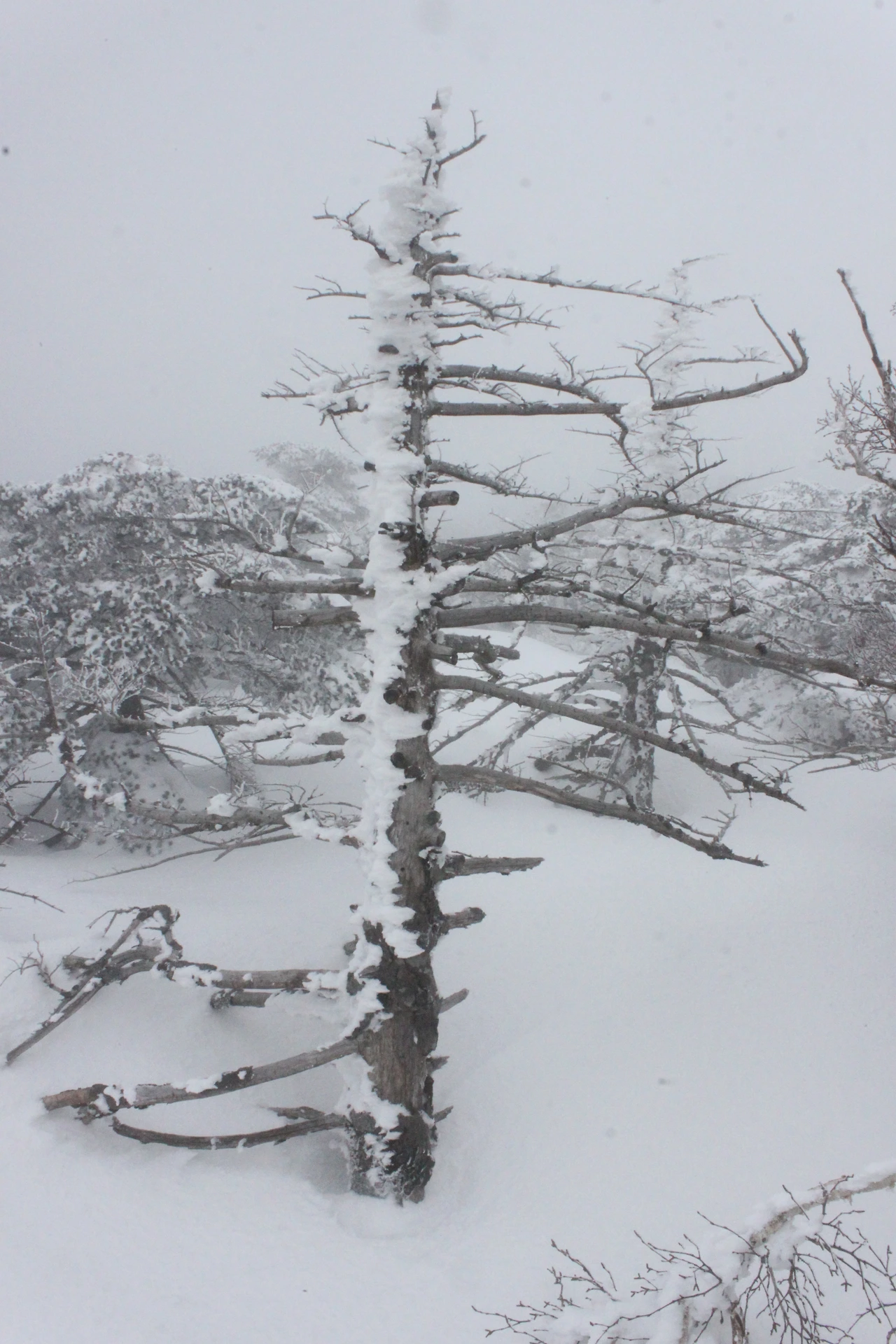대피소를 통과해 경사가 점점 심해지는 길을 올라가다 보니 나무에 눈꽃이 마치 뼈대를 이룬 집처럼 그 하얀 속 뼈대들은 보여주어 마치 은은하고 찬란한 후광처럼 빛을 발한다.