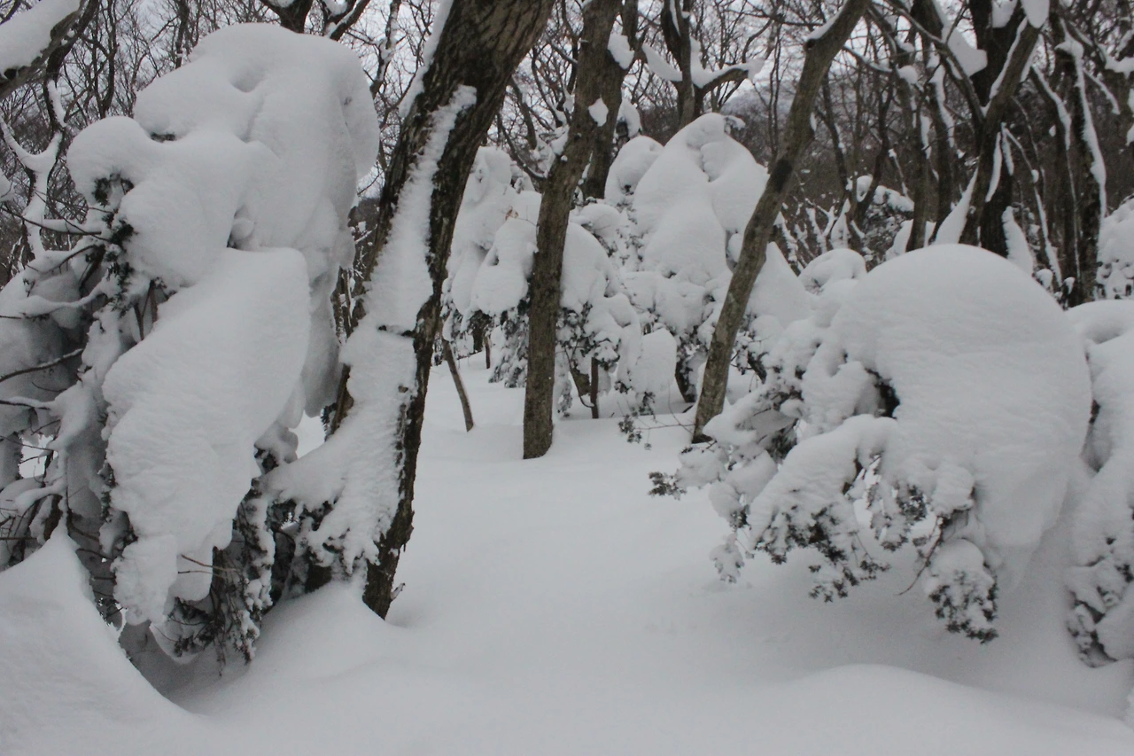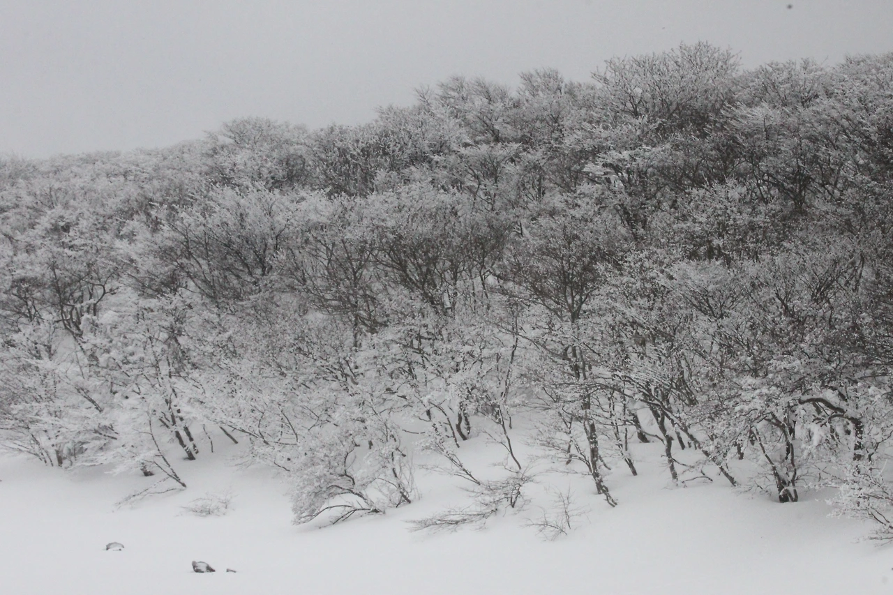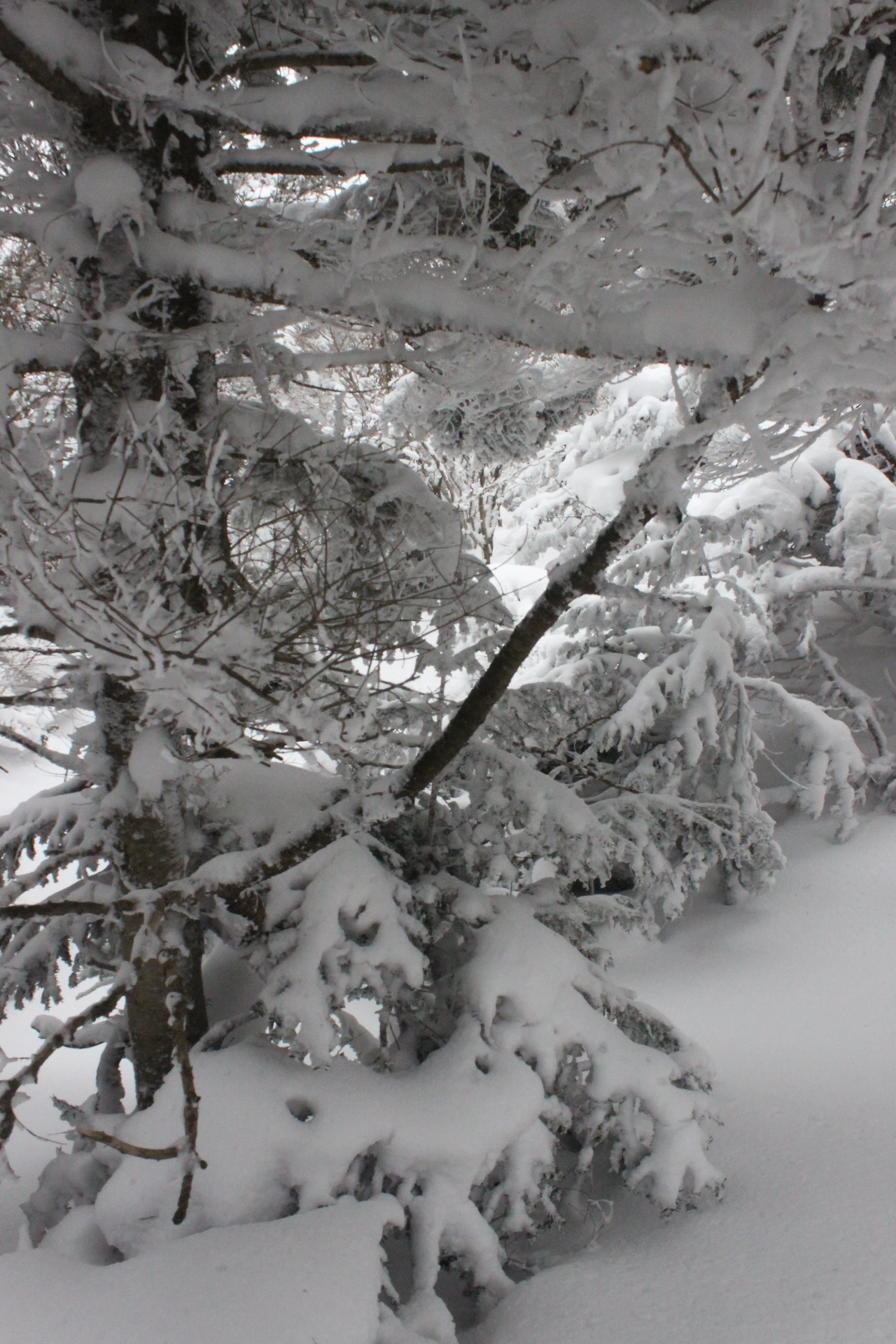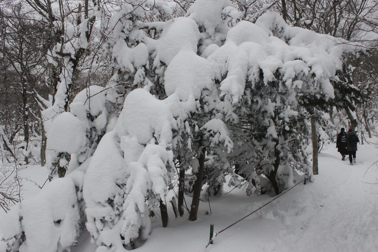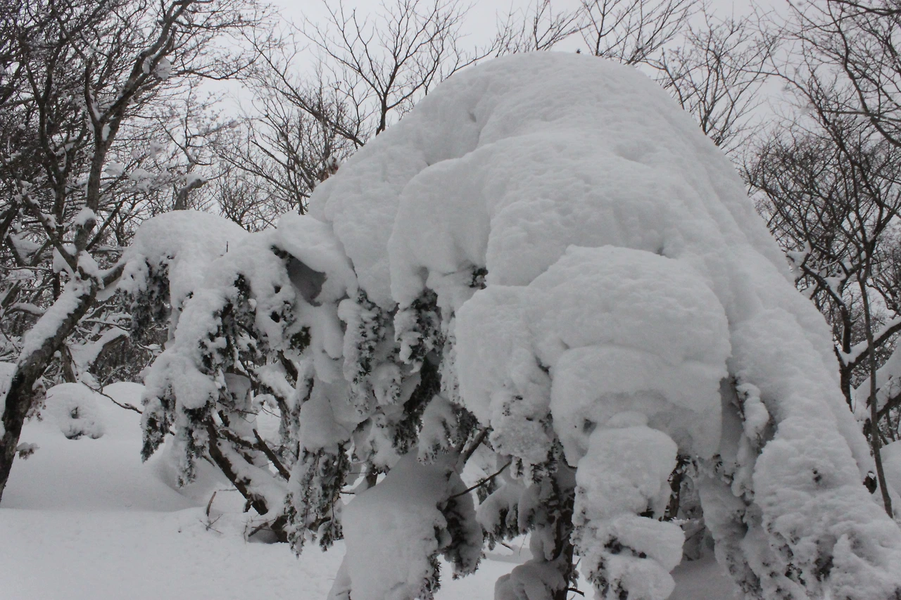 대피소를 통과해 경사가 점점 심해지는 길을 올라가다 보니 나무에 눈꽃이 마치 뼈대를 이룬 집처럼 그 하얀 속 뼈대들은 보여주어 마치 은은하고 찬란한 후광처럼 빛을 발한다.
