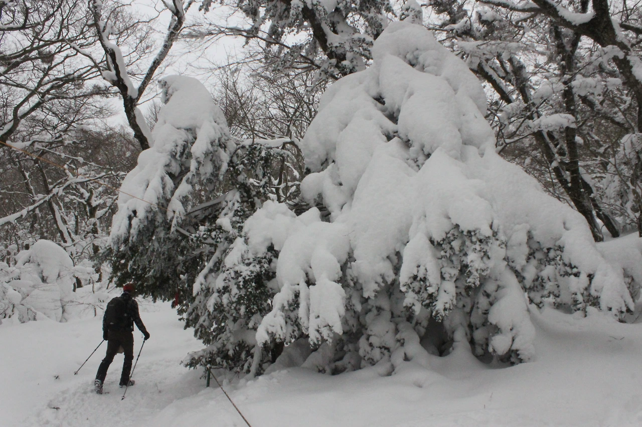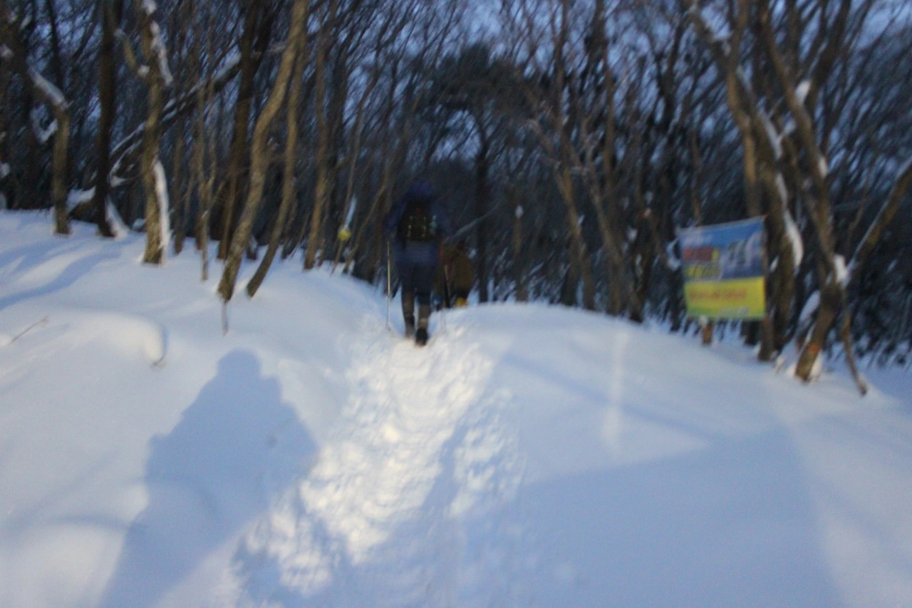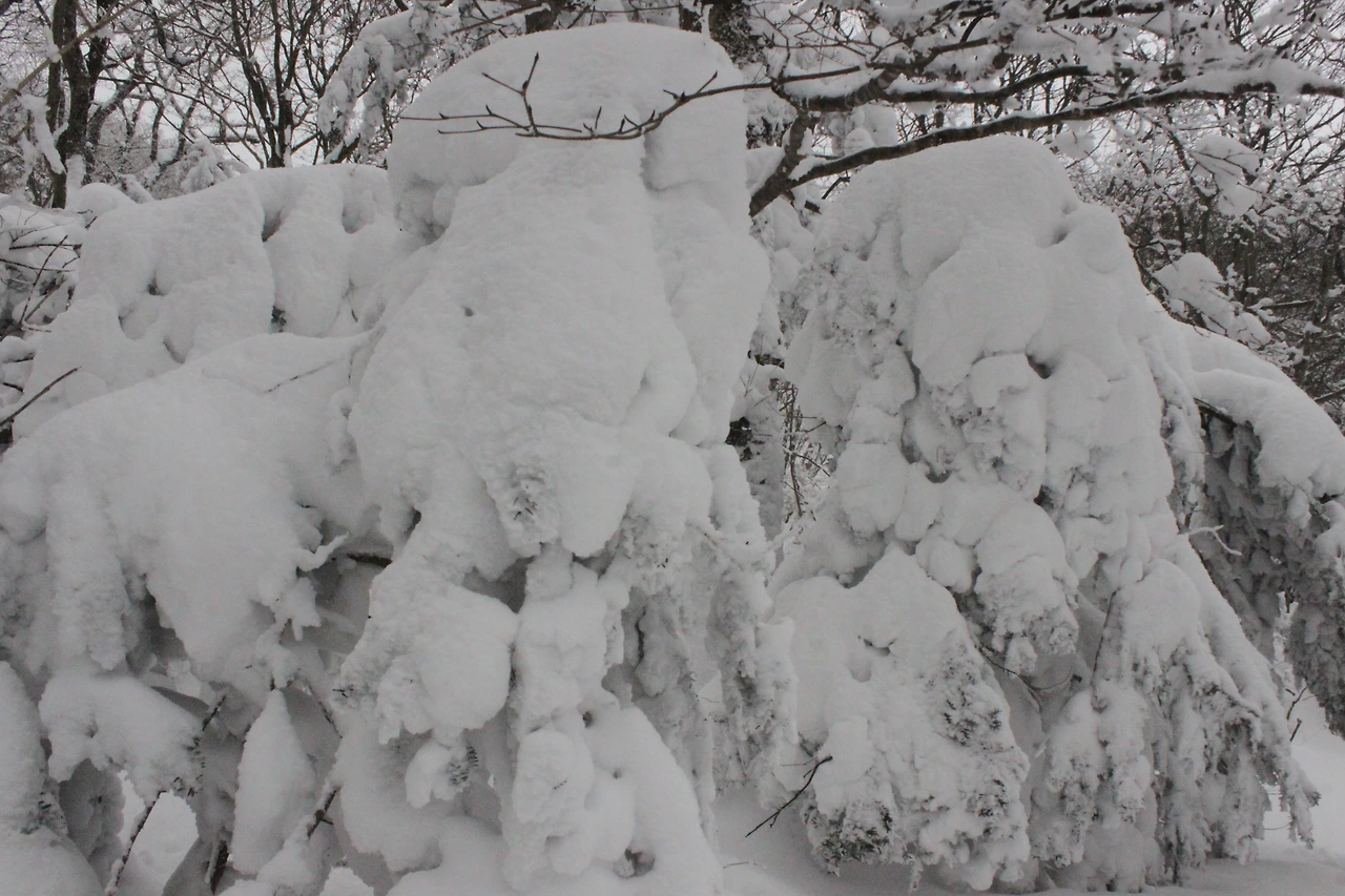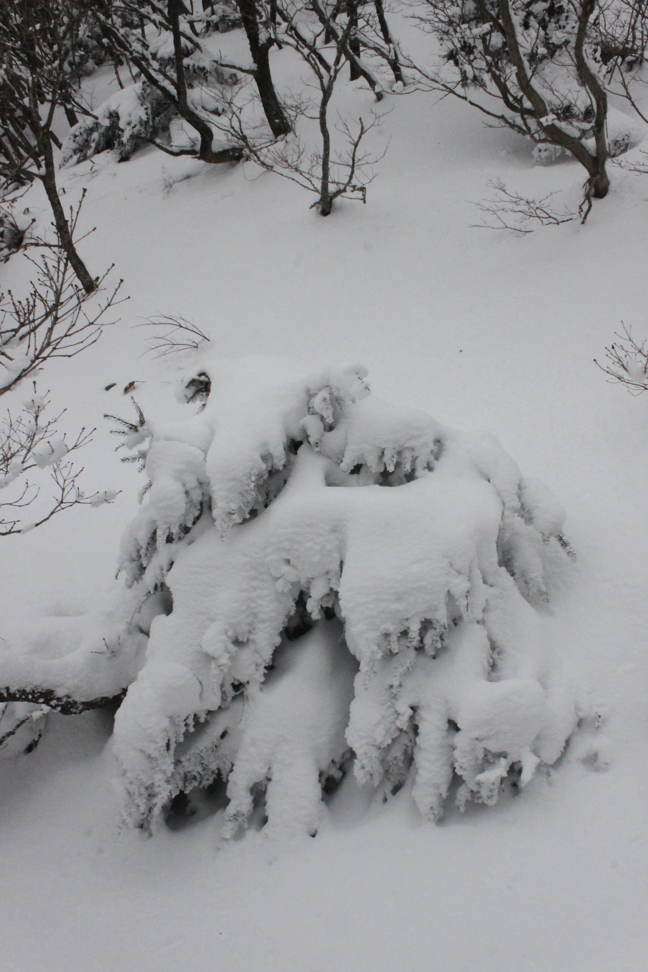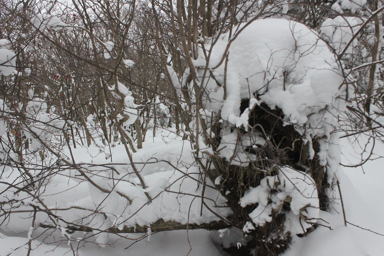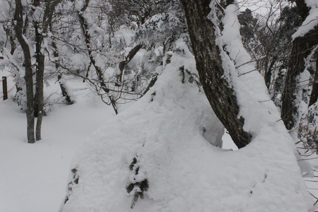 대피소를 통과해 경사가 점점 심해지는 길을 올라가다 보니 나무에 눈꽃이 마치 뼈대를 이룬 집처럼 그 하얀 속 뼈대들은 보여주어 마치 은은하고 찬란한 후광처럼 빛을 발한다.