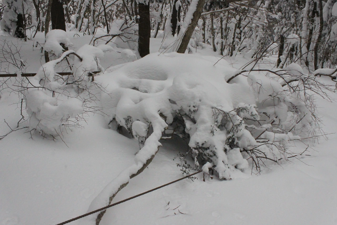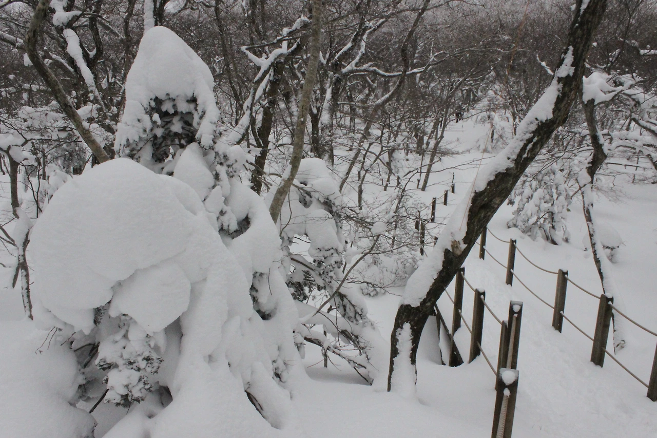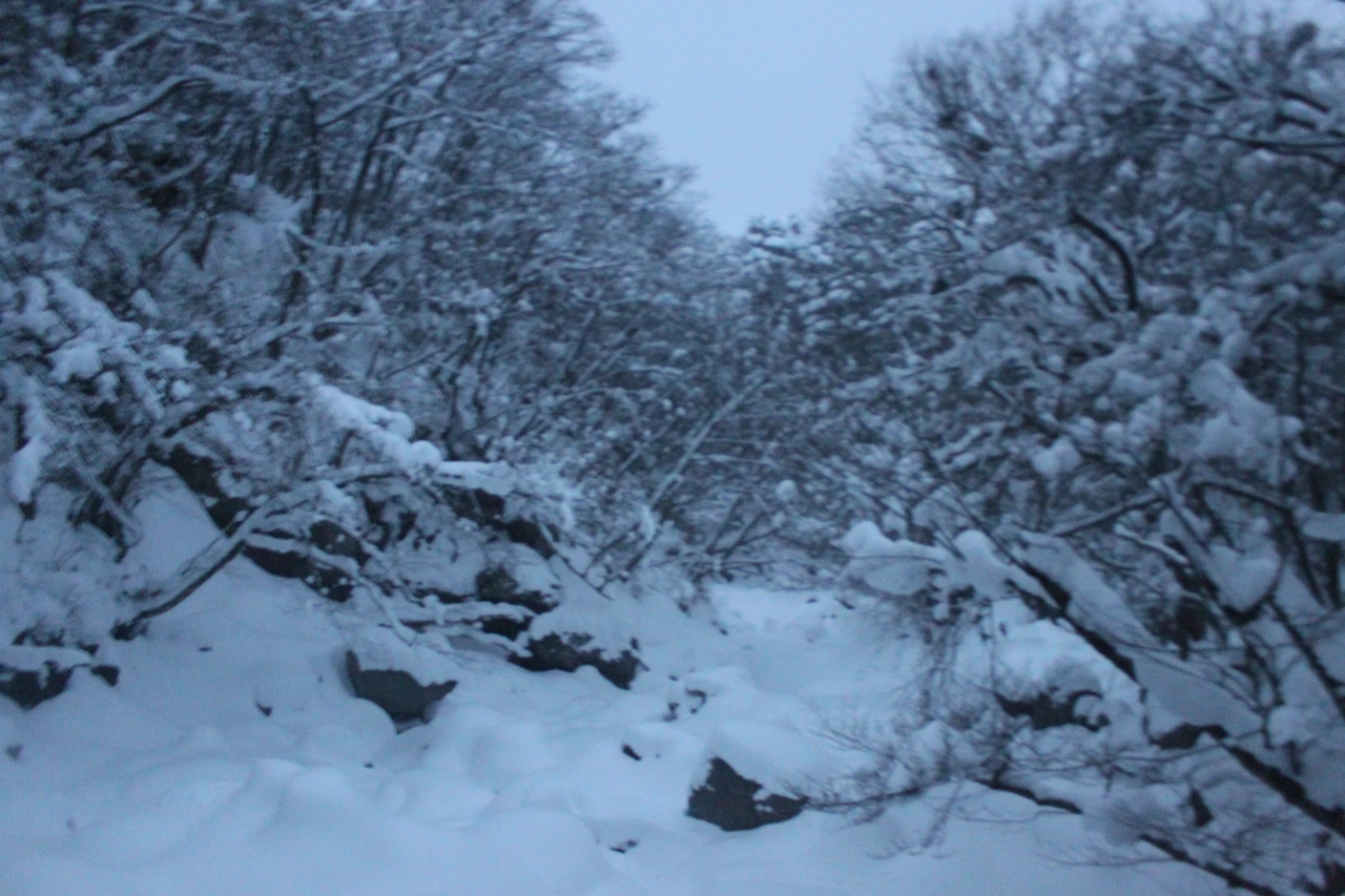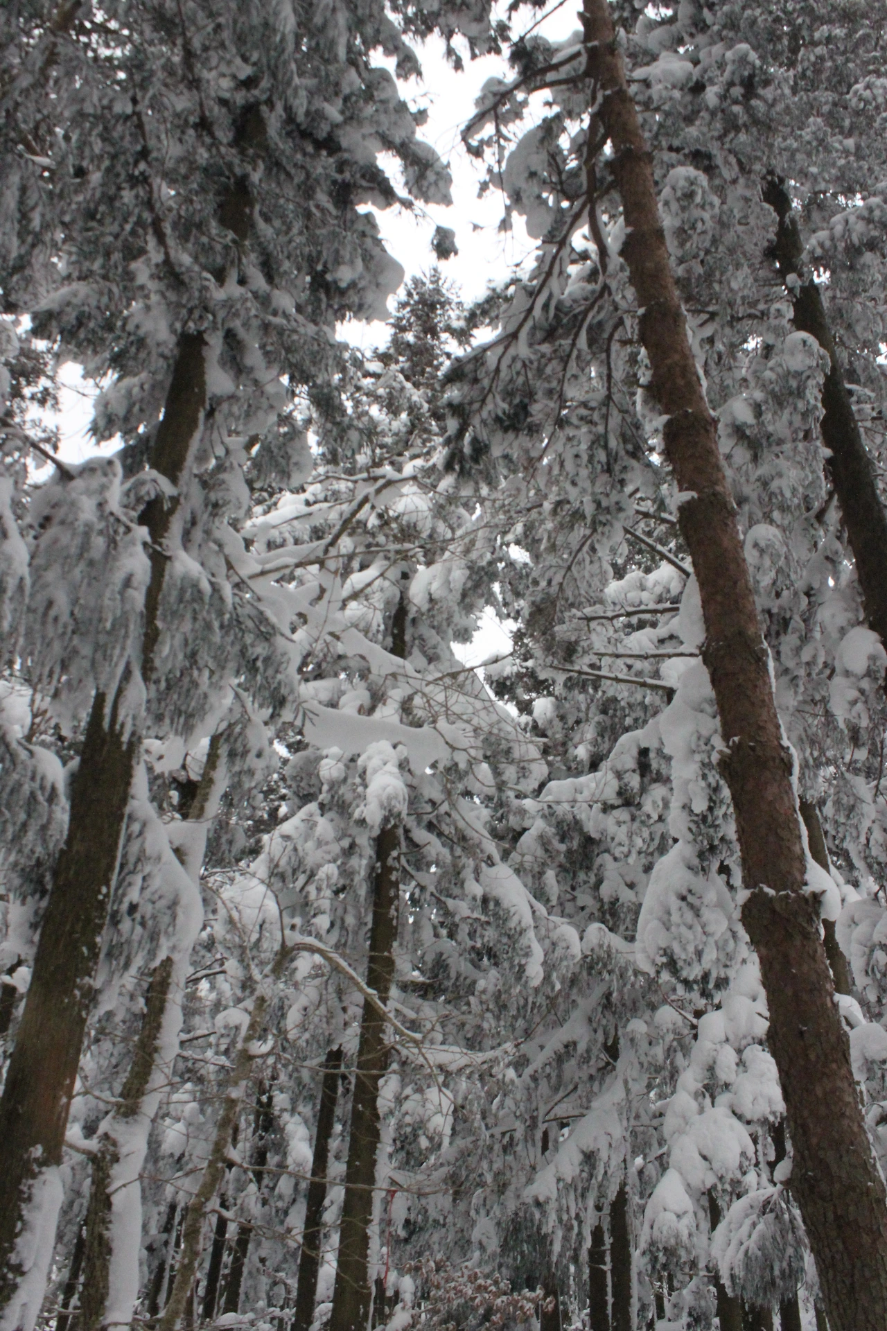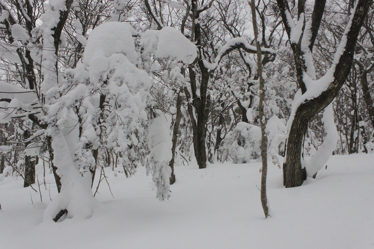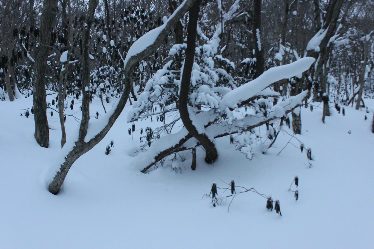 대피소를 통과해 경사가 점점 심해지는 길을 올라가다 보니 나무에 눈꽃이 마치 뼈대를 이룬 집처럼 그 하얀 속 뼈대들은 보여주어 마치 은은하고 찬란한 후광처럼 빛을 발한다.