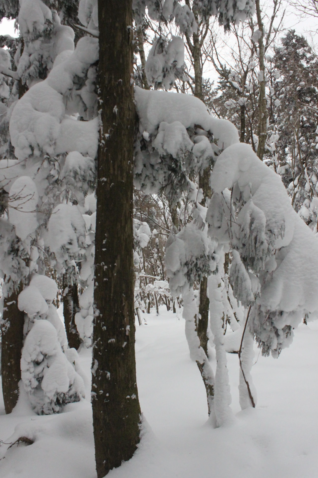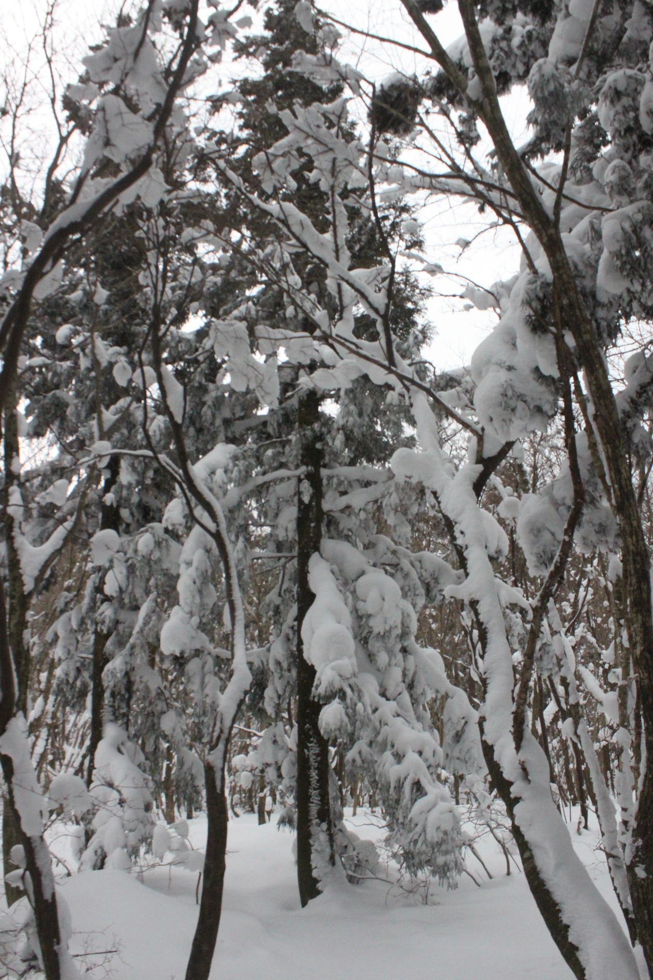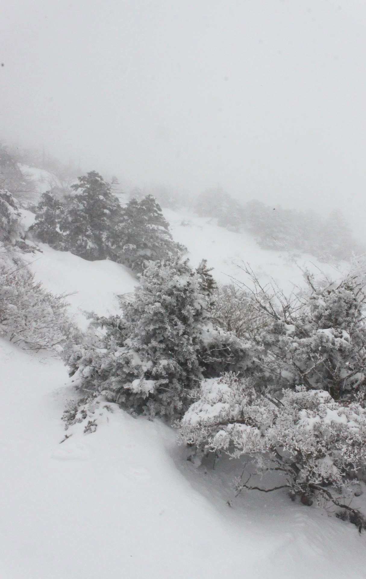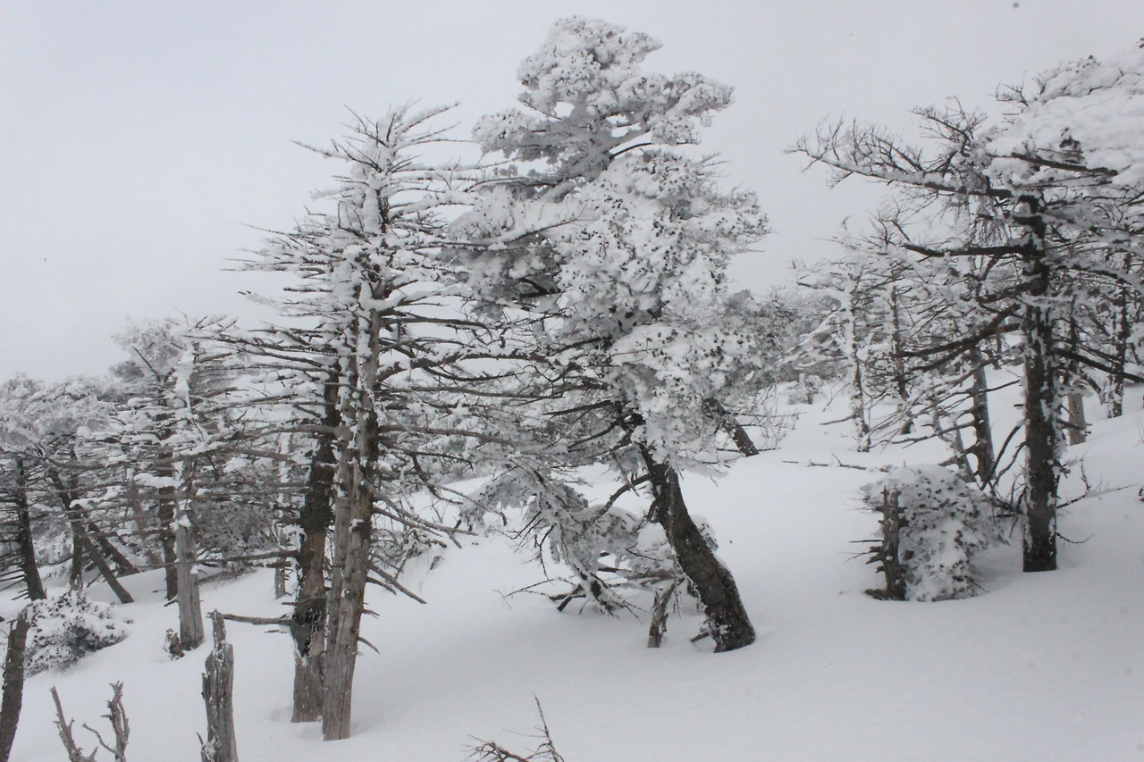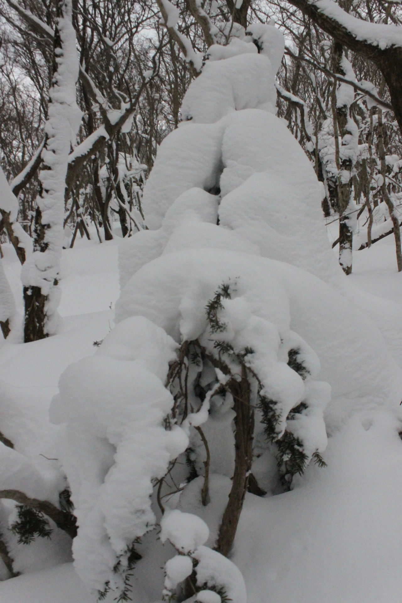 대피소를 통과해 경사가 점점 심해지는 길을 올라가다 보니 나무에 눈꽃이 마치 뼈대를 이룬 집처럼 그 하얀 속 뼈대들은 보여주어 마치 은은하고 찬란한 후광처럼 빛을 발한다.