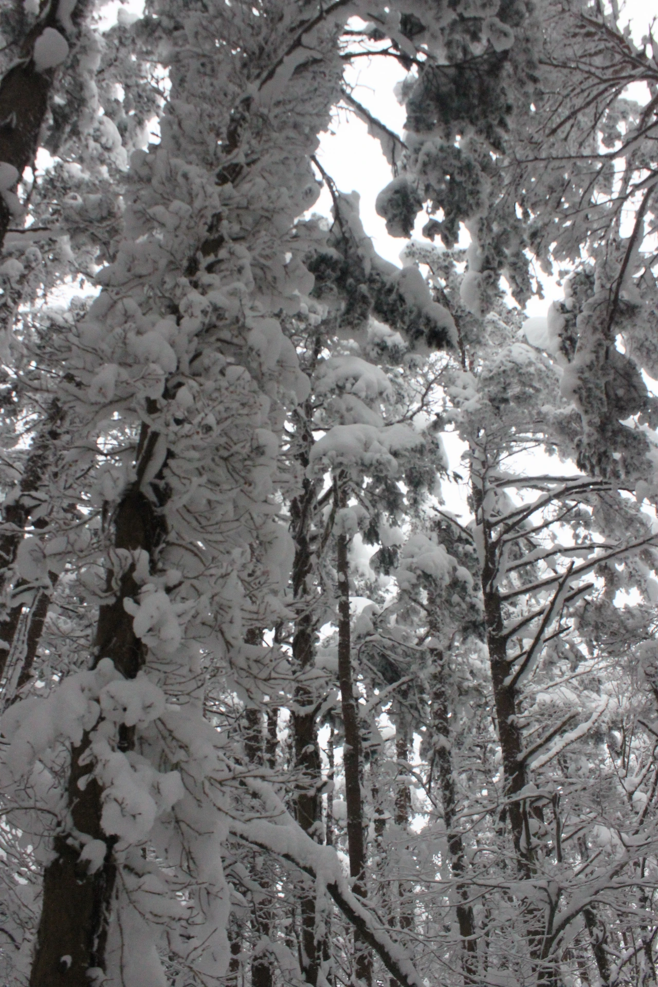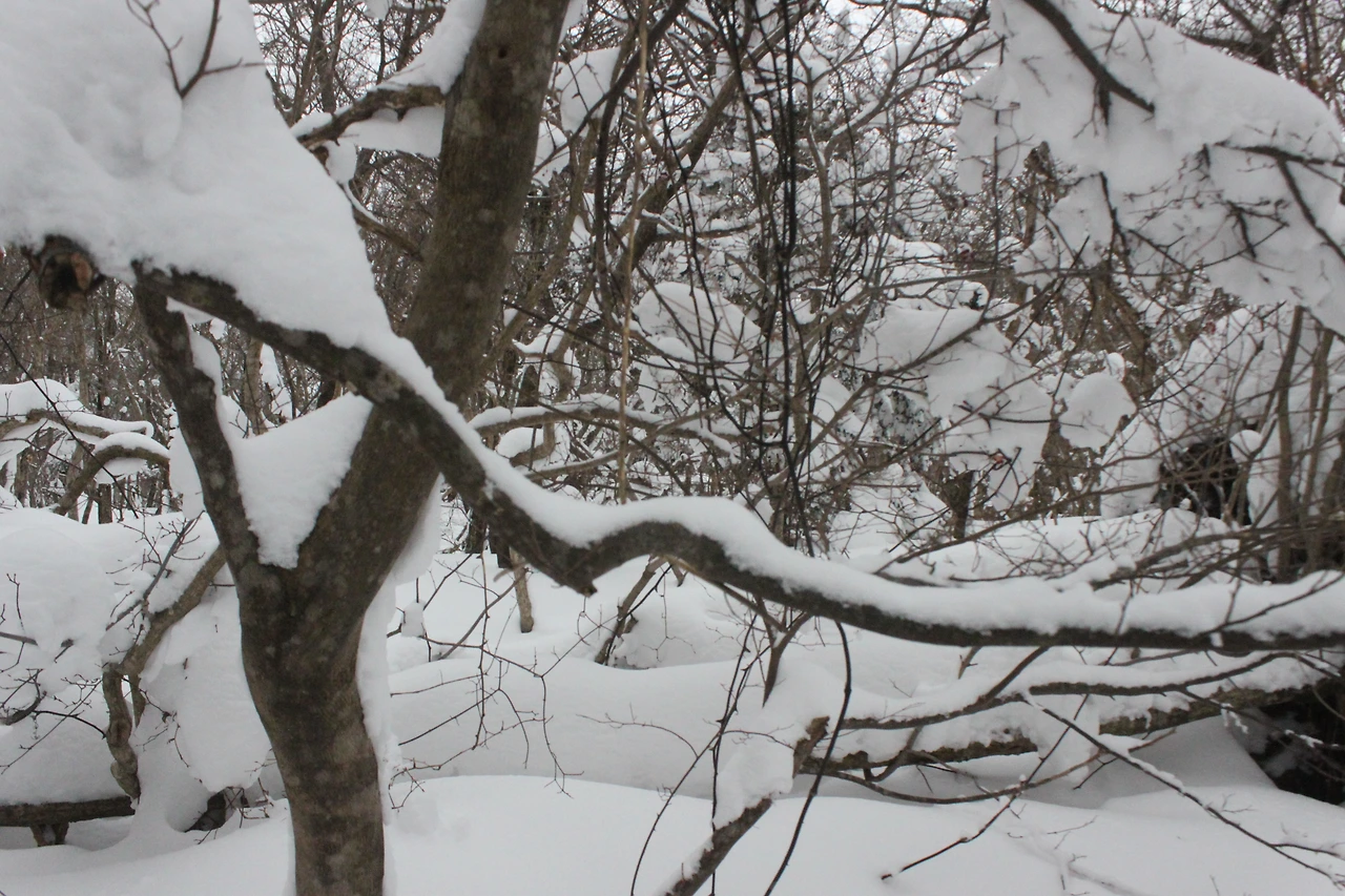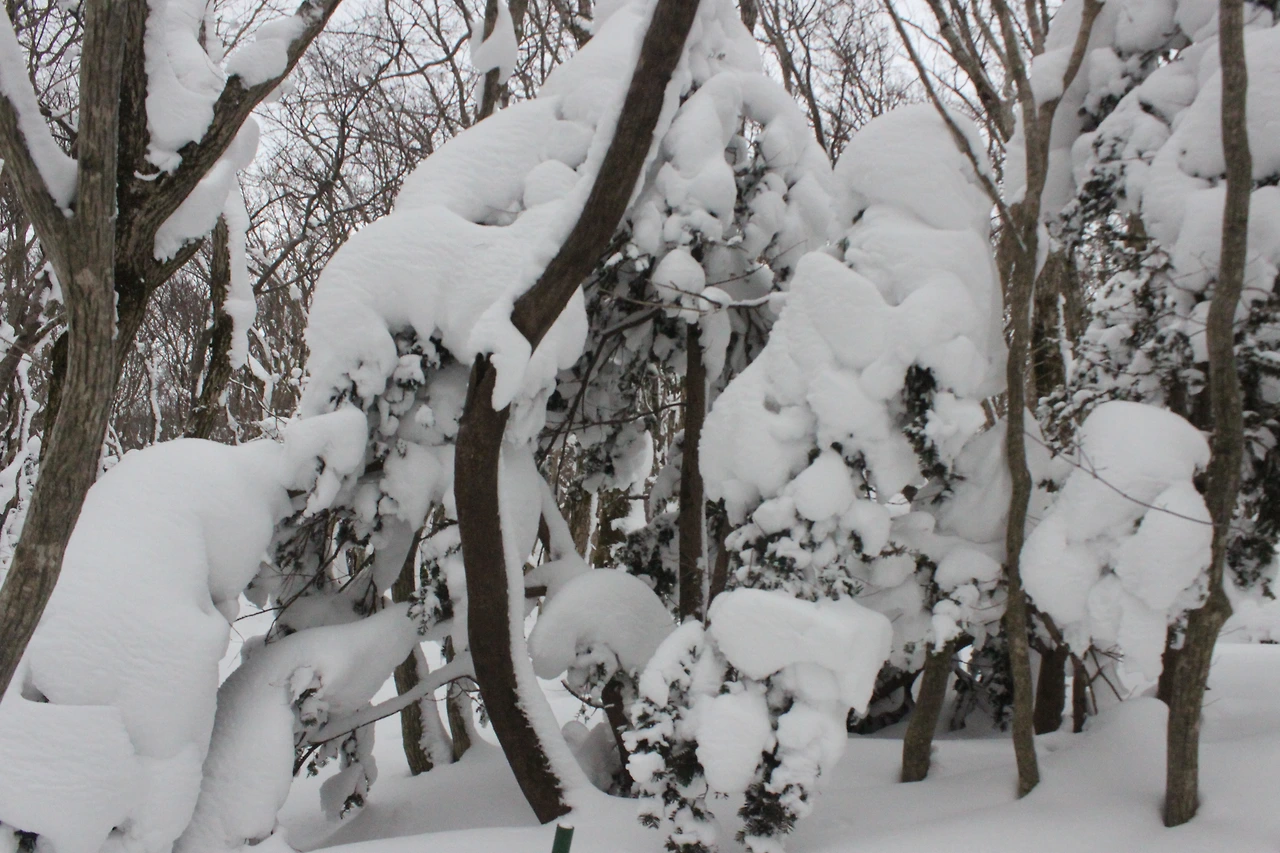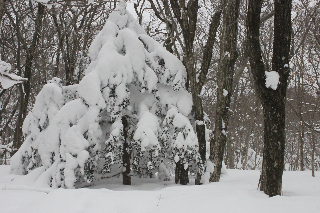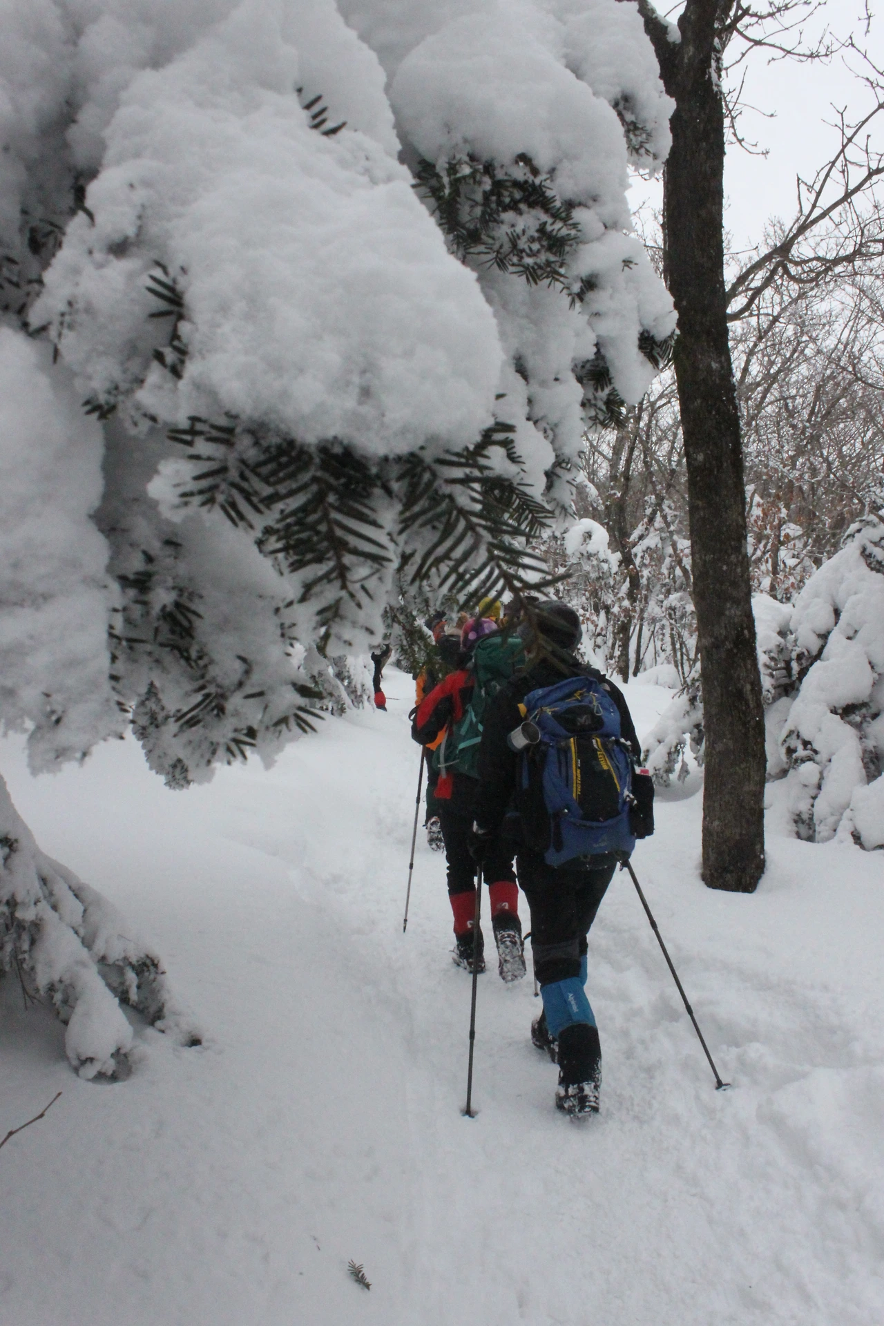 대피소를 통과해 경사가 점점 심해지는 길을 올라가다 보니 나무에 눈꽃이 마치 뼈대를 이룬 집처럼 그 하얀 속 뼈대들은 보여주어 마치 은은하고 찬란한 후광처럼 빛을 발한다.