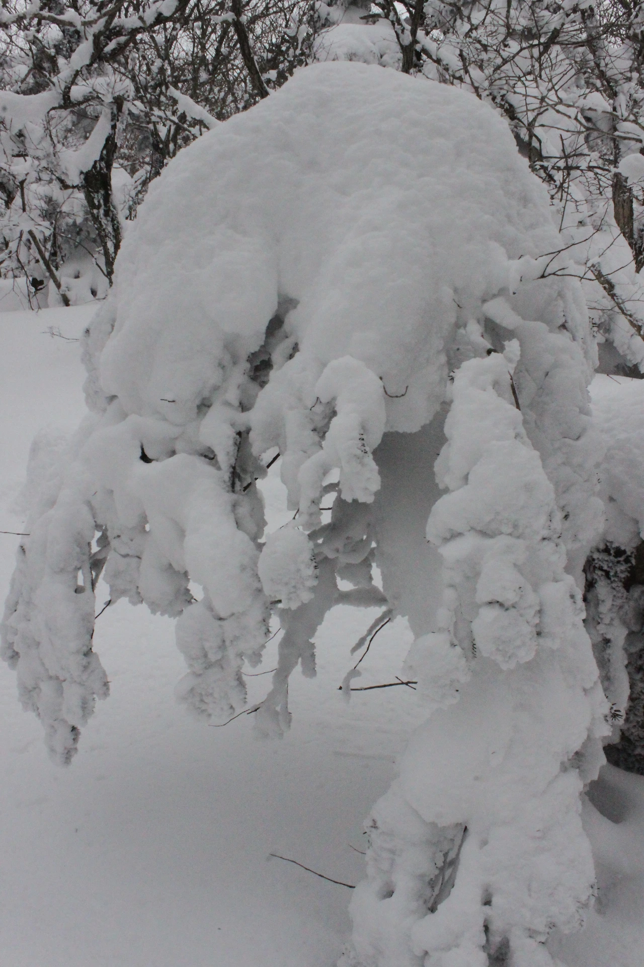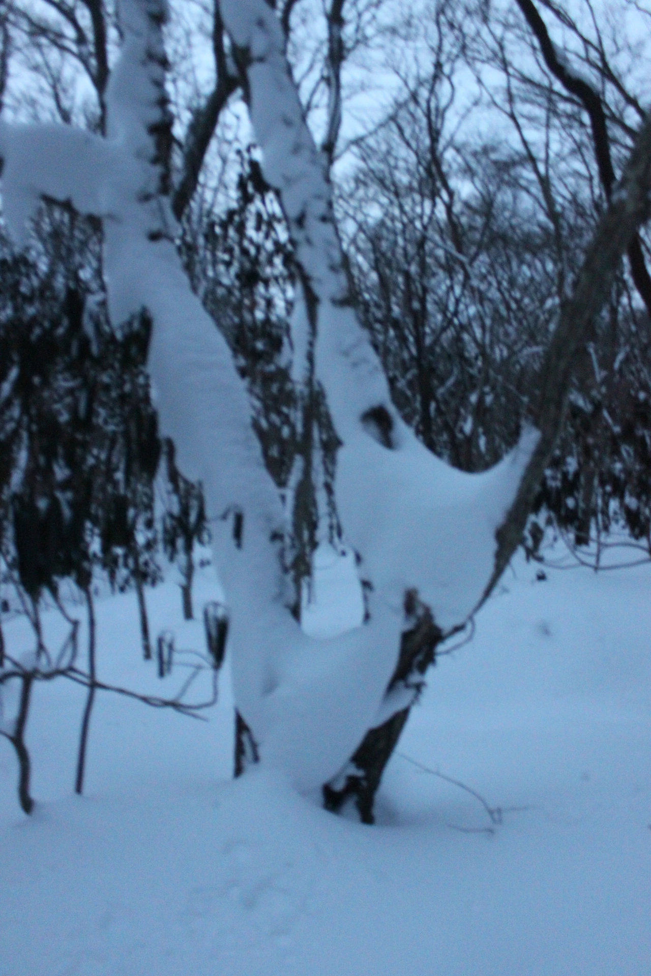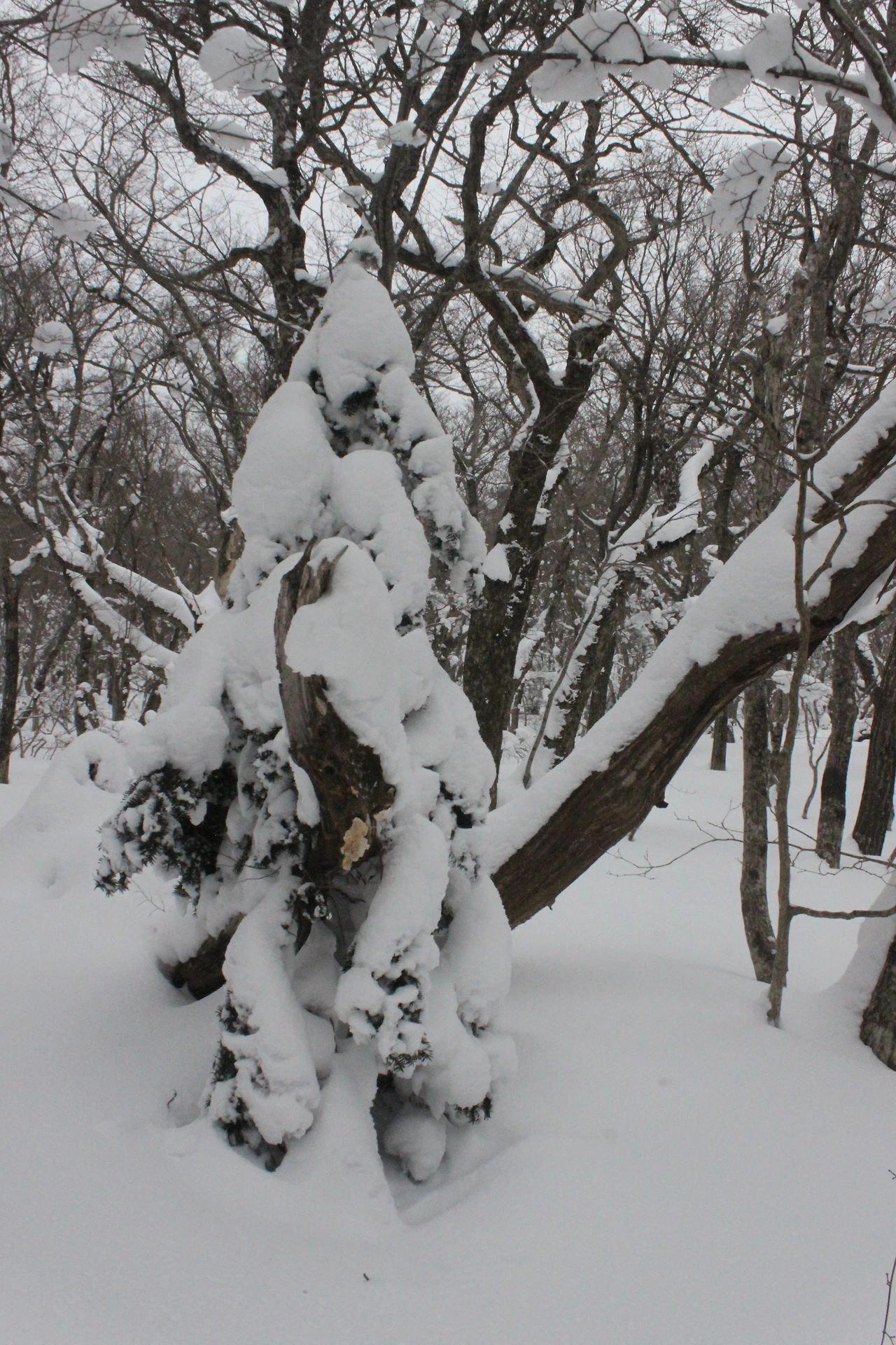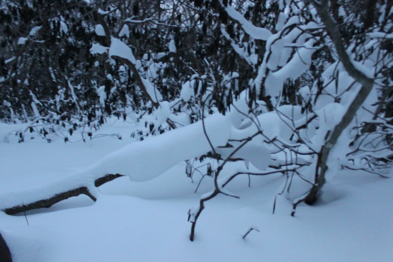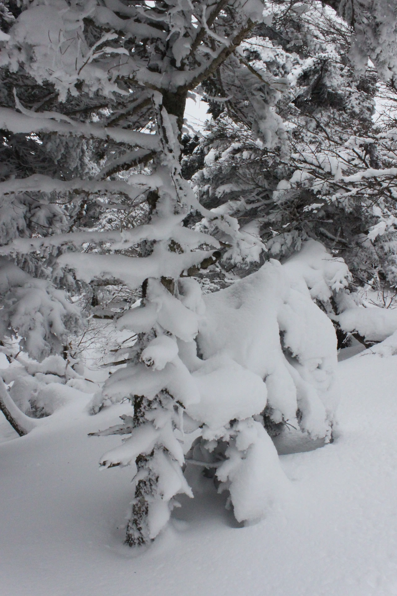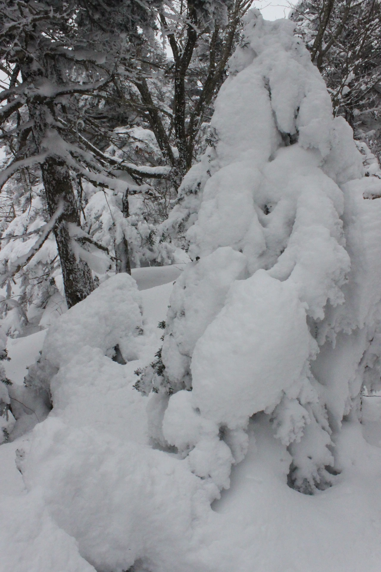대피소를 통과해 경사가 점점 심해지는 길을 올라가다 보니 나무에 눈꽃이 마치 뼈대를 이룬 집처럼 그 하얀 속 뼈대들은 보여주어 마치 은은하고 찬란한 후광처럼 빛을 발한다.