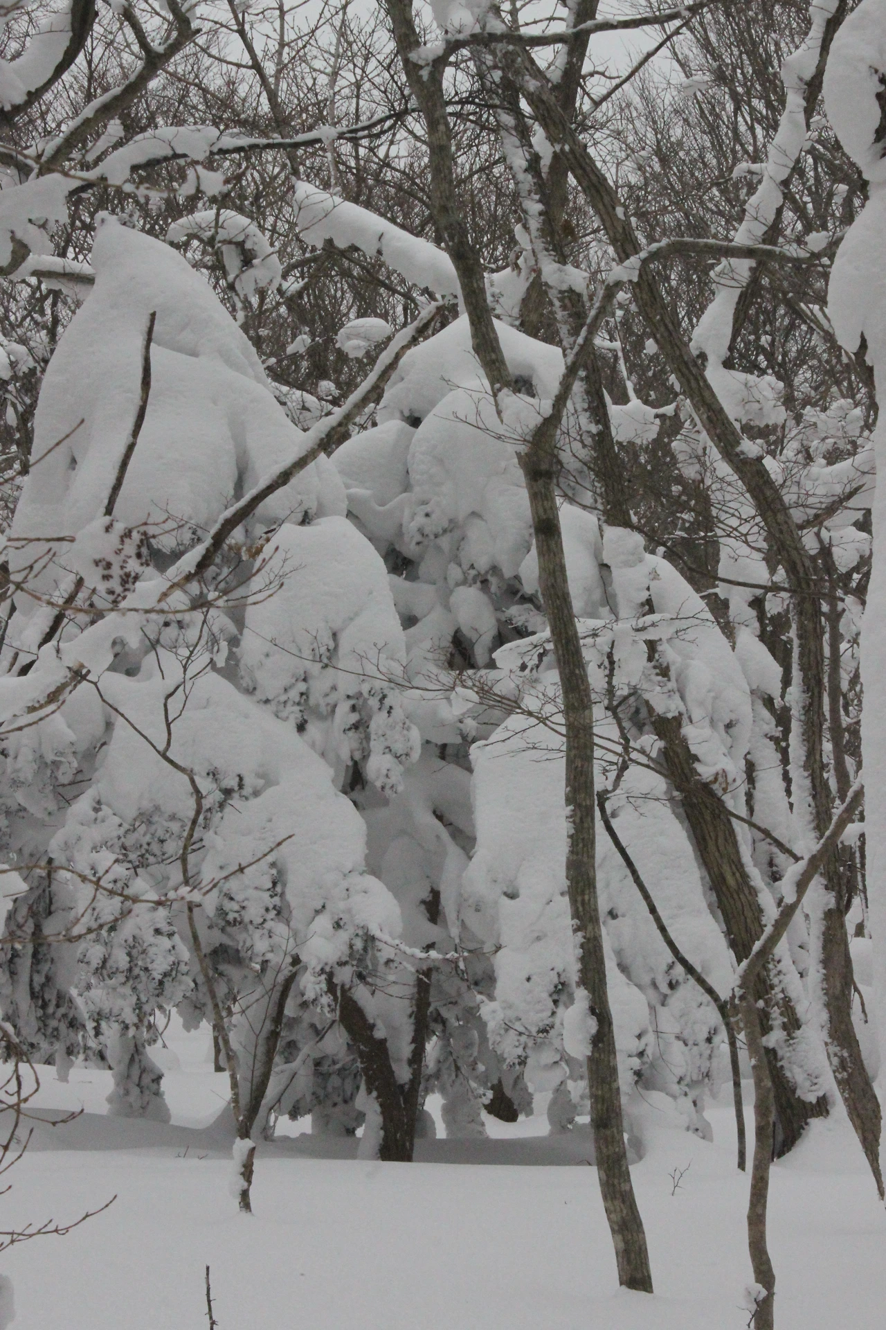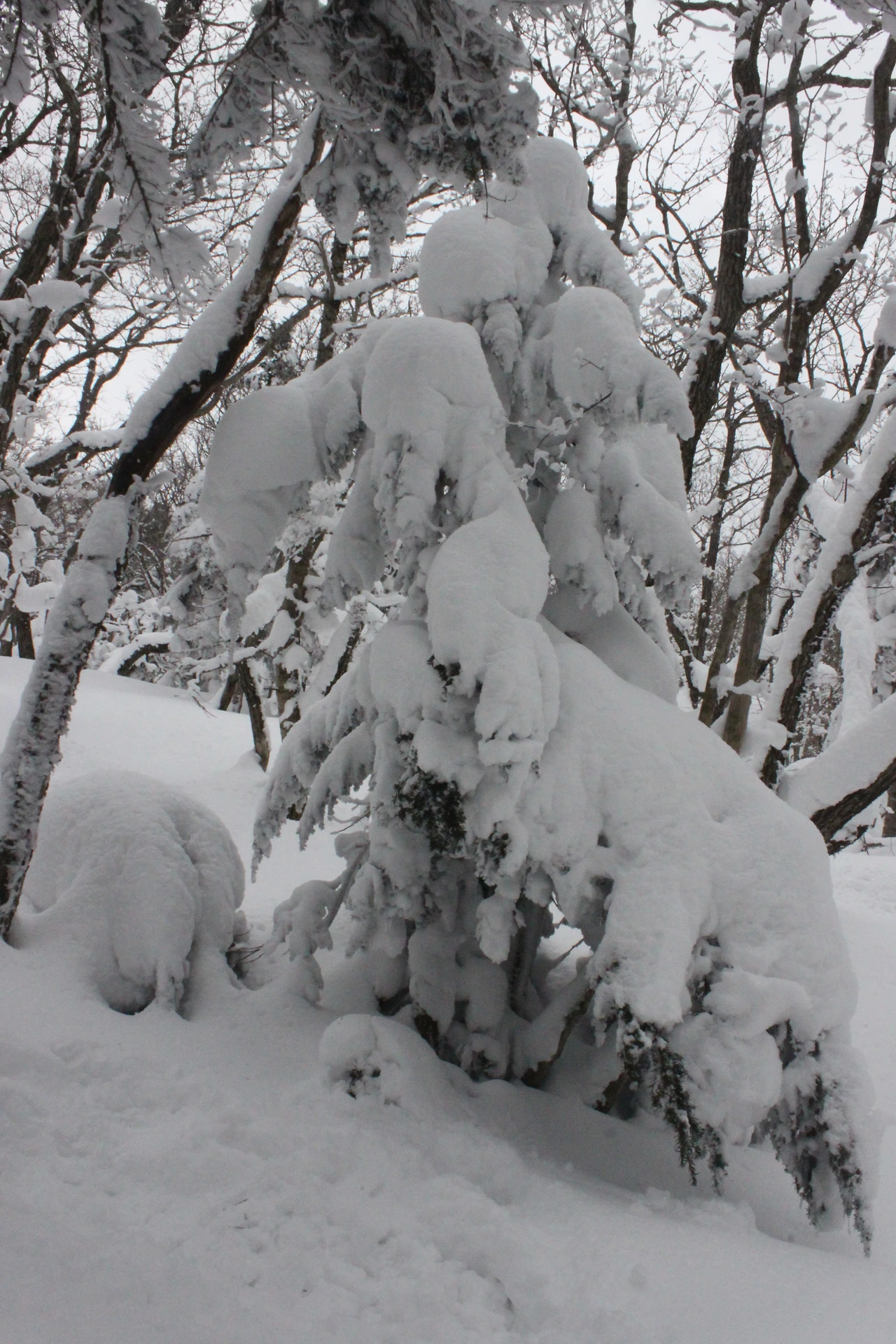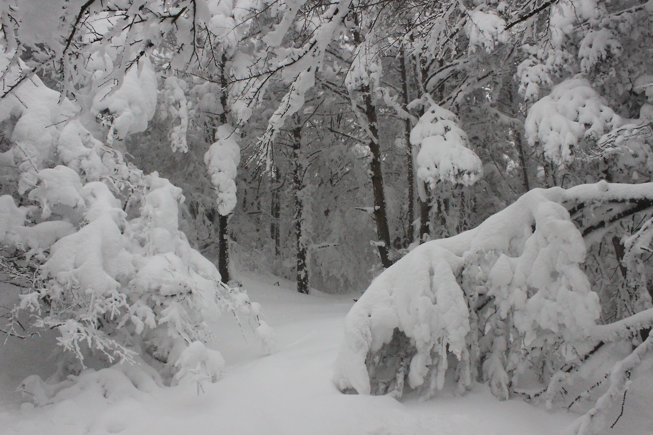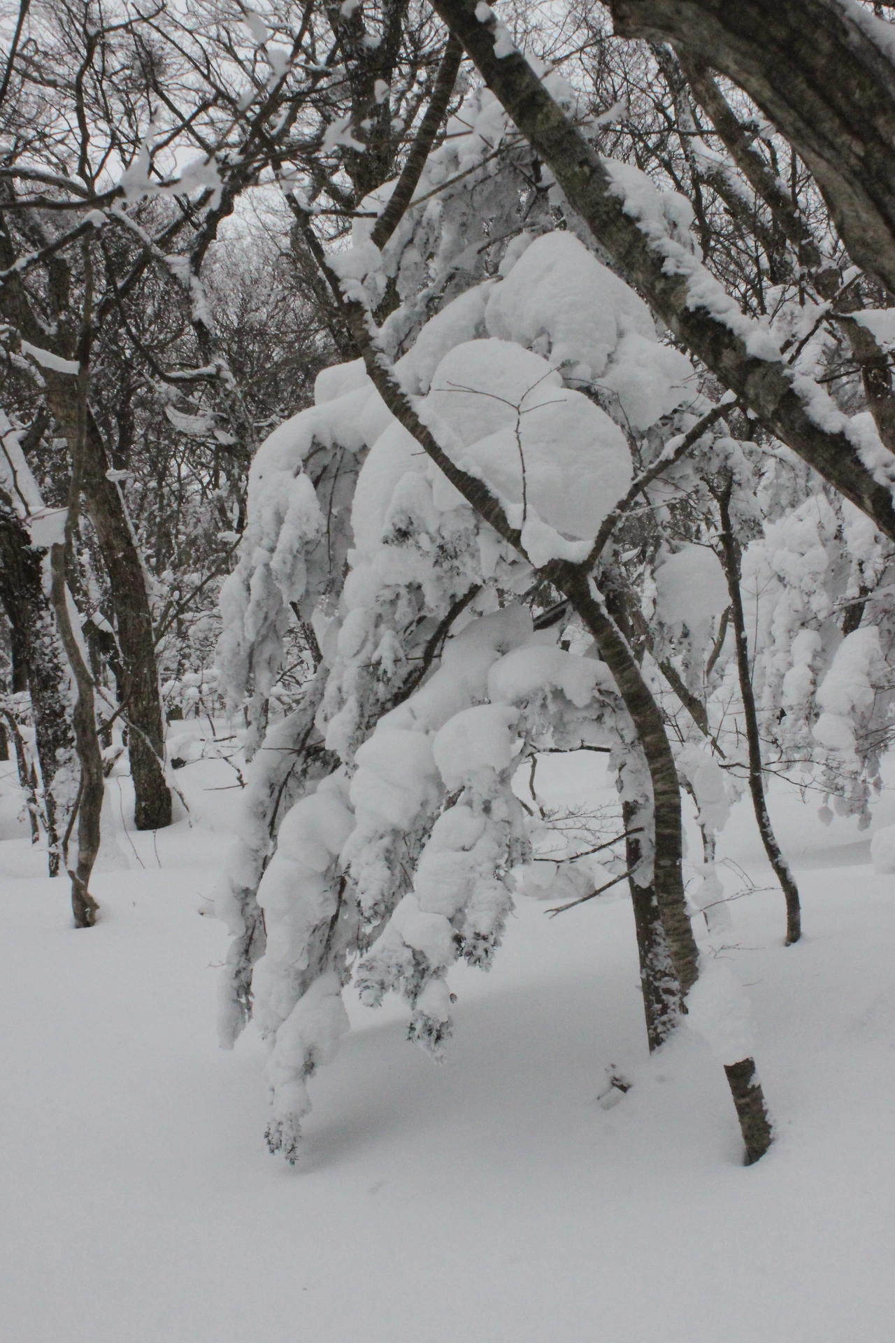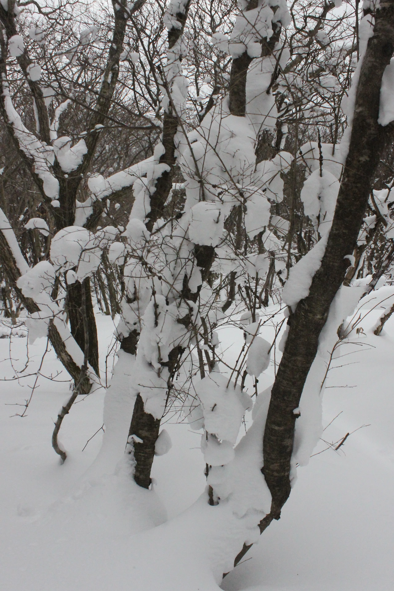 대피소를 통과해 경사가 점점 심해지는 길을 올라가다 보니 나무에 눈꽃이 마치 뼈대를 이룬 집처럼 그 하얀 속 뼈대들은 보여주어 마치 은은하고 찬란한 후광처럼 빛을 발한다.