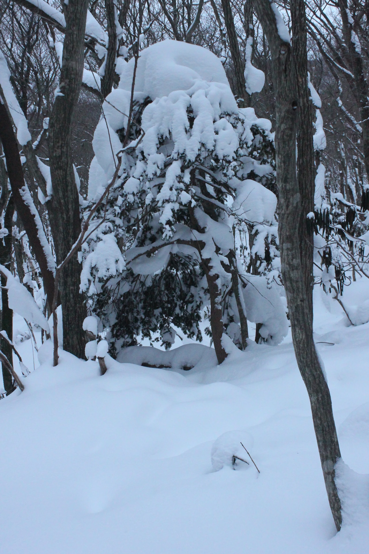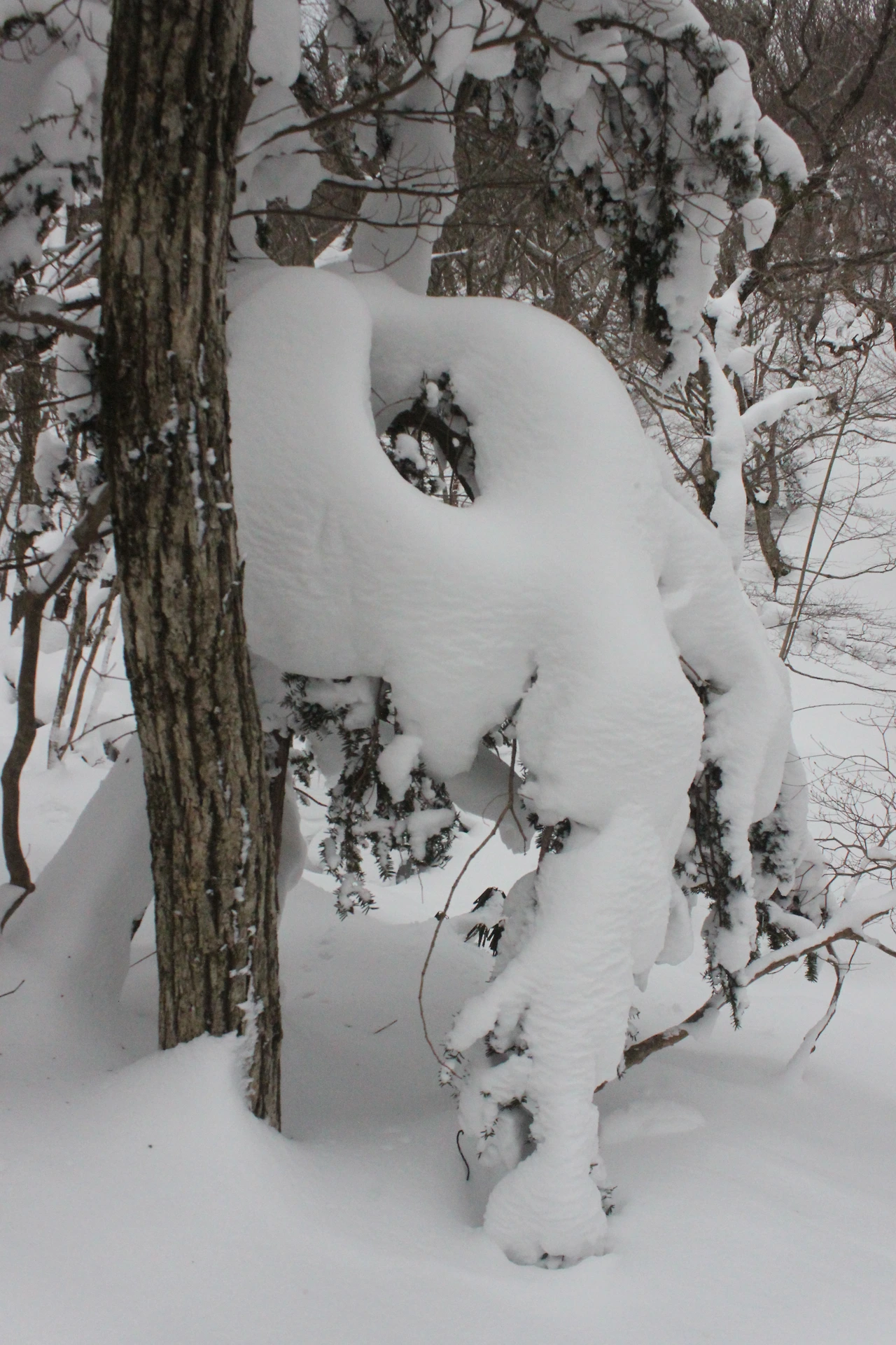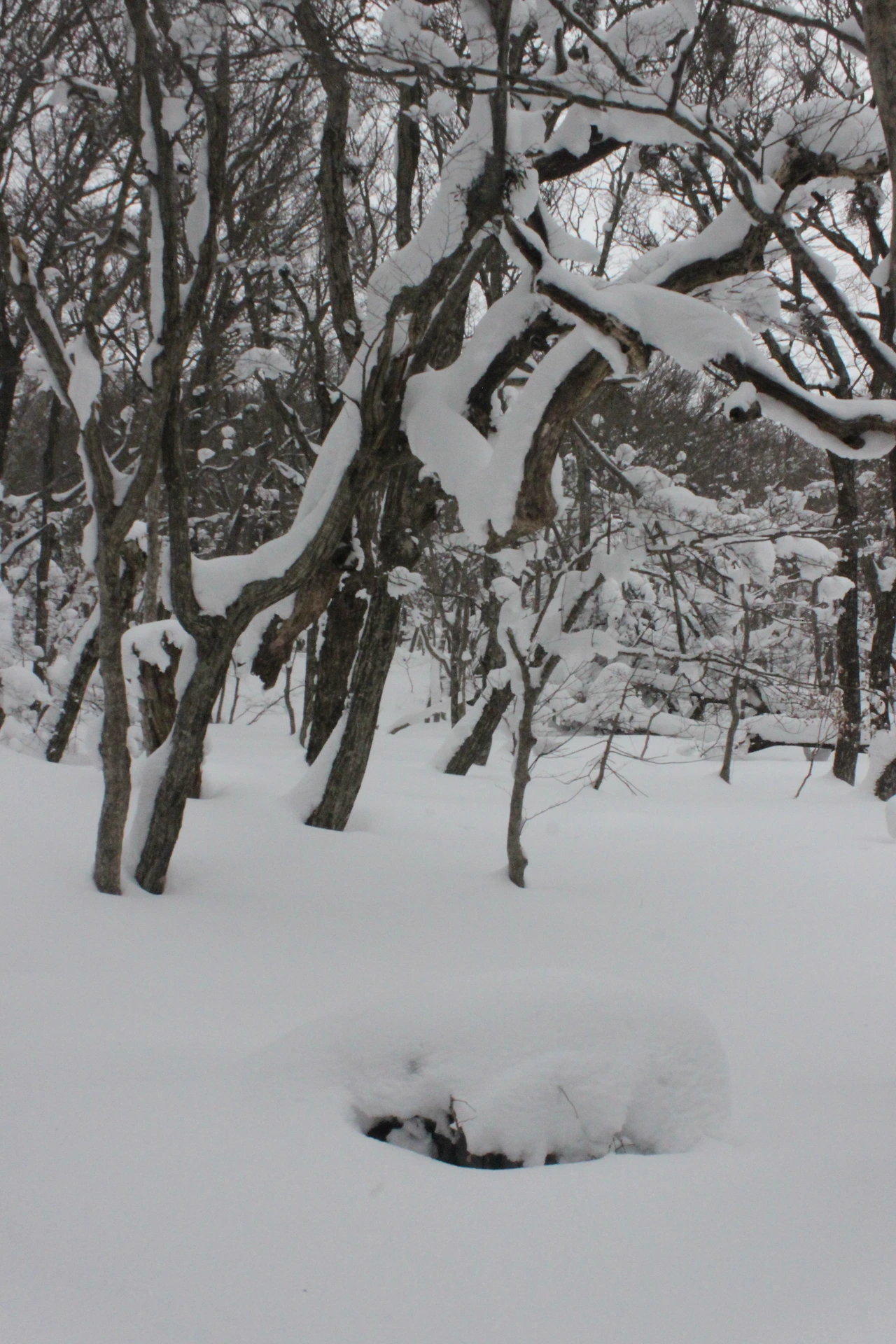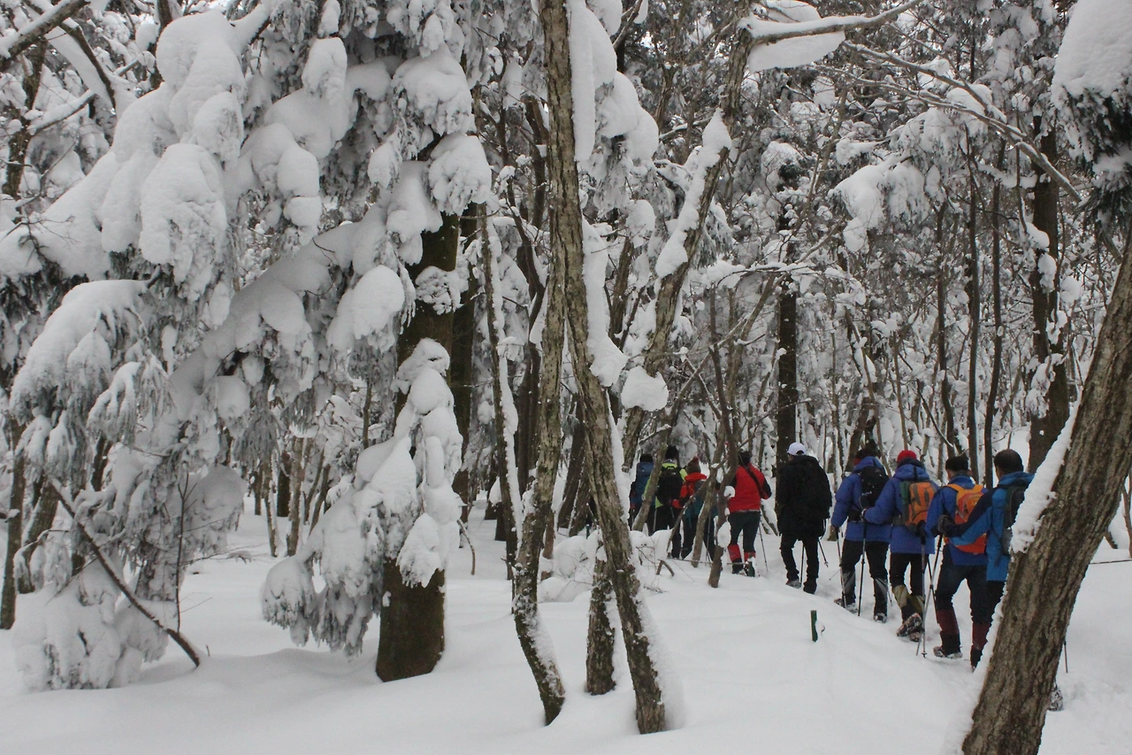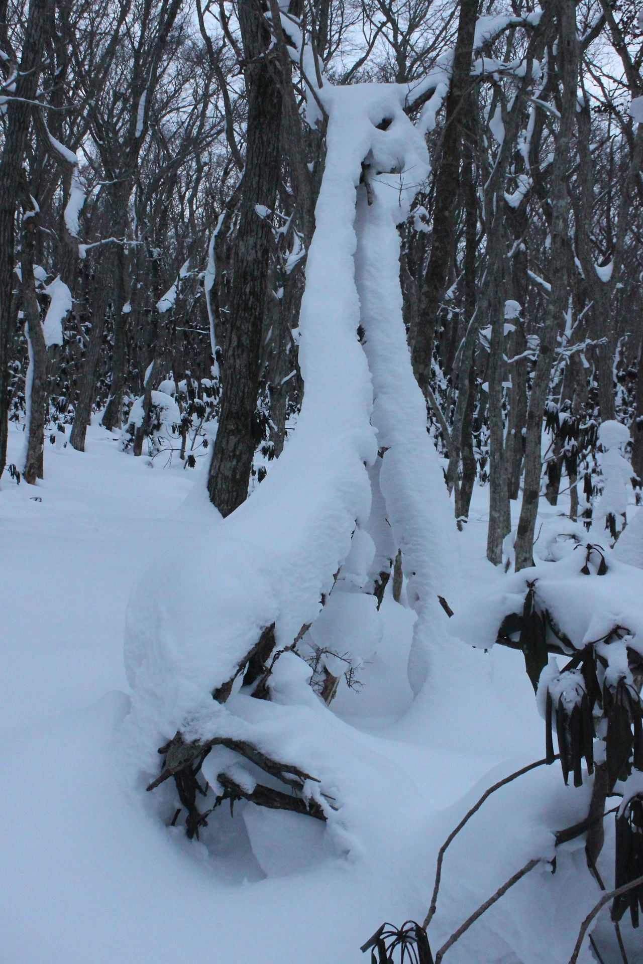 대피소를 통과해 경사가 점점 심해지는 길을 올라가다 보니 나무에 눈꽃이 마치 뼈대를 이룬 집처럼 그 하얀 속 뼈대들은 보여주어 마치 은은하고 찬란한 후광처럼 빛을 발한다.