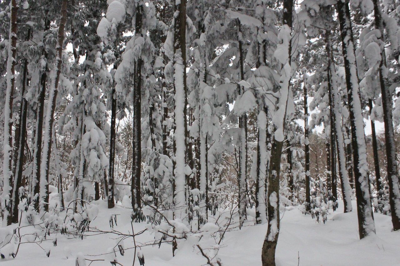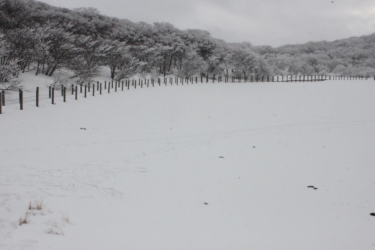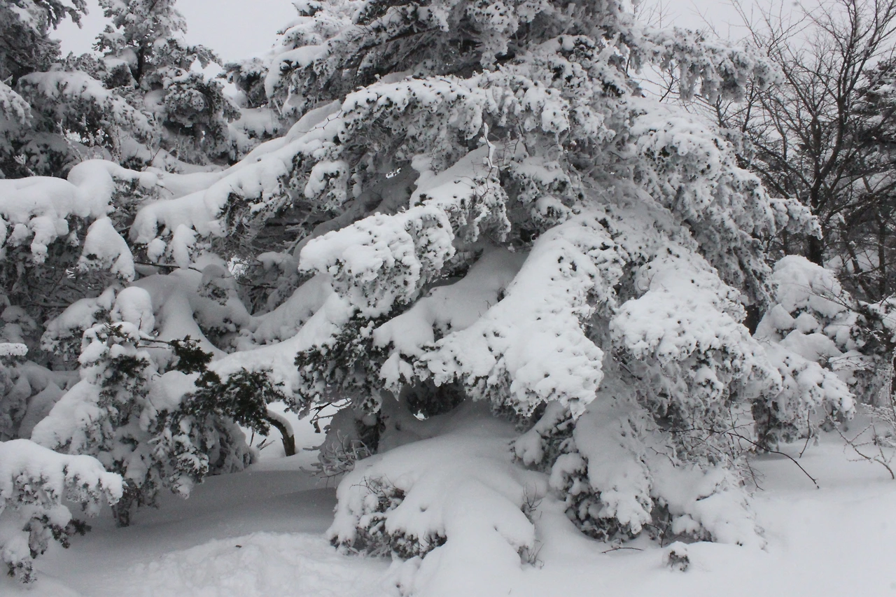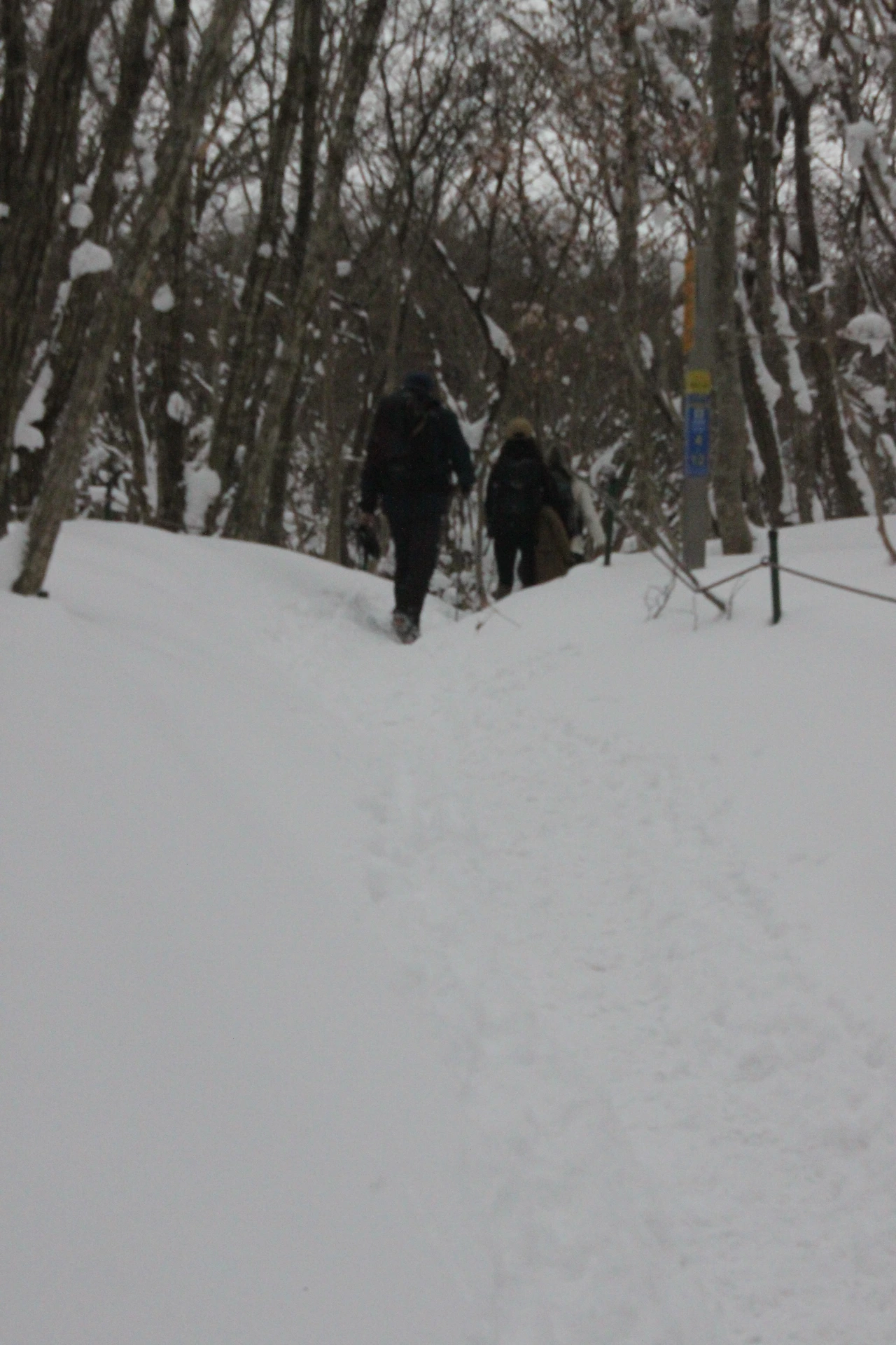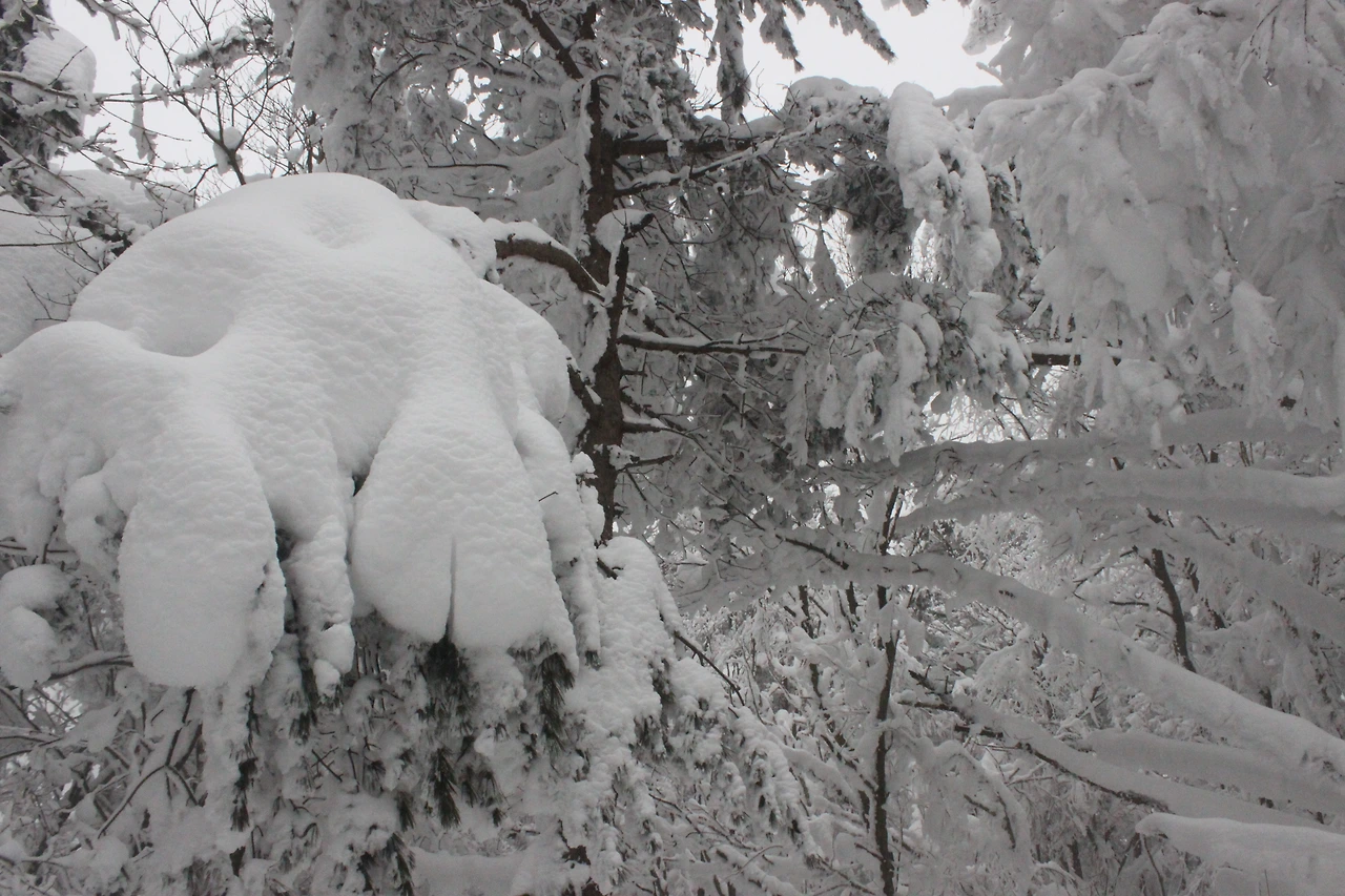 '전나무숲'이 나오고 전나무에 그냥 밀가루를 원 없이 부어놓은 듯한 모습에 캐나다 나무들이 생각나서 아무런 욕심이 없어진다. 전나무의 아름다움이 끝나갈 때쯤 조금씩 나리는 눈발과 함께 '속밭 휴게소'가 나온다.