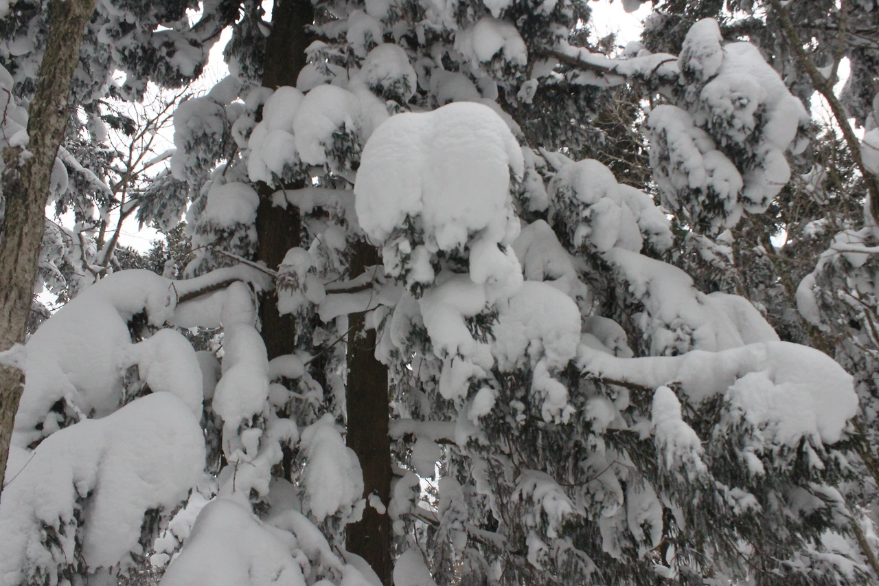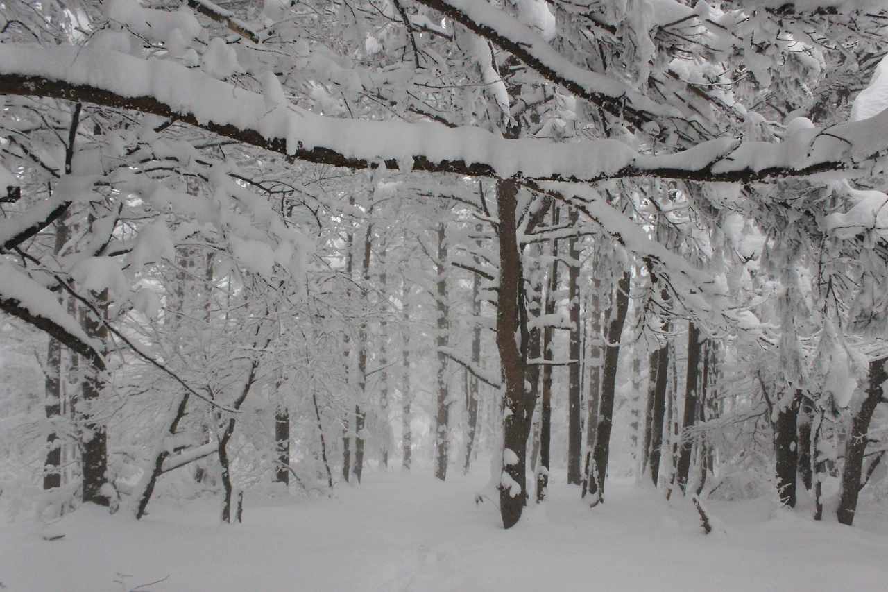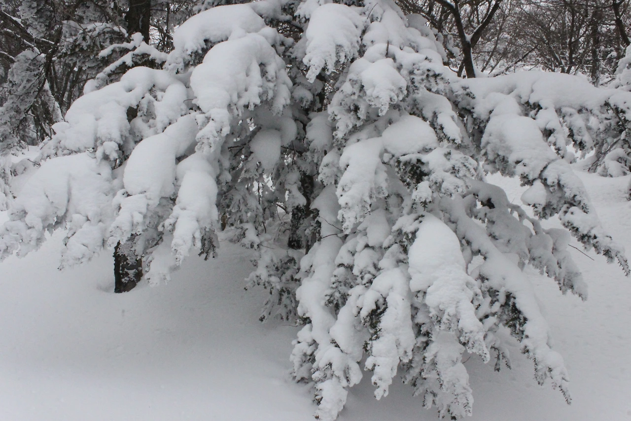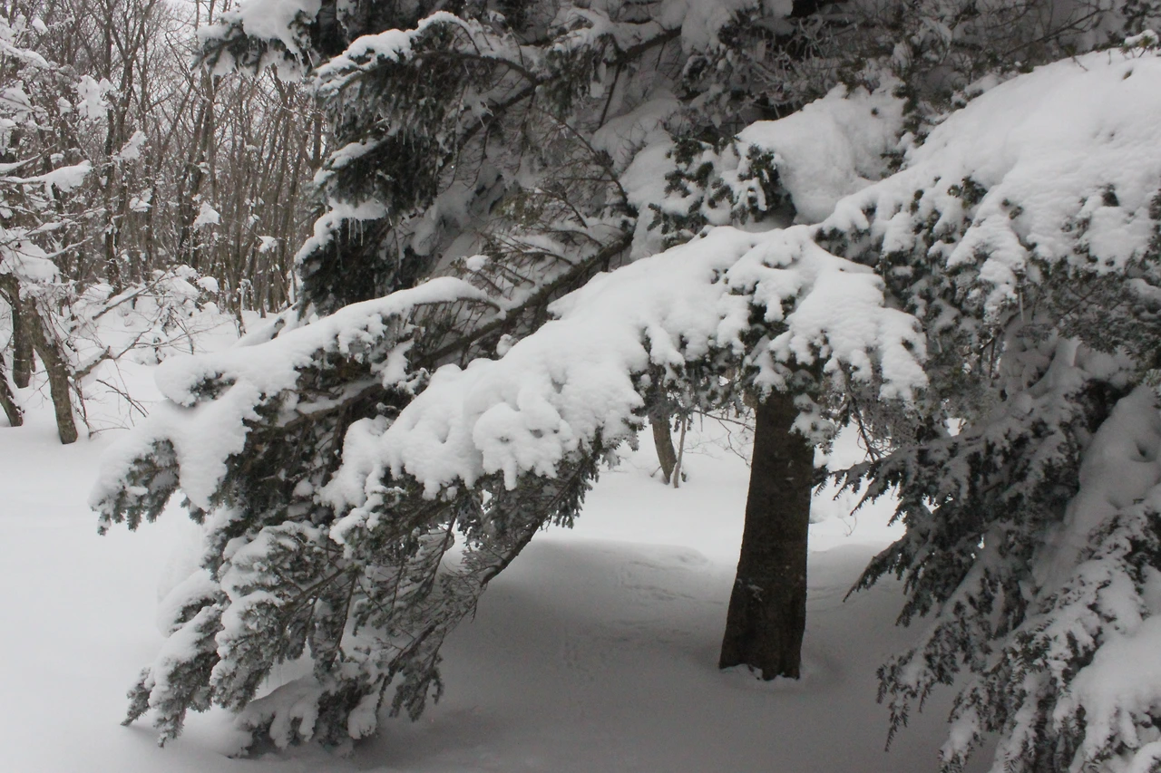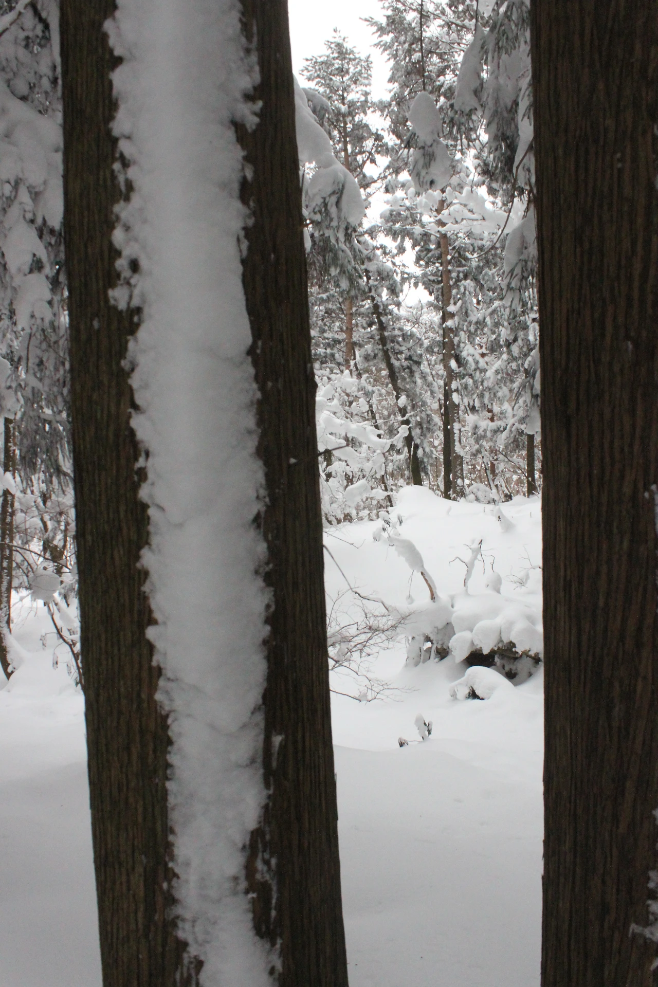 '전나무숲'이 나오고 전나무에 그냥 밀가루를 원 없이 부어놓은 듯한 모습에 캐나다 나무들이 생각나서 아무런 욕심이 없어진다. 전나무의 아름다움이 끝나갈 때쯤 조금씩 나리는 눈발과 함께 '속밭 휴게소'가 나온다.