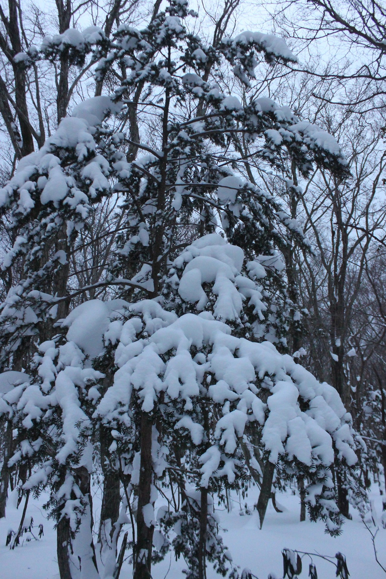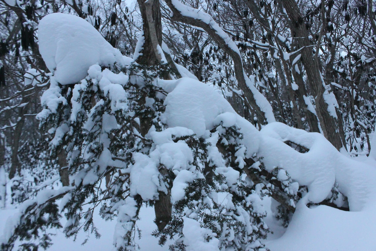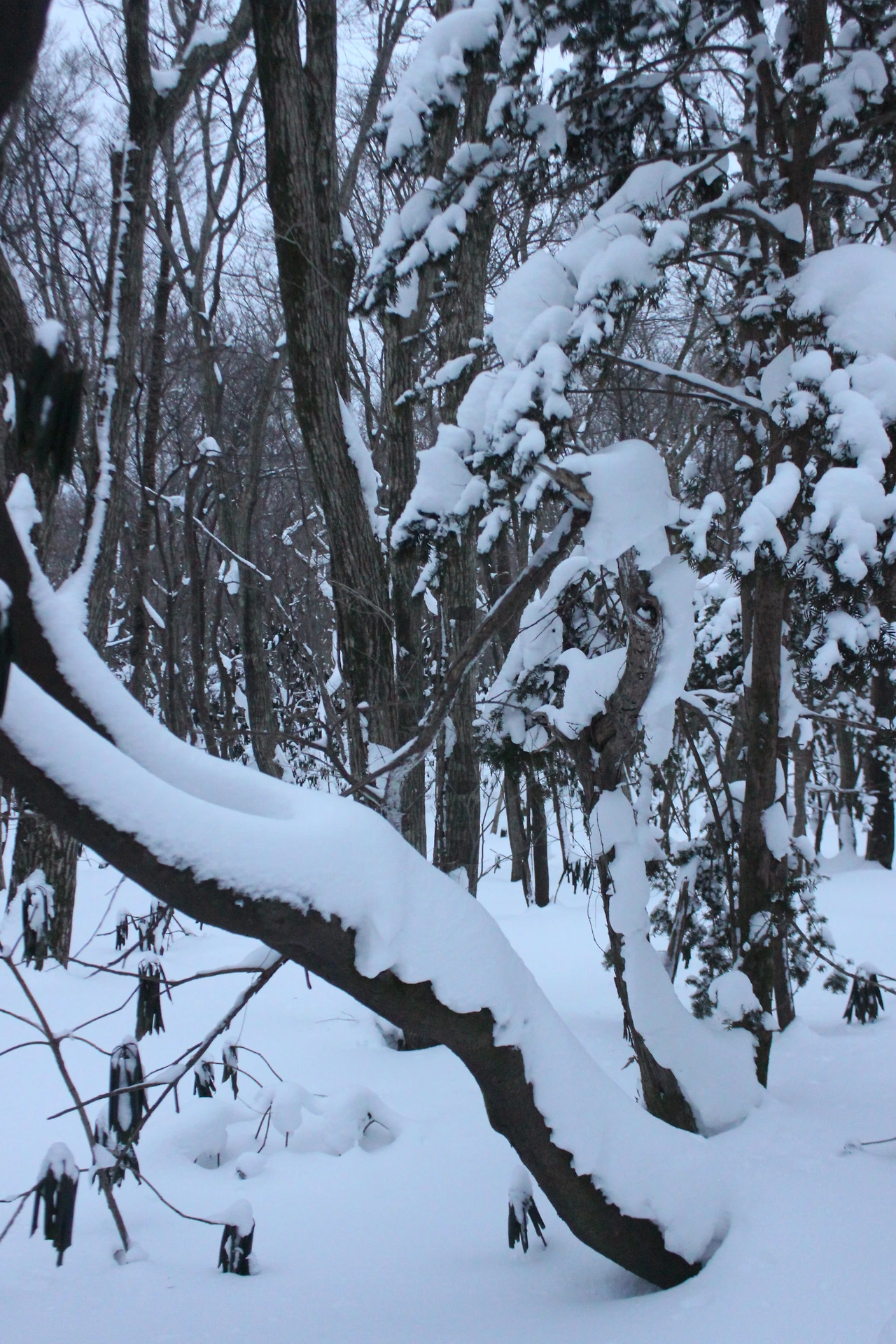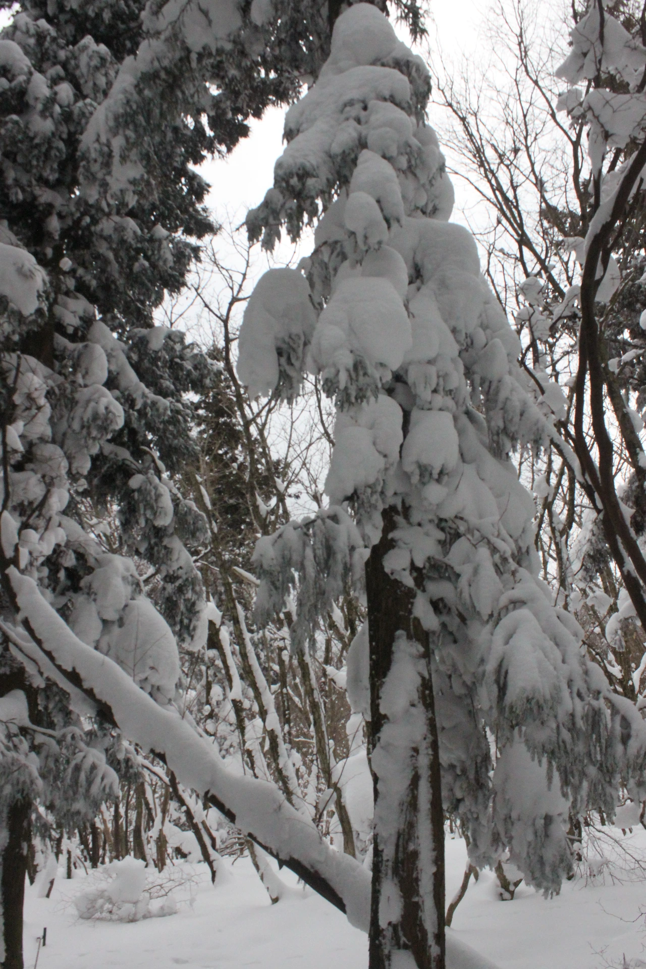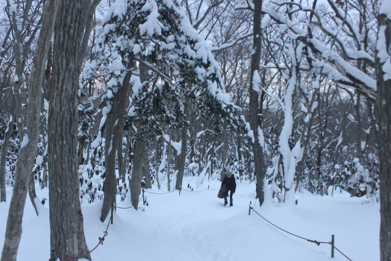 '전나무숲'이 나오고 전나무에 그냥 밀가루를 원 없이 부어놓은 듯한 모습에 캐나다 나무들이 생각나서 아무런 욕심이 없어진다. 전나무의 아름다움이 끝나갈 때쯤 조금씩 나리는 눈발과 함께 '속밭 휴게소'가 나온다.