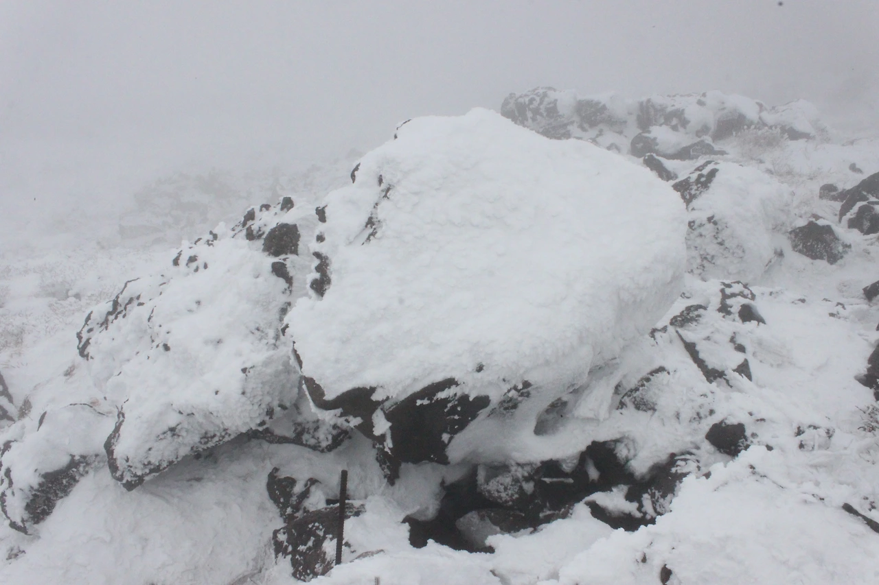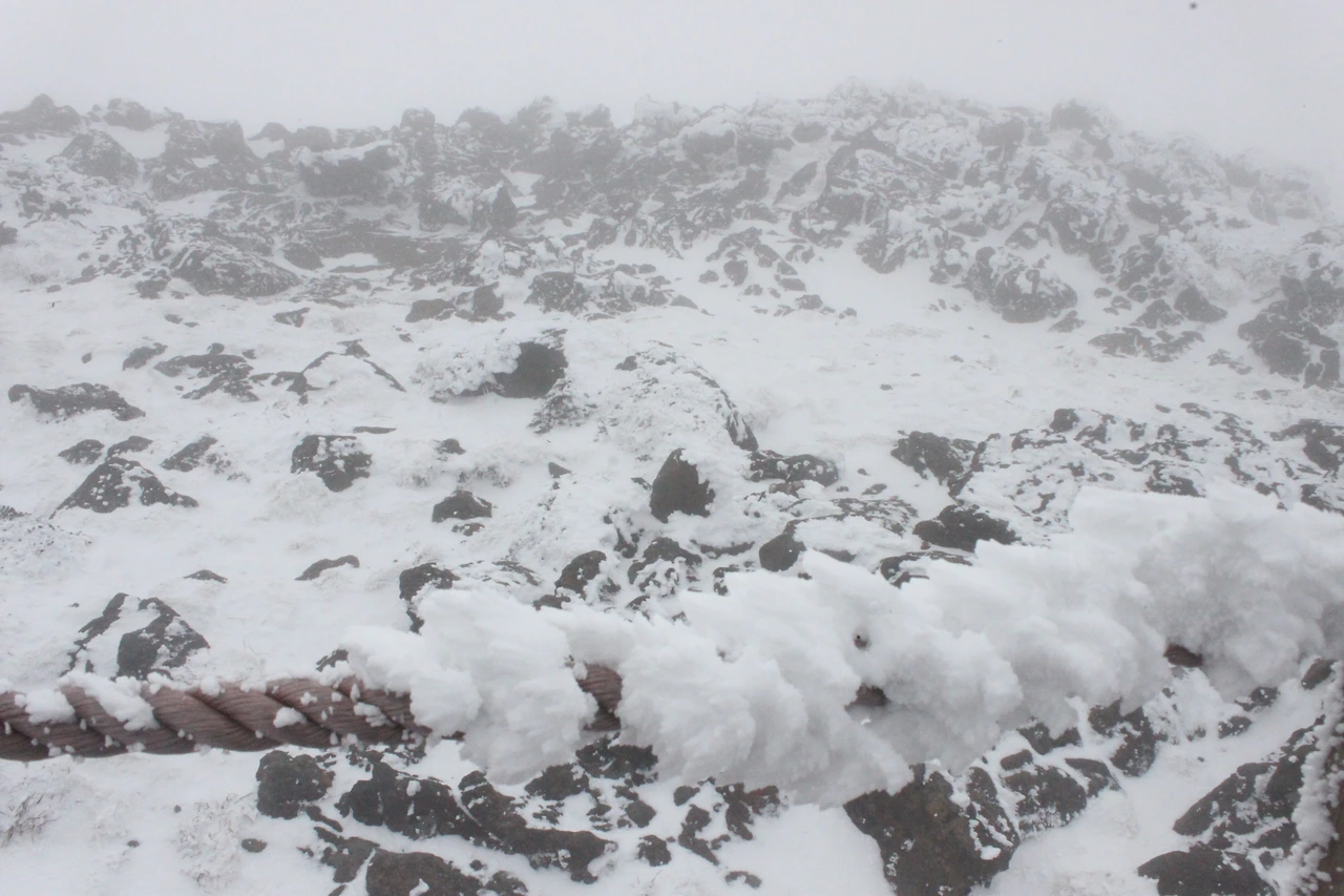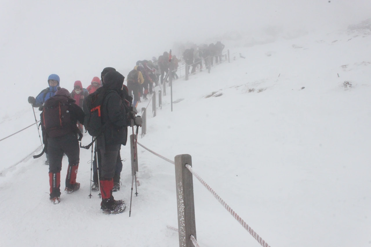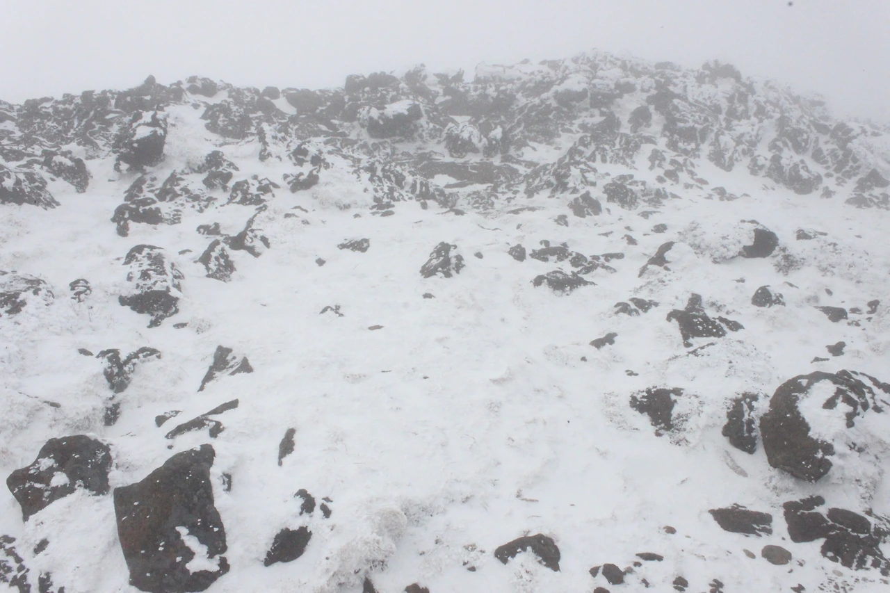 한라산 정상에 점점 다가갈수록 위에서 내려온 사람들의 머리가 백발이 되어 내려온다.