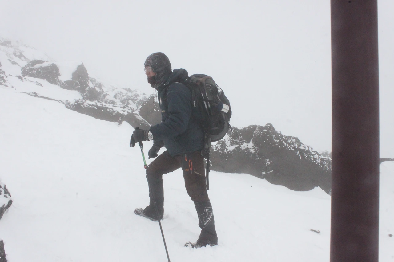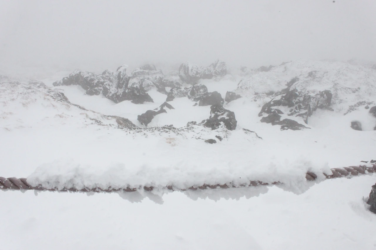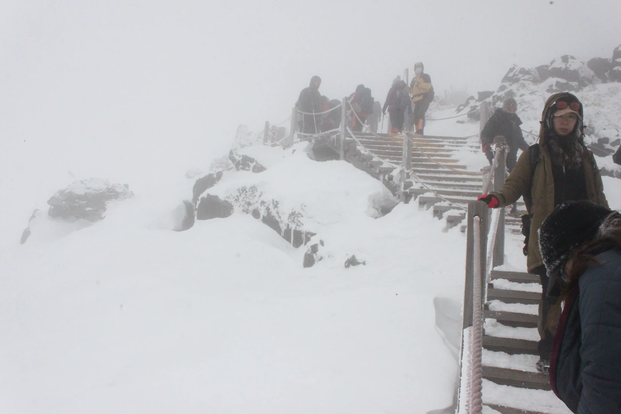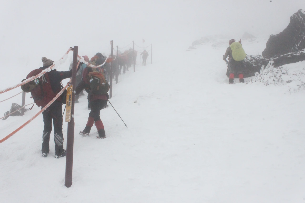 한라산 정상에 점점 다가갈수록 위에서 내려온 사람들의 머리가 백발이 되어 내려온다.