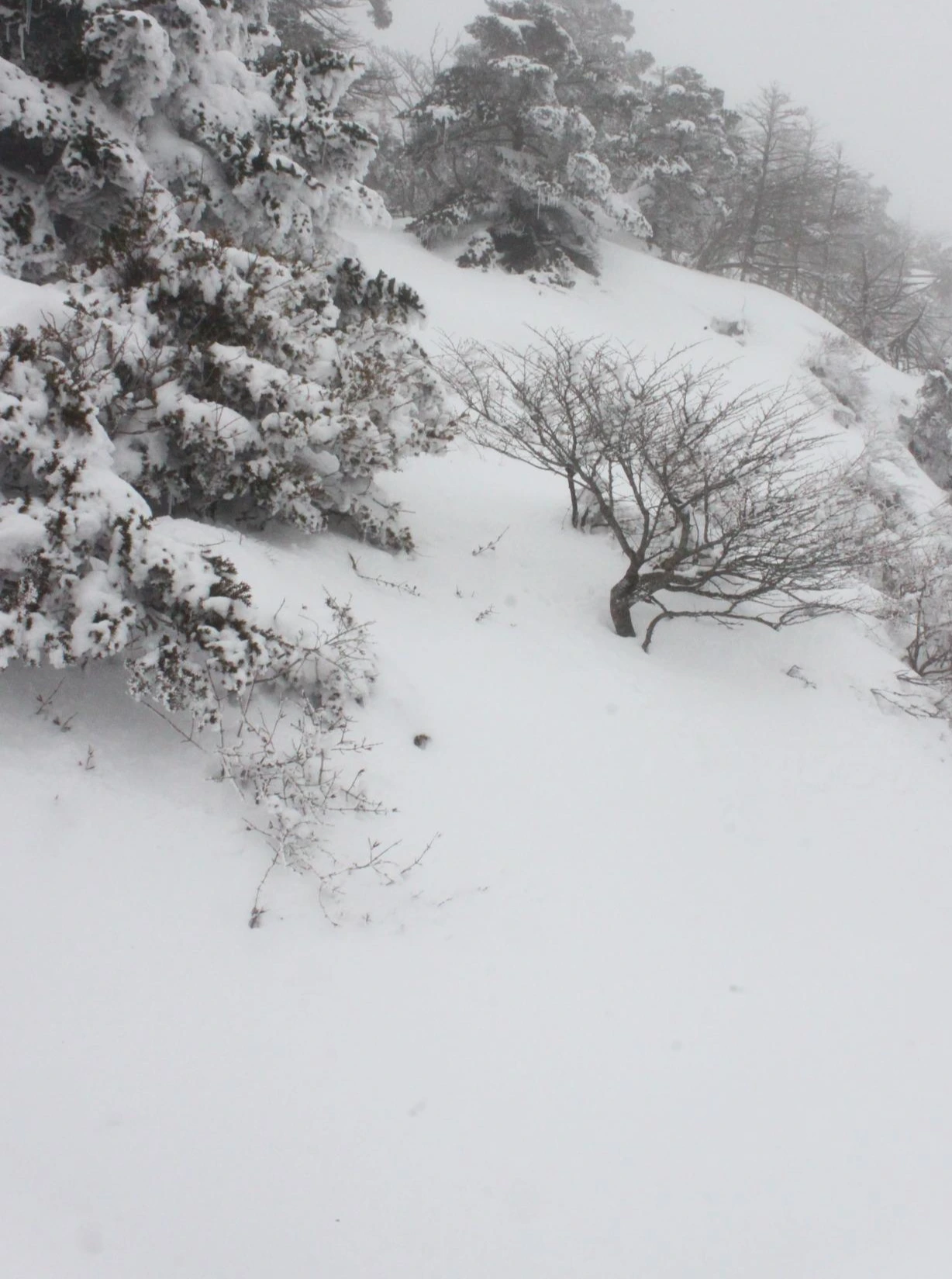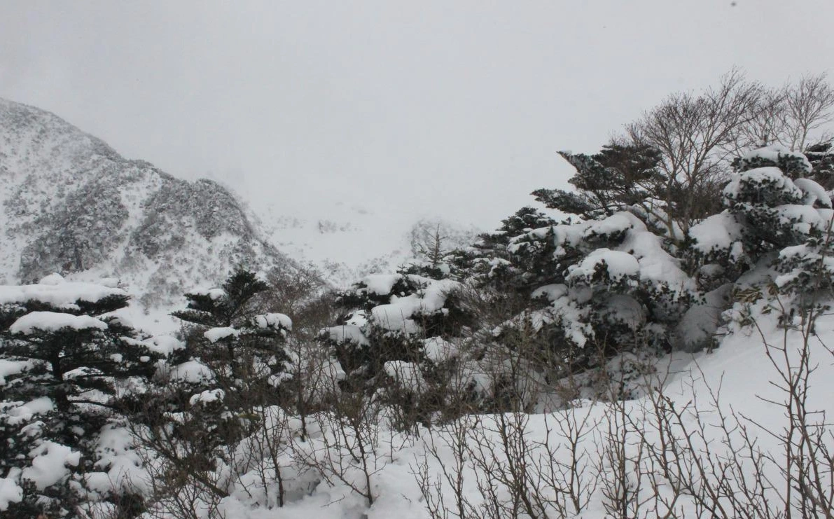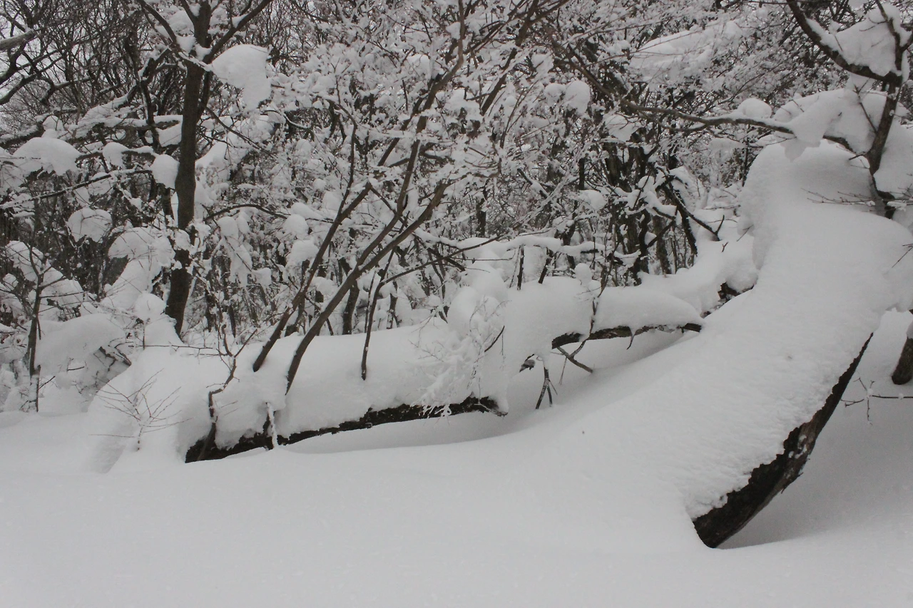 그렇게 '로키 산' 못지않은 북벽과 능선을 아슬아슬하게 찍으며 내려오는데 정말 여기는 눈폭탄을 맞은 것처럼 눈만 보이고 나무와 바위가 보이지 않는다.