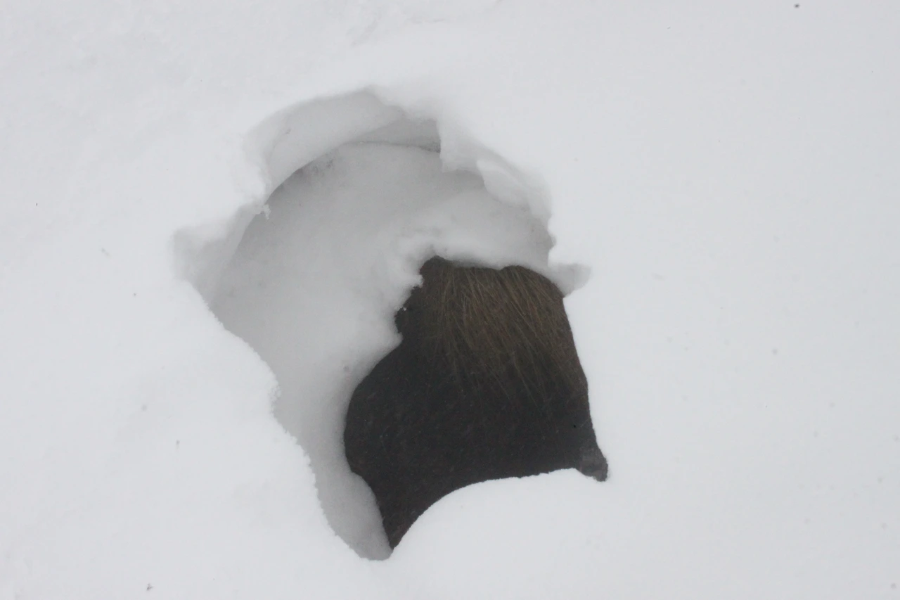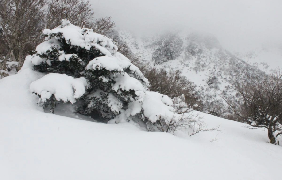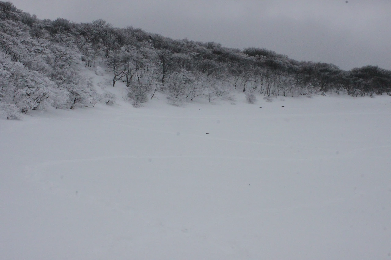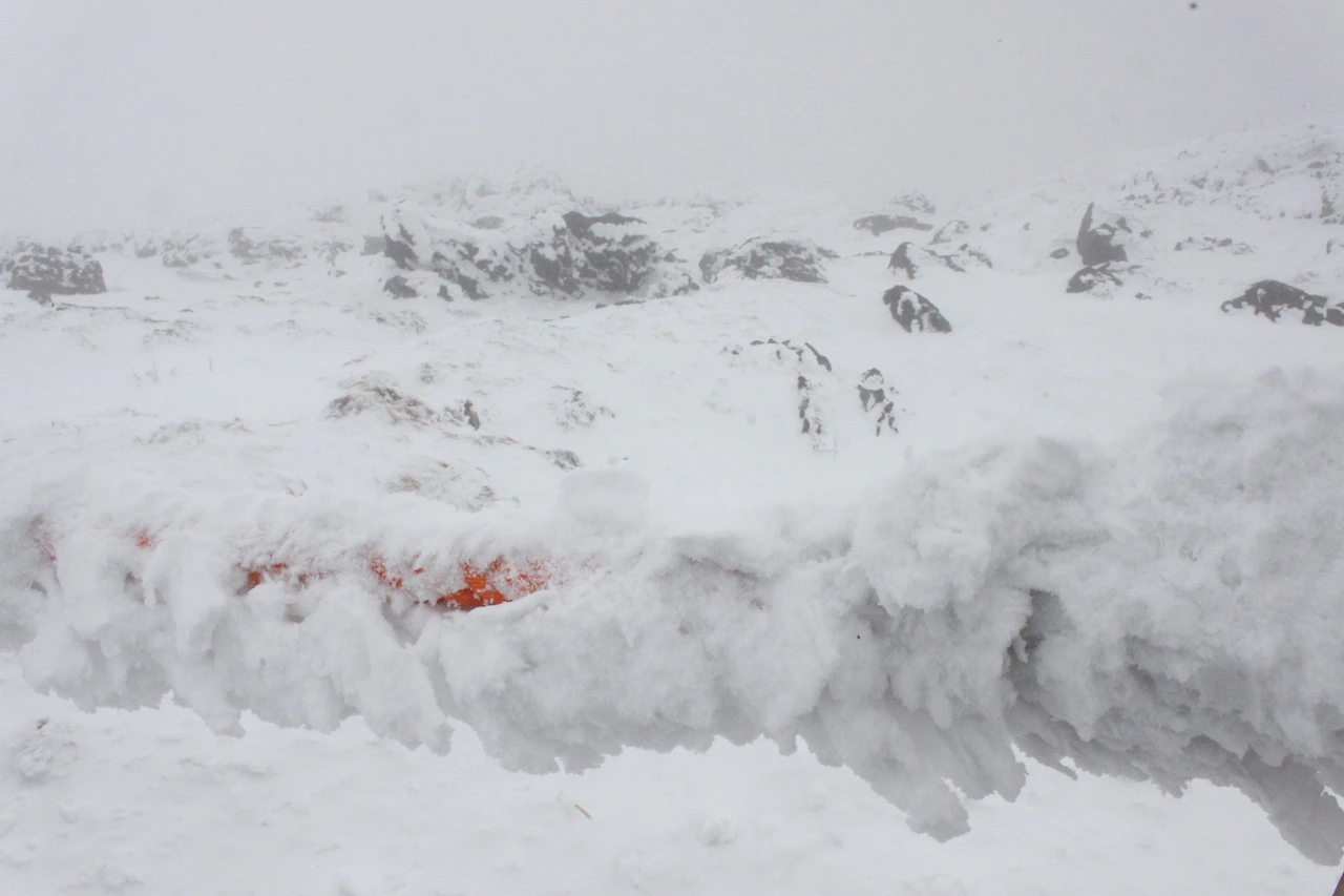 그렇게 '로키 산' 못지않은 북벽과 능선을 아슬아슬하게 찍으며 내려오는데 정말 여기는 눈폭탄을 맞은 것처럼 눈만 보이고 나무와 바위가 보이지 않는다.