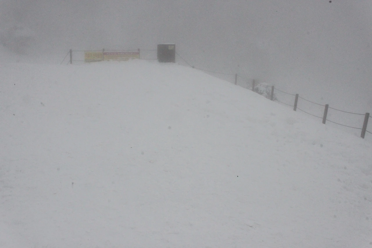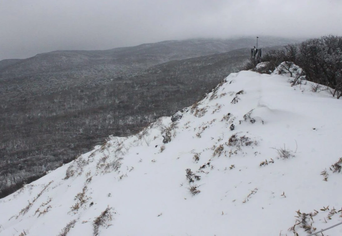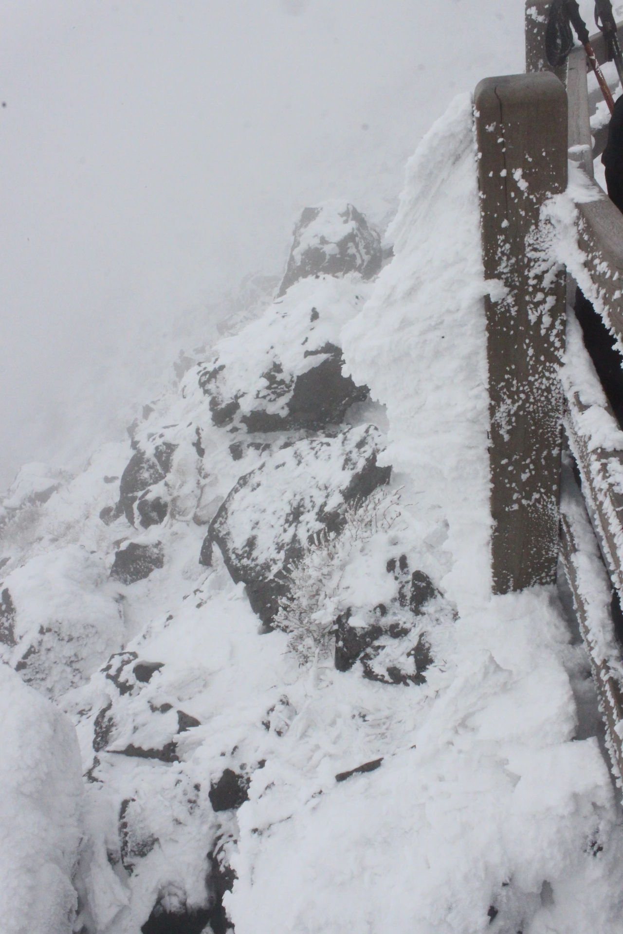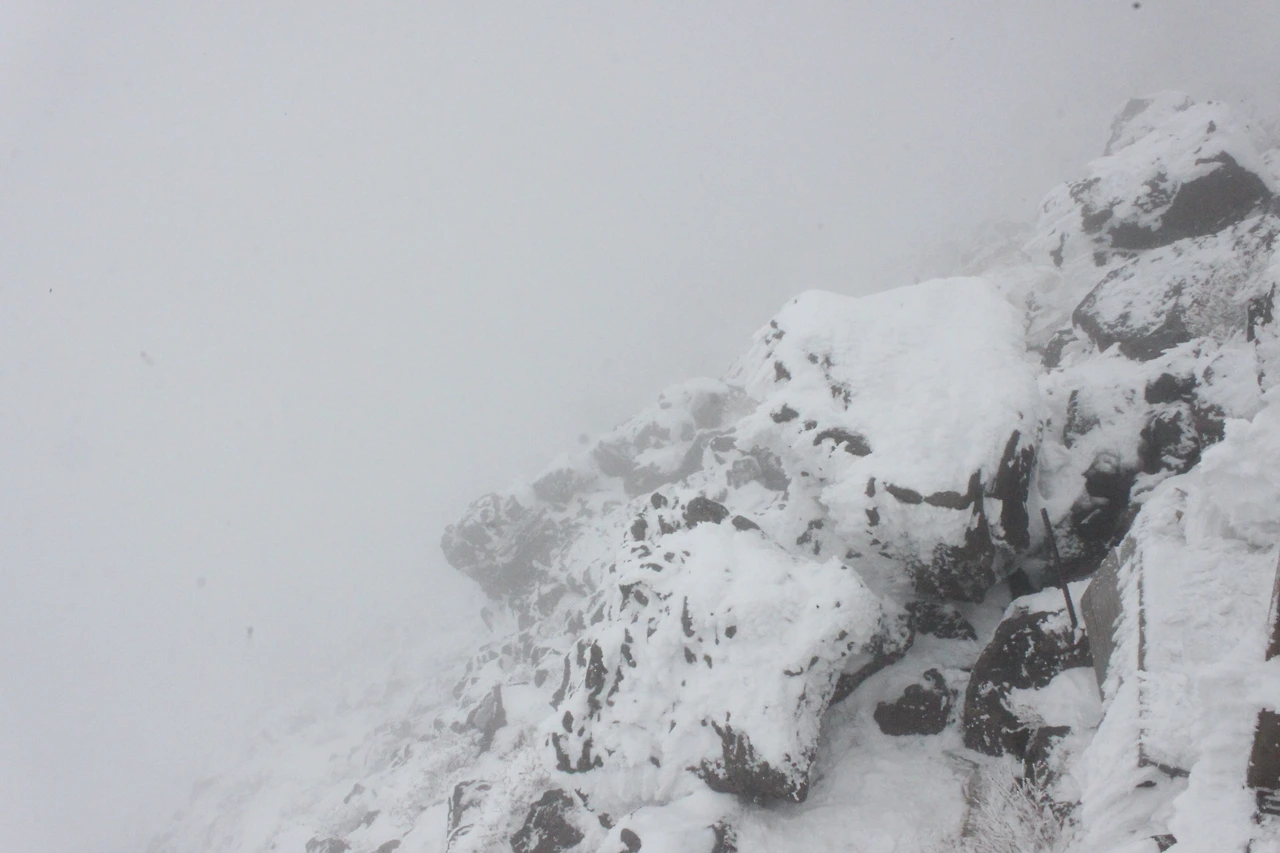 '진달래 대피소'까지 한달음에 달려 올라가 사발면과 김밥으로 늦은 점심을 해결하고, 올라가려니 멈췄던 눈발이 다시 짙어지고 안개까지 밀려온다.