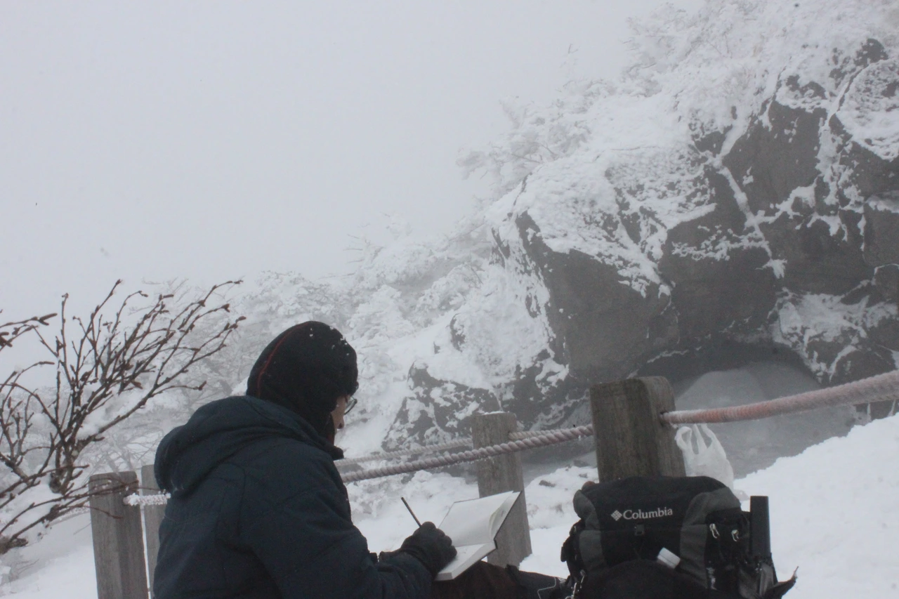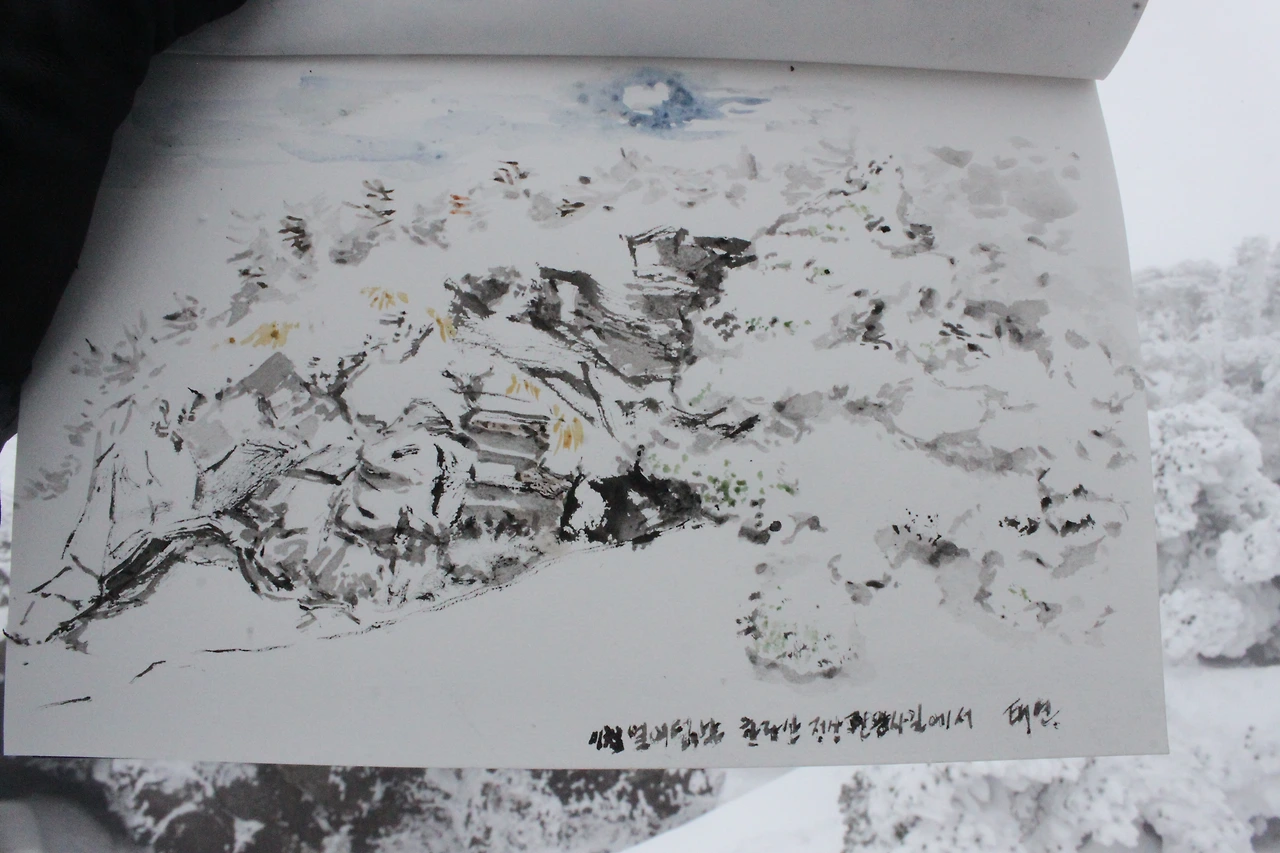 사람들이 거의 다 내려간듯한데 한분이 눈앞에 왔다 갔다 하셔서 국립공원 직원분이신가 생각하며 그림을 정리한다.