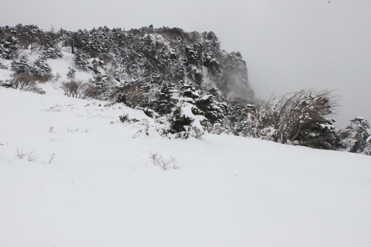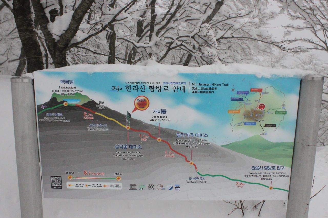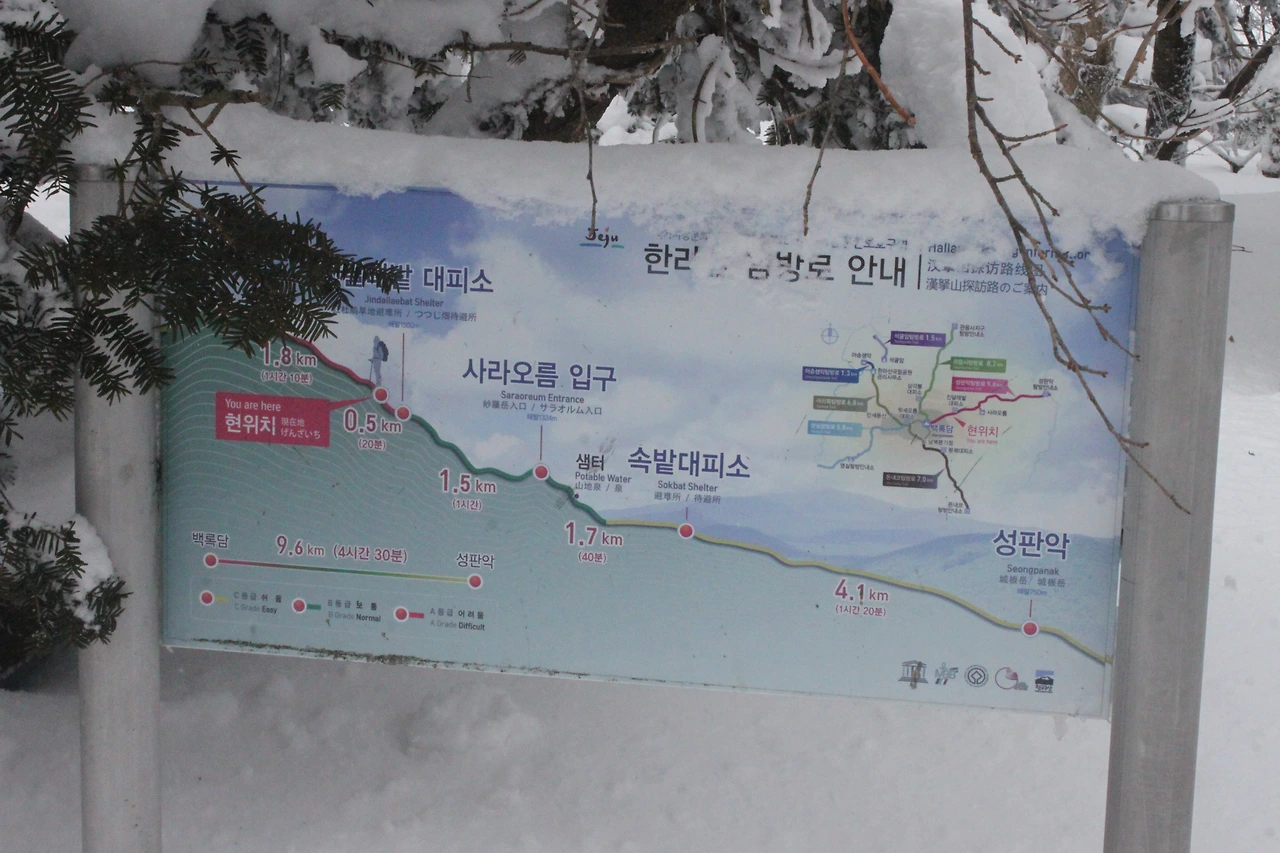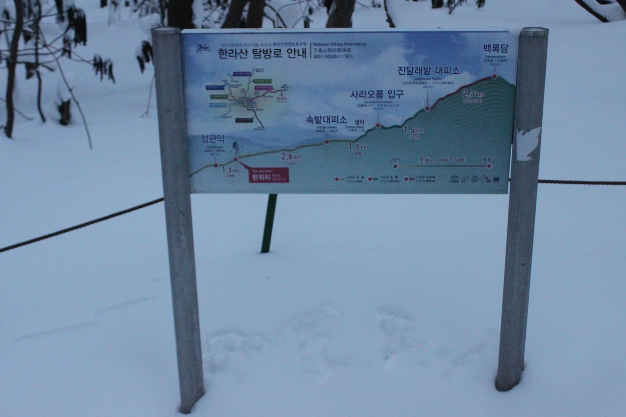 눈의 양을 보니 관음사 쪽이 눈이 두배는 더 온 듯하다.
