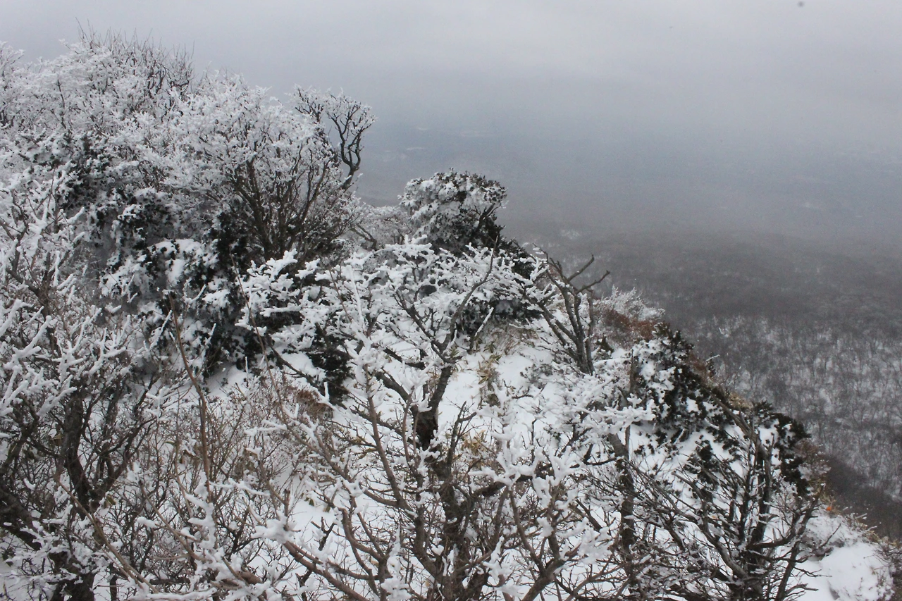 한라산 상고대는 마치 장인이 염장하듯 소금으로 얇게 뿌린 눈이 달라붙어 눈으로 먹기 좋은 느낌이다.