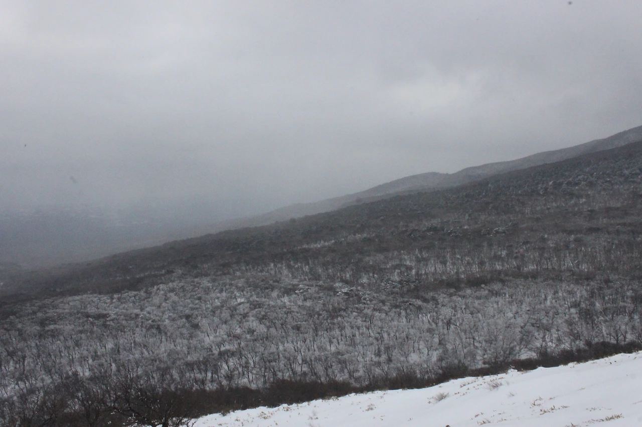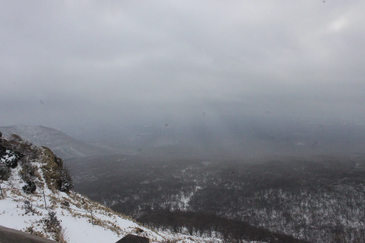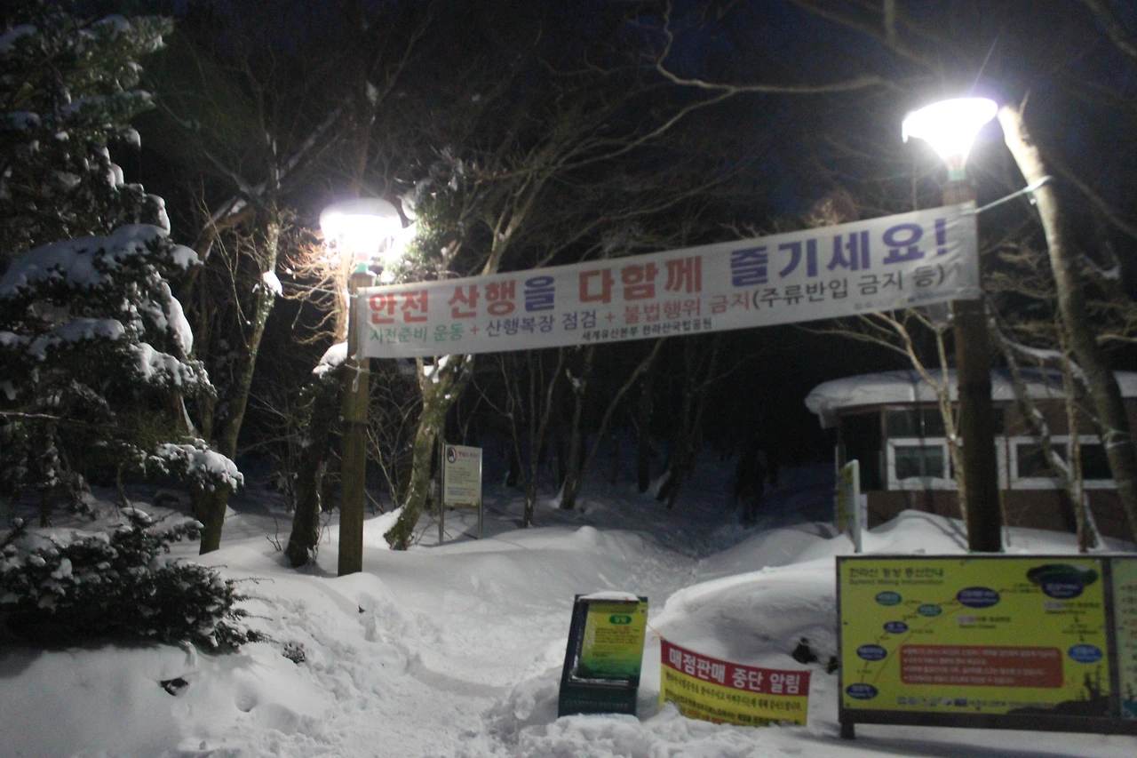 버스에서 보이는 한라산 가는 도로는 어둠에서 양쪽으로 하얀 눈 덮인 모습만 보여줘 마치 하얀 사슴뿔 같은 나무들이 차를 위협을 하는 것 같다.