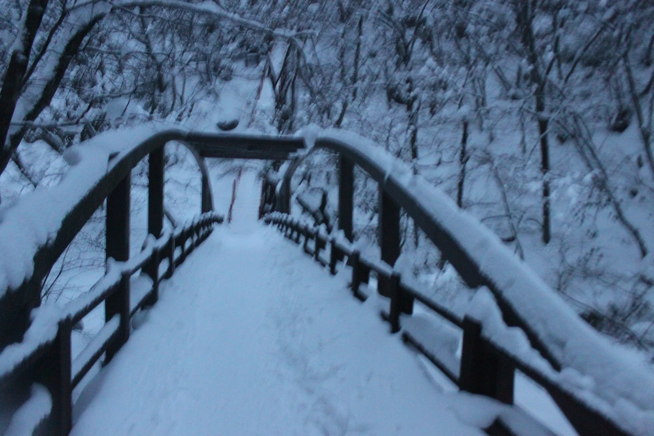 아직 어둠이 가시지 않은 하얀 눈 세상은 흰 종이를 물에 담근듯한 색깔이다.