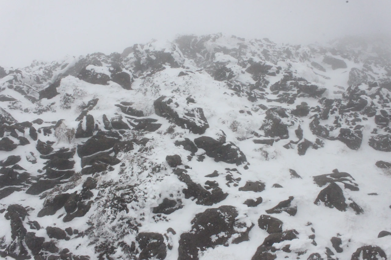 경사가 굉장히 가파르고 도저히 걸을 수 없어 아이젠을 차고도 미끄러워져 내려간다.