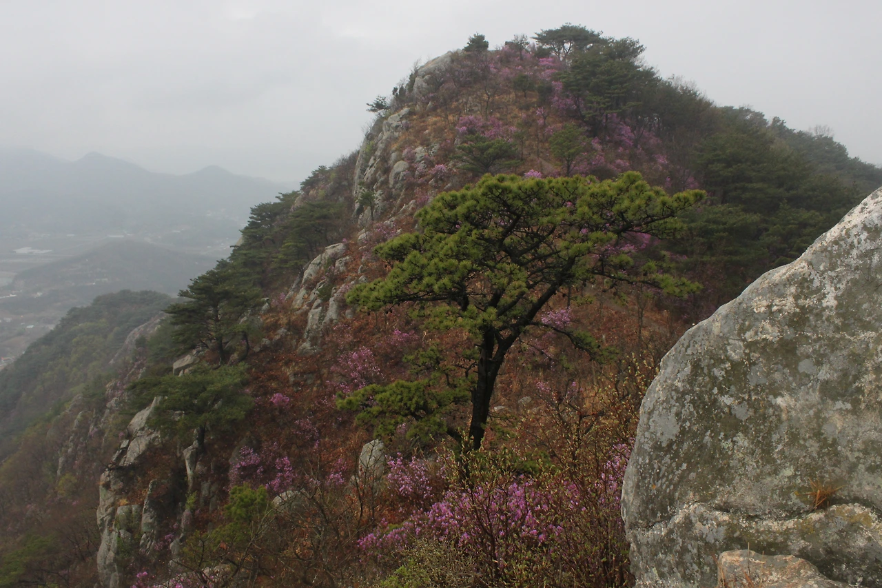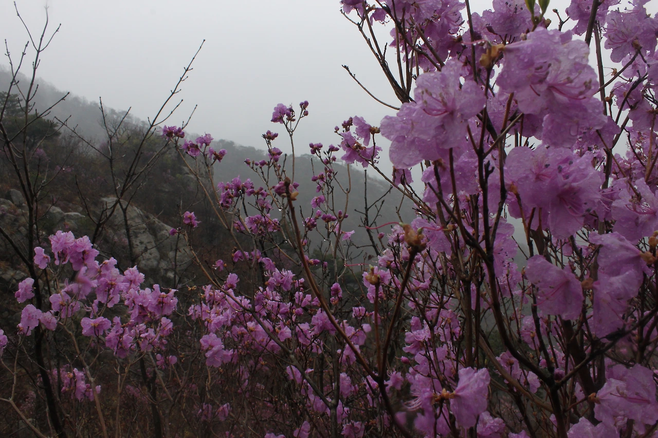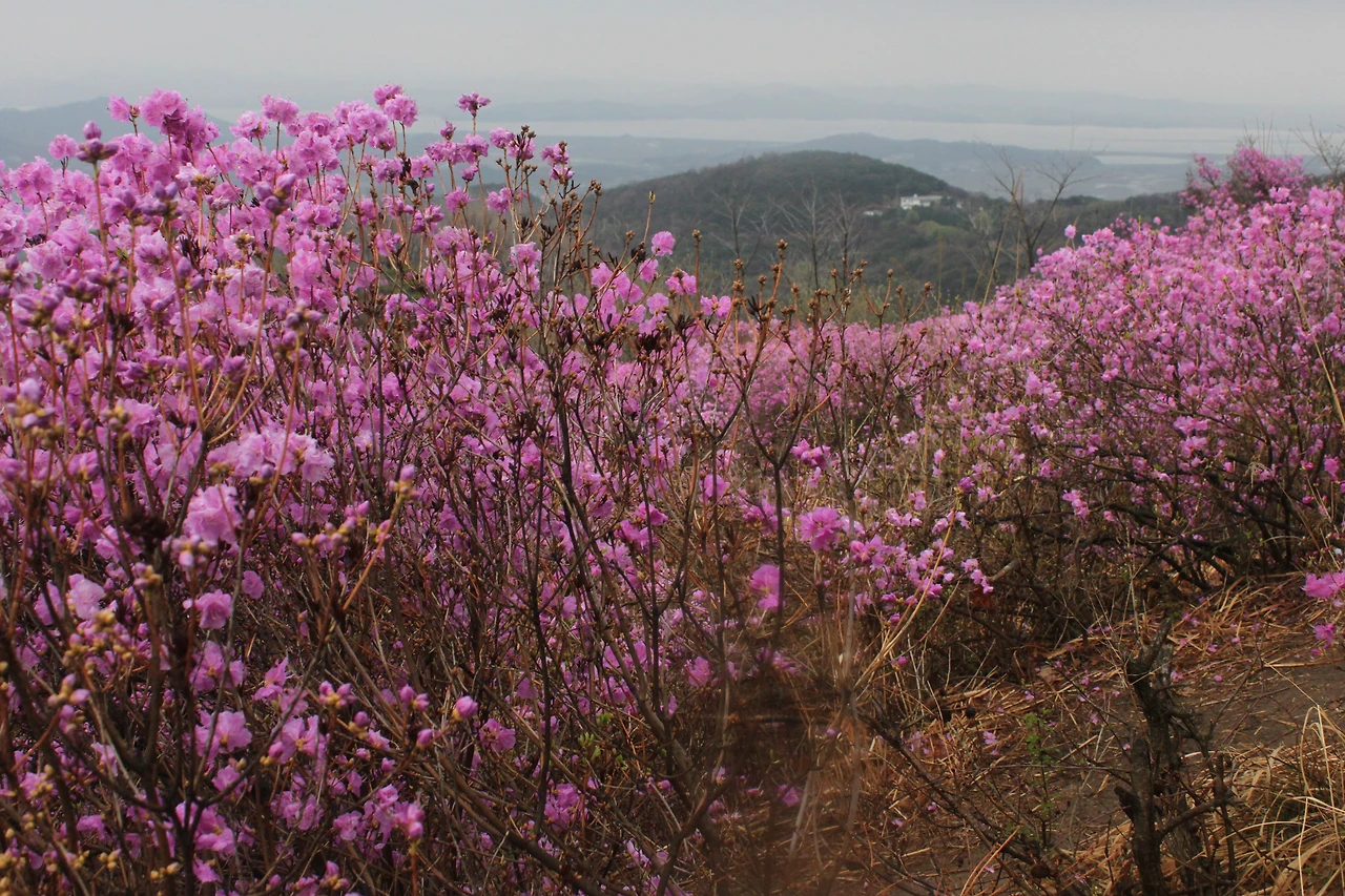 고인돌 군락지를 두 번 지나 드디어 고려산의 정상에 오르기 전 산은 바닷가로 둘리어진 섬의 산이란 걸 다시 한번 보여준 다음 연분홍 진분홍 색으로 산을 물들여 얼굴을 빨개지게 한다.