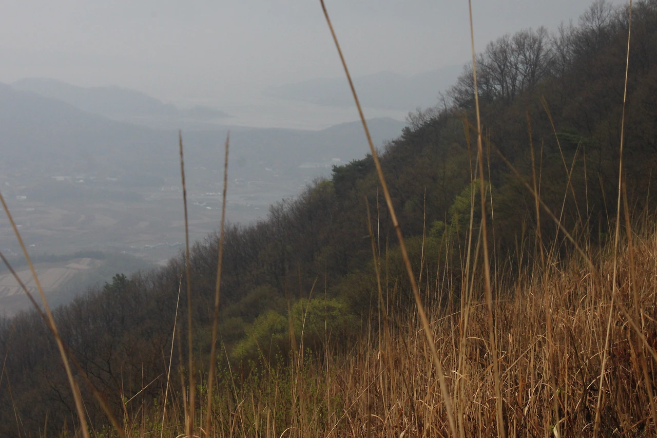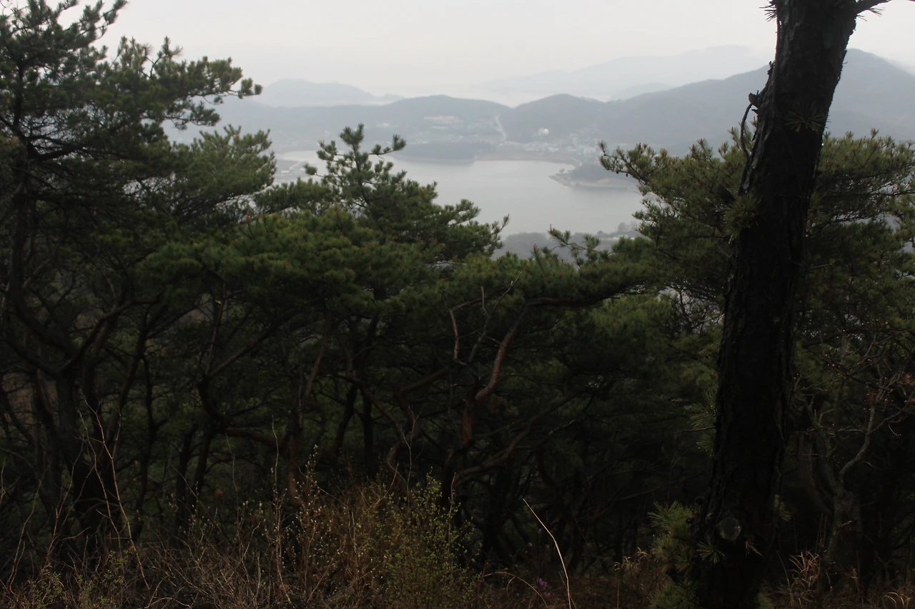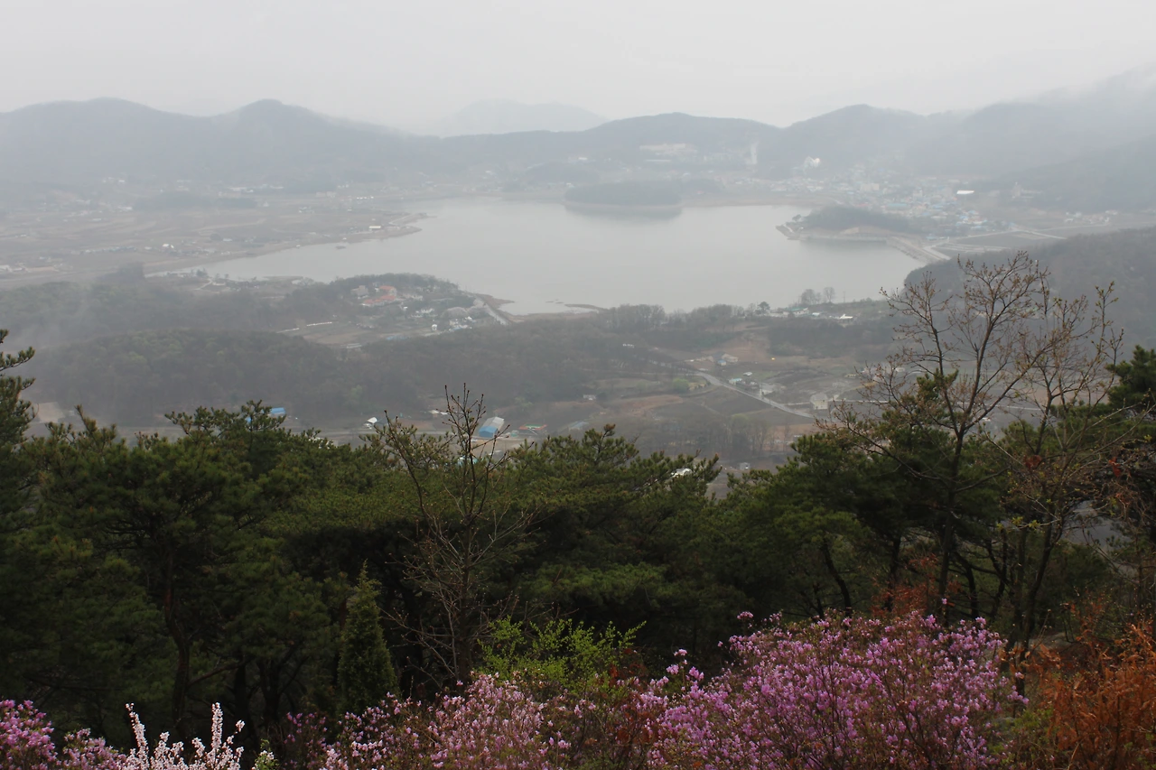고려산은 그리 크지 않은 산이나 산행 중 바다를 볼 수 있는 진달래 군락지가 아름다운 산이다. 산의 중턱에 오르면서 비사이로 섬의 고려 저수지가 보이고 그 너머로 서해 바다가 보인다. 비는 생각했던 것보다 거칠게 내려 어쩔 수 없이 빗물과 함께 저수지와 바다가 보이는 풍경을 빗물과 함께 그린다.