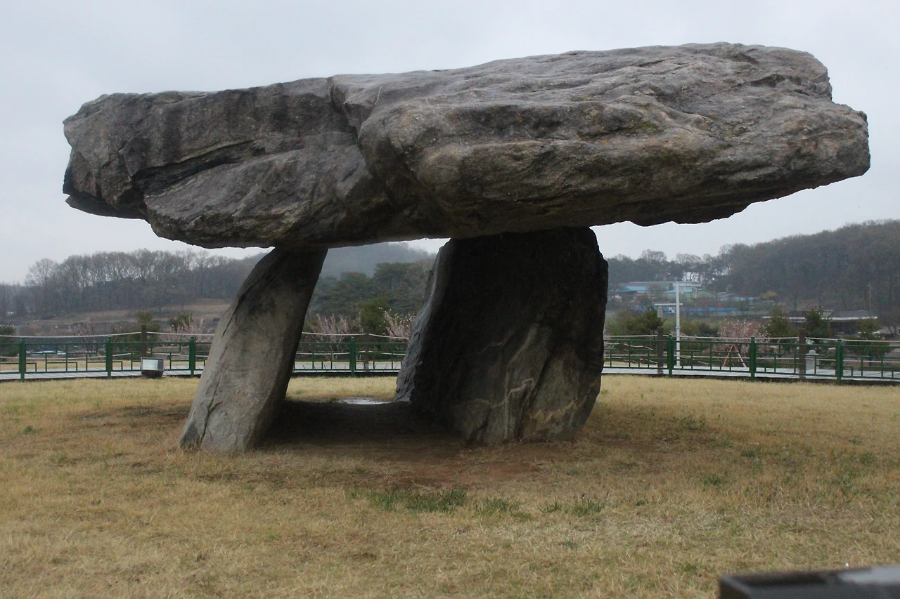 고인돌광장까지 내려가니 고인돌광장에는 비 덕분에 사람들이 없고 가운데 자태를 뽐내는 교과서에서 보던 고인돌이 중앙에 자리 잡고 있다.