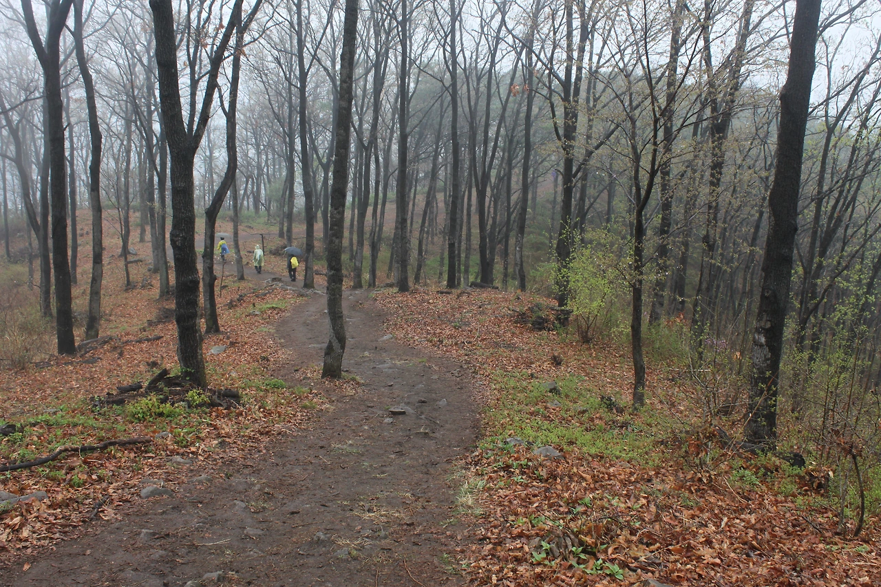 우중 산행을 쉬엄쉬엄 마쳤다. 하지만 오늘 함께해준 우산이 꺾어져 생명을 다했으므로 산행이 쉽지 않았음을 느끼게 된다.