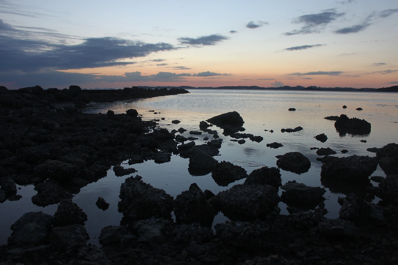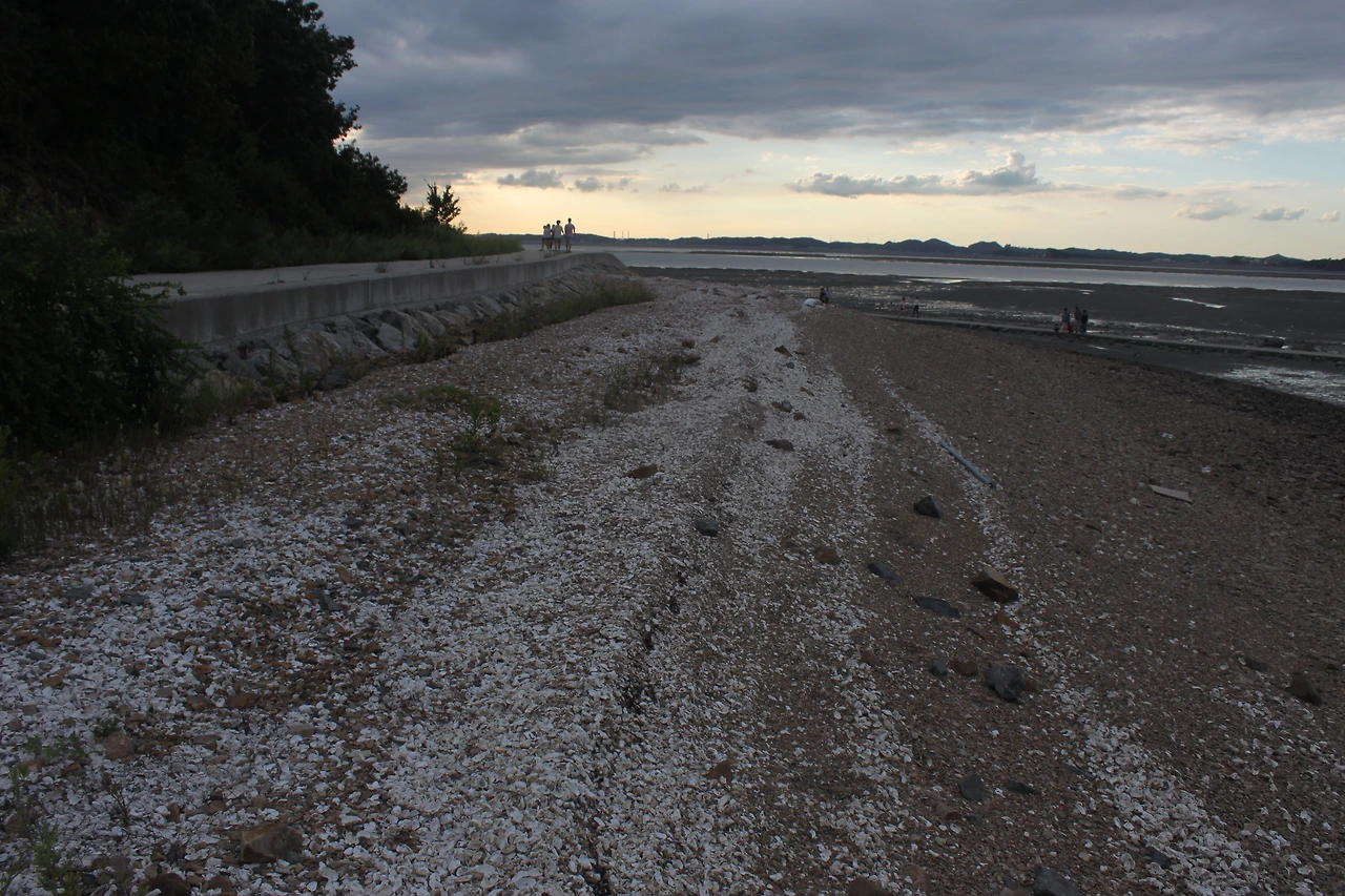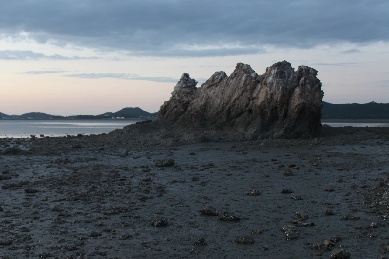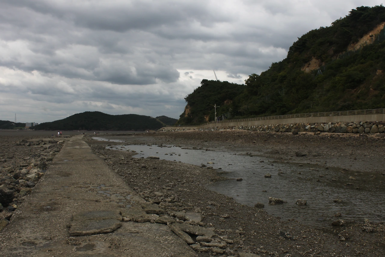 나는 그들과 섞여 있는 게 조금 부담되어 빠른 걸음으로 섬의 입구를 지나쳐 길의 끝에 다다렀다. 그 끝에서 바라본 바다는 경주 남산의 ‘운주사 천불 천탑’을 바라보는 듯한 착각을 일으키며, 굴의 흔적이 남아 있는 바위와 돌조각들이 멀리 녹색 은색 바닷물과 함께 조화를 이루고 있었다.