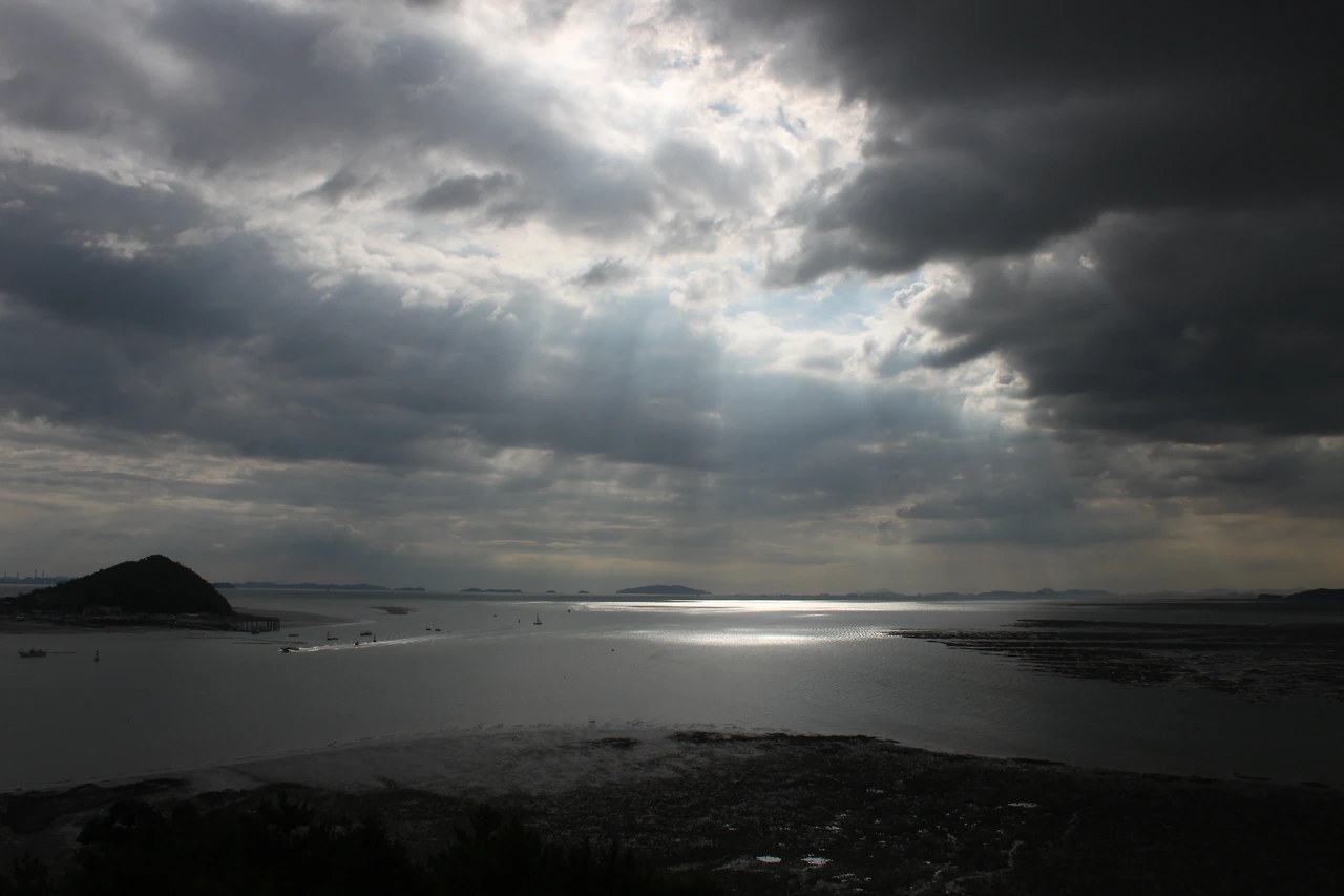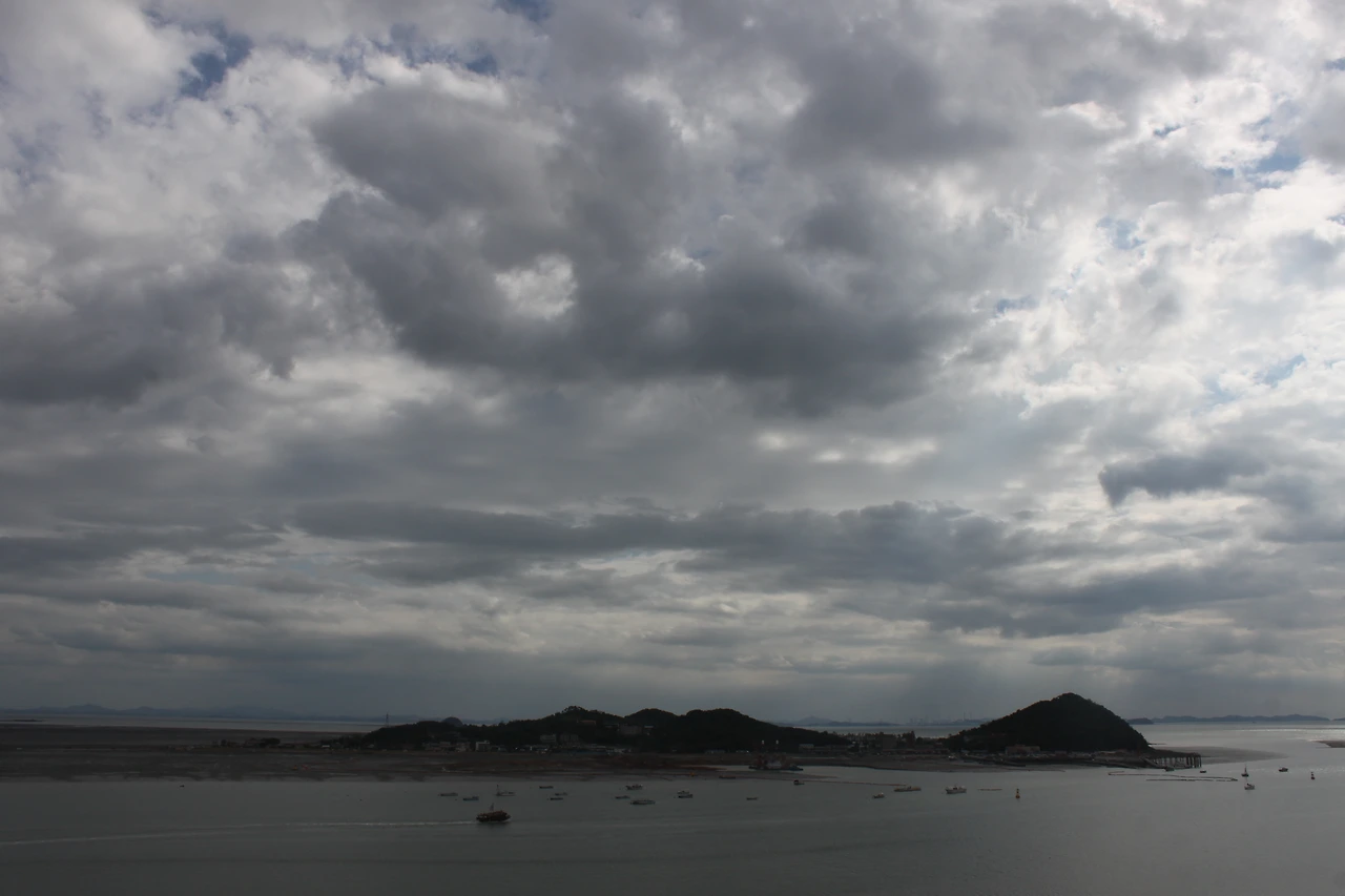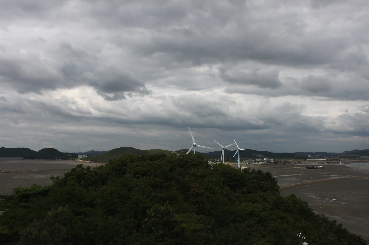 한쪽으론 저 멀리 충남 당진에는 비가 내리는 모습이 희미하게 보이고,