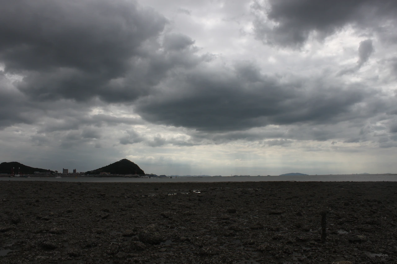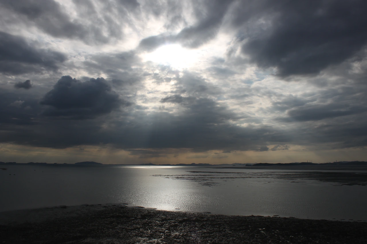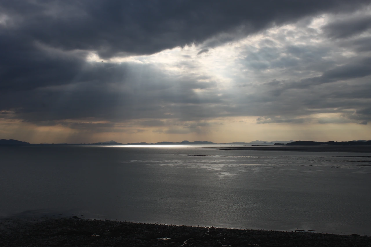 한쪽으론 저 멀리 충남 당진에는 비가 내리는 모습이 희미하게 보이고,