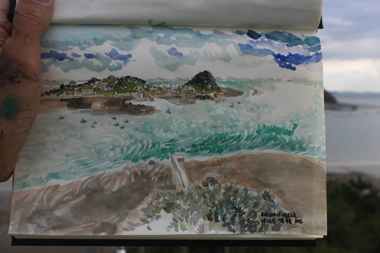 그 느낌들을 놓치기 싫어 제부도를 보며 스케치 북에 박아 낸다.