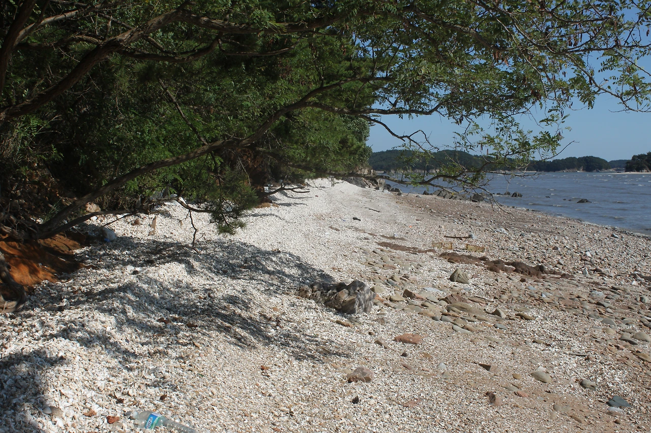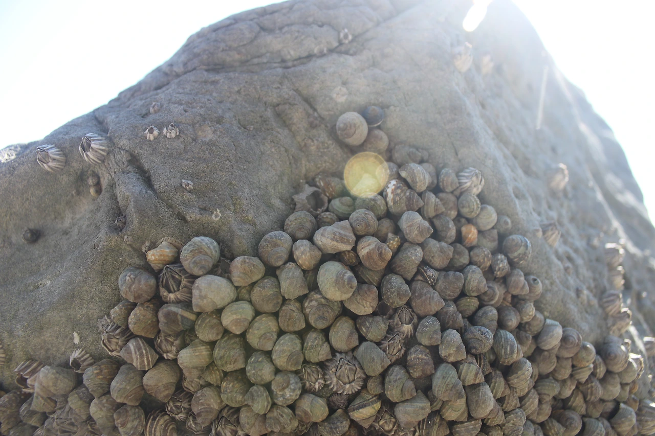 바다고둥들이 해변 바위 뒤로 꽤 많다.