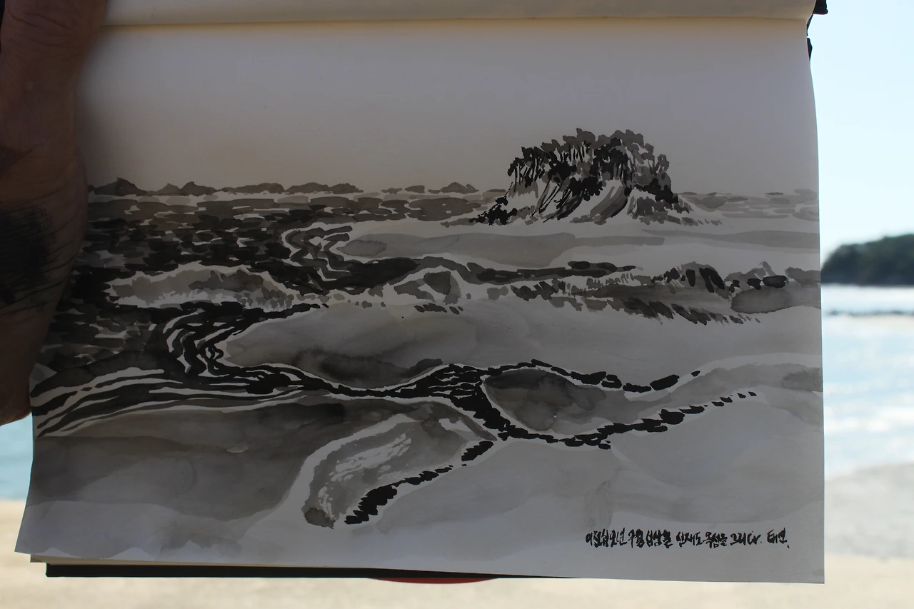 스케치를 하는 사이 물이 빠르게 밀려 들어와서 다 그리고 나서는 다른 풍경이 있었다.