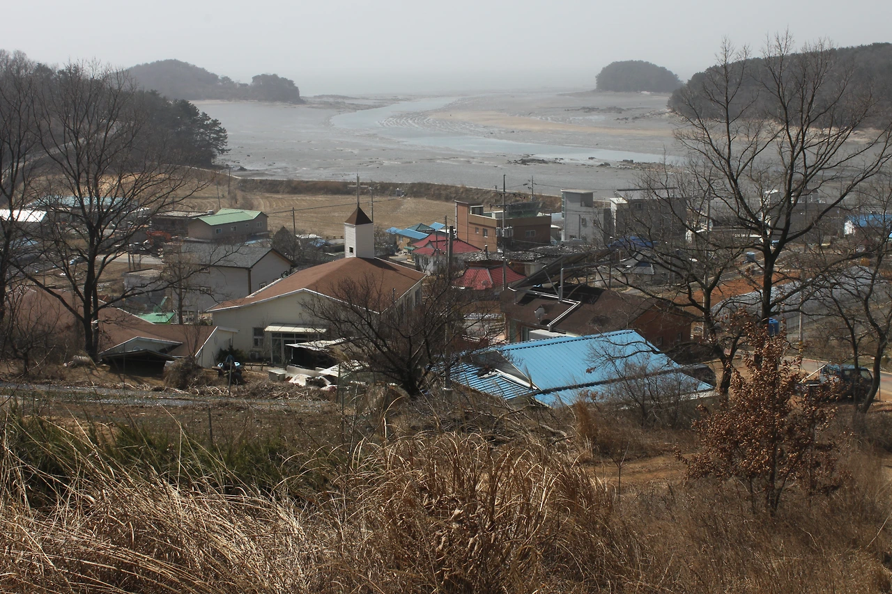 '수기 해변 전망대'에 도착하니 밀물로 인해 지나온 바닷가가 모두 잠겨 있었다.