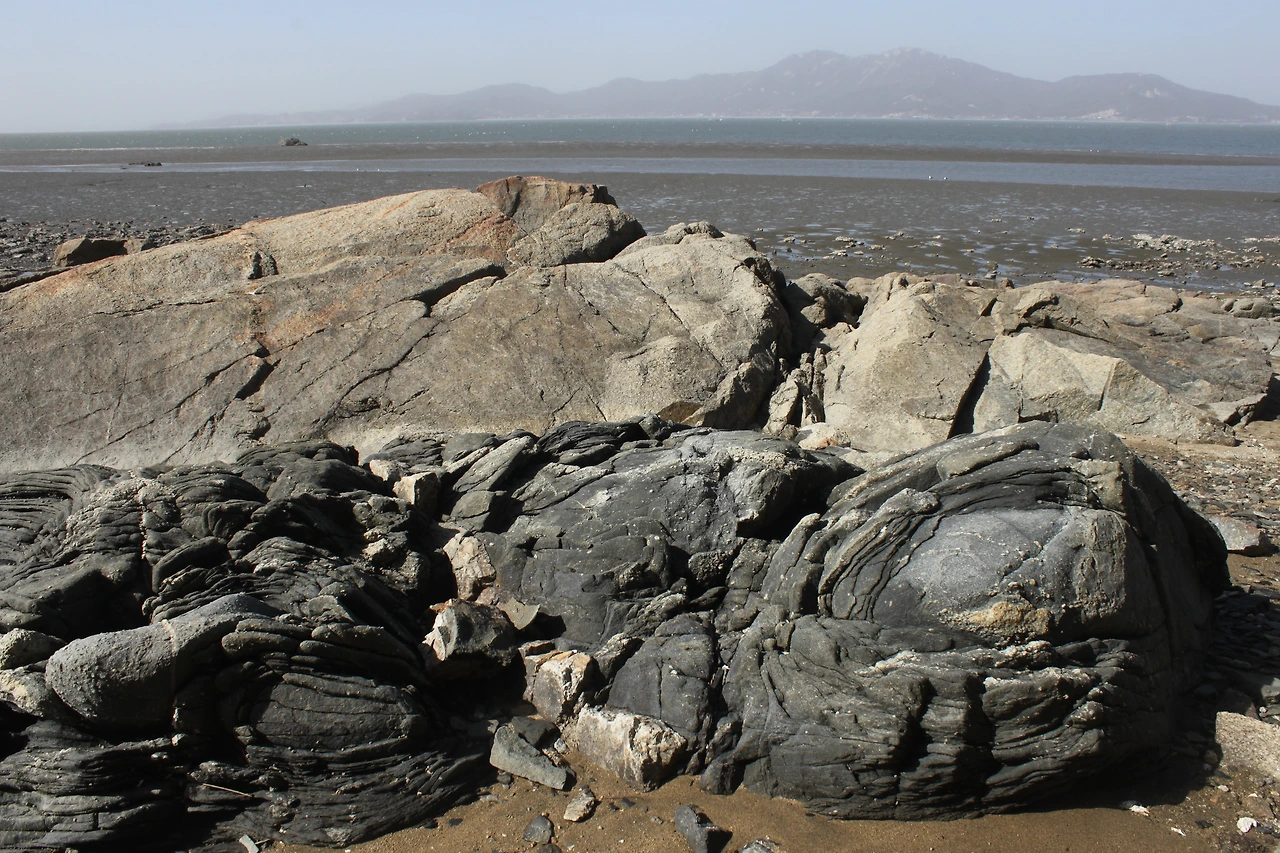 '개구지'라는 바닷가 바윗길을 따라가다 이상한 바위들의 모습을 탐구하다 '수기 해변'에 도착했다.