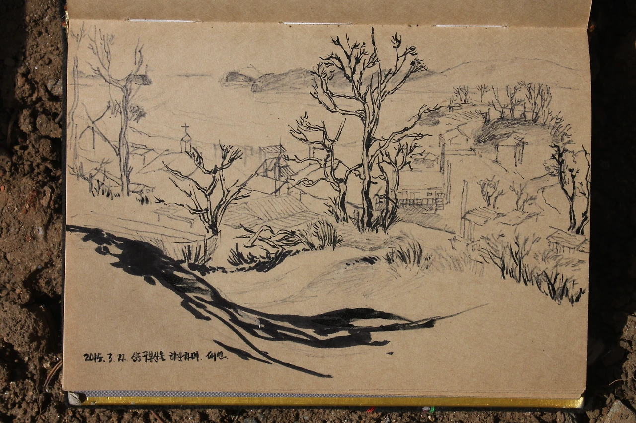 이른 초봄의 정취를 느끼며 스케치하고자 과 선배님 두 분을 모시고 이미 익숙하지만 갈 때마다 다른 모습을 보여주는 신도 '구봉산'에 가기로 했다.