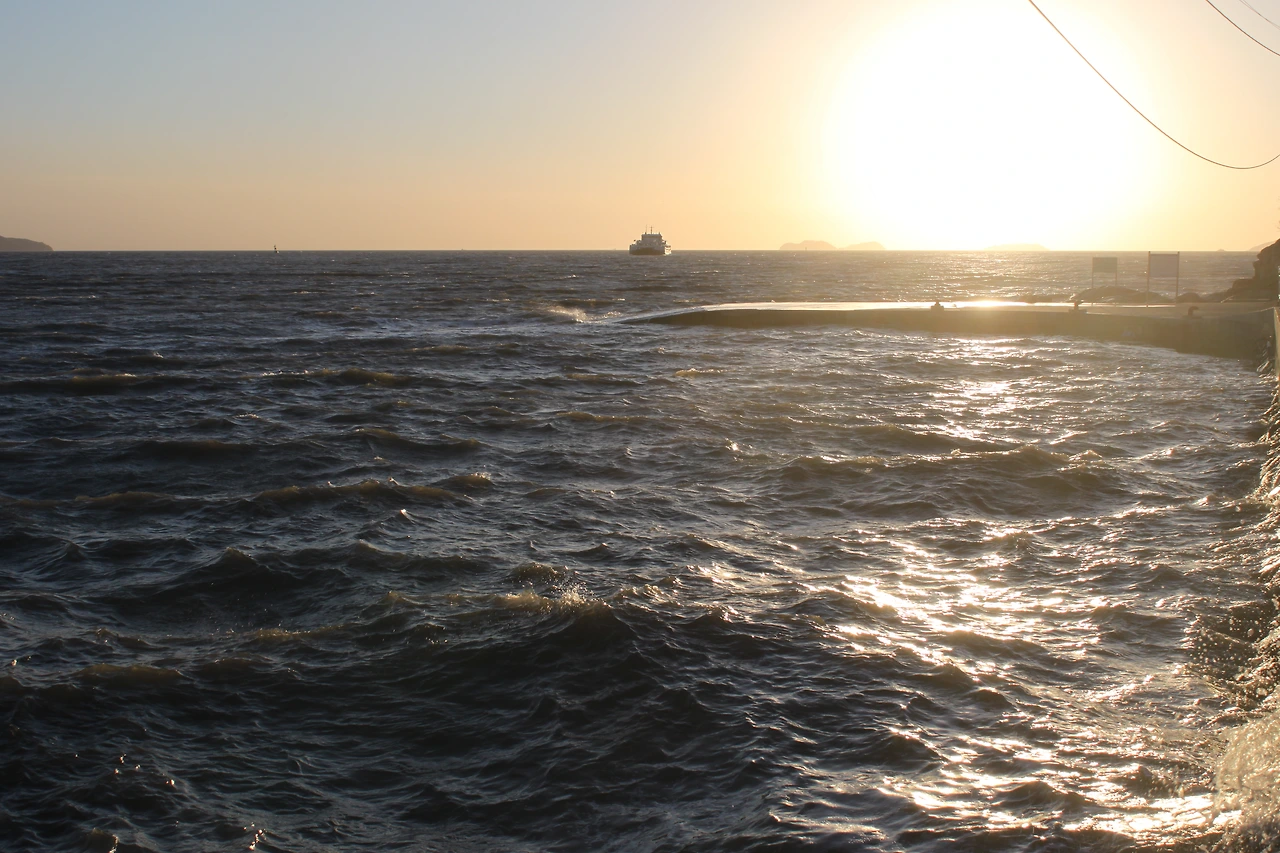 신도 2리 마을이 멋지게 보이는 무덤가에서 스케치를 한 장씩 더 하고 굴을 따고 연륙교를 향해 걸었다.. 바람이 세차서 아침에 결항될 수도 있다는 매표 직원의 말을 상기하고 전화를 해 보니 다행히 정상 운행한단다.