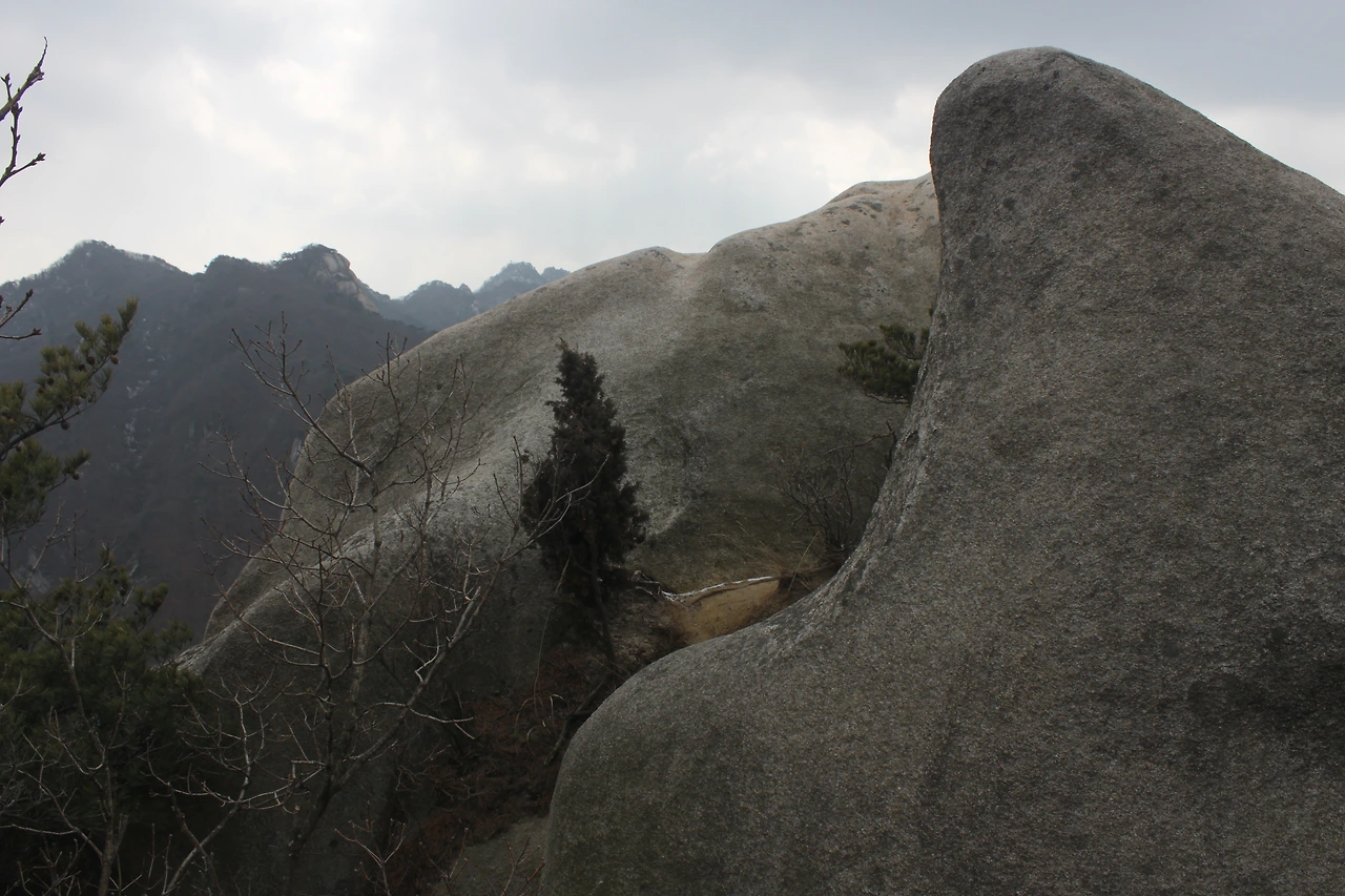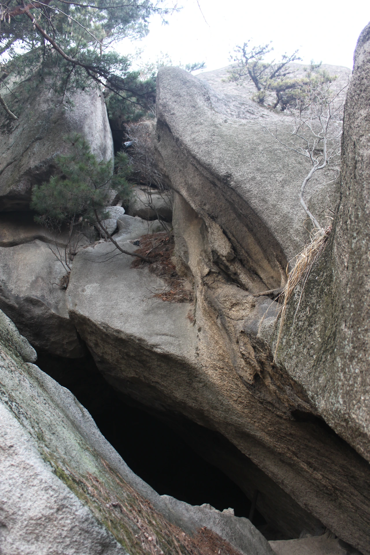 바람이 너무 차가워 바위 뒤에 숨어 있다가 다시 내려가며 범골로 하산하기로 맘먹는다. 가는 길에 동굴도 있고, 바위들도 아름답고, 서울에도 이런 산이 있었구나 싶었다. 불영산 다음으로 아기자기한 산이었다.