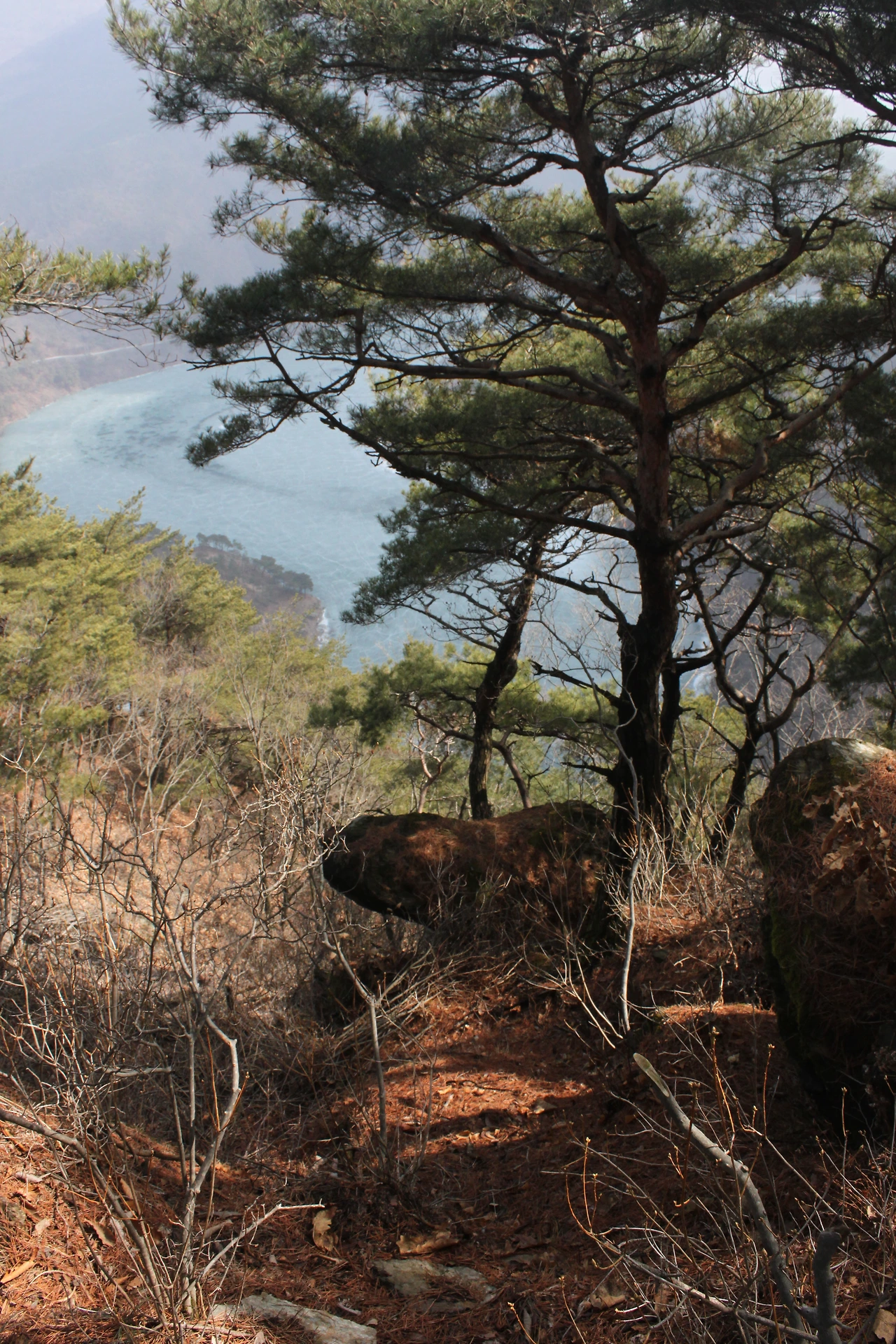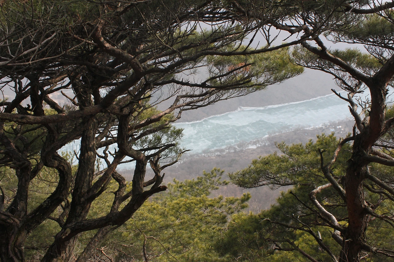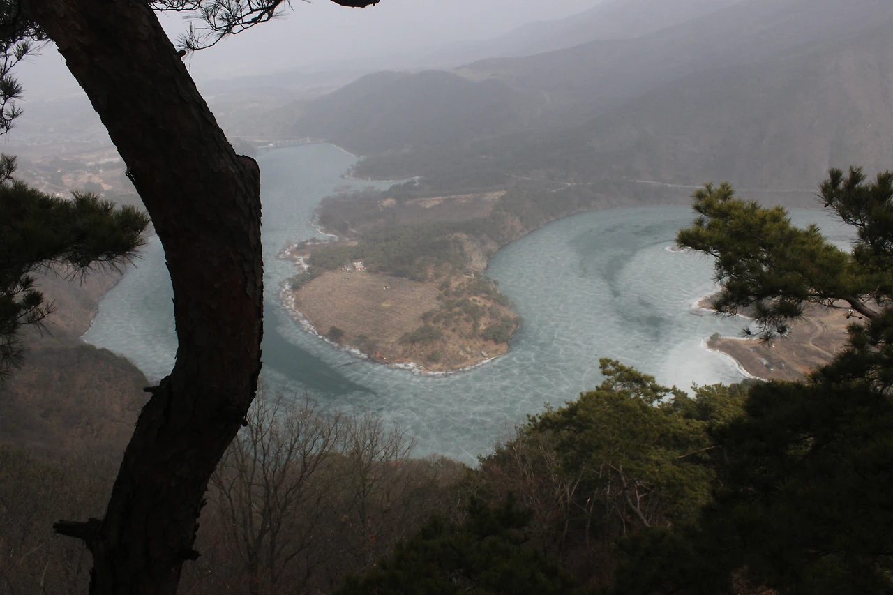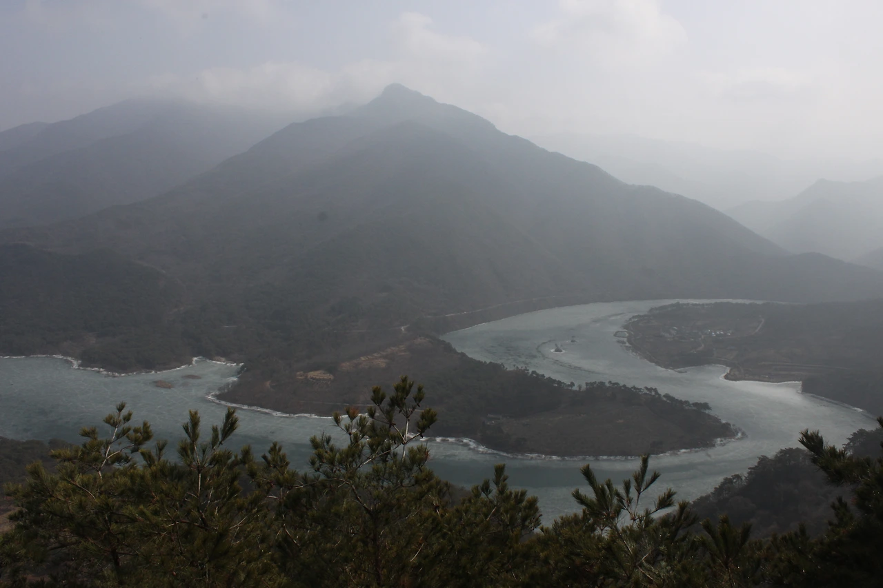 괴산에 내리자마자 시내버스를 타고 정겨운 마을 몇 개를 지나치다 산막이 옛길로 올랐다. 쉬엄 쉬엄 올라가다 가파르고 위험한 길을 오르니 30분 만에 '등잔봉'에 다다른다. 등잔봉에서 바라보는 한반도 모양의 땅은 완전 똑같지는 않지만 그럭저럭 정감 있게 생겼다. 산막이길 최고의 모습은 소나무들의 아름다운 모습에 있었다.