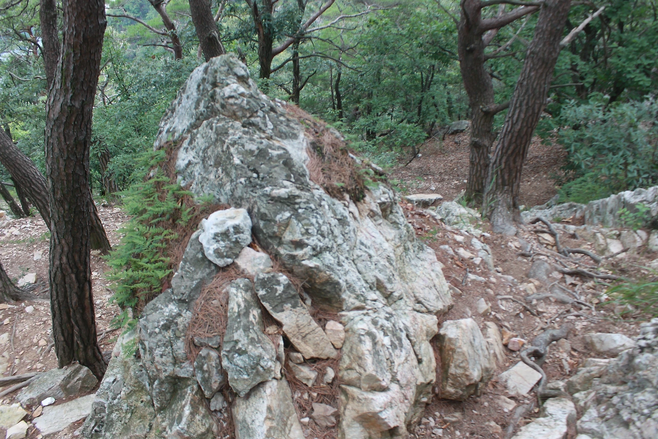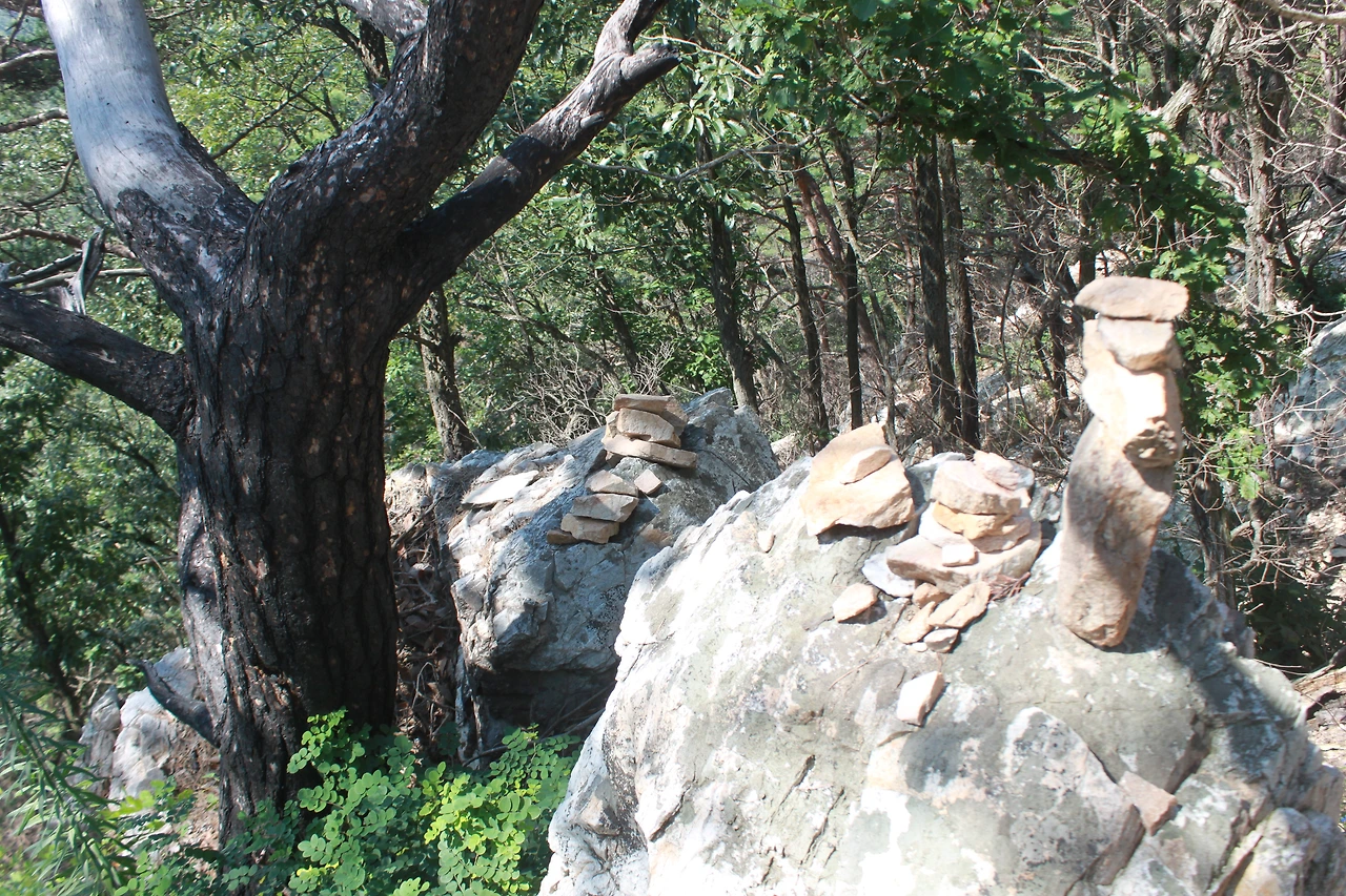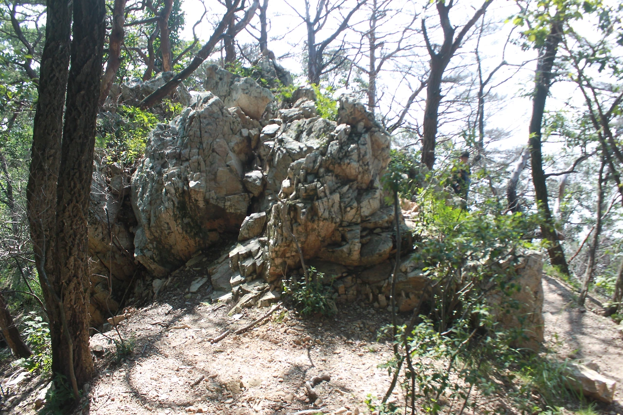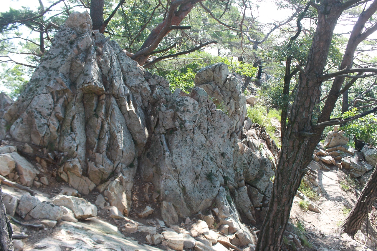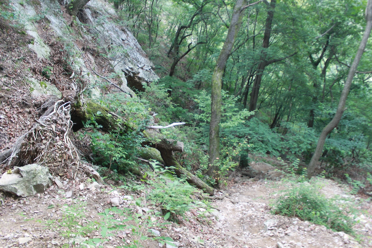 어두운 터널을 헤치듯 계단을 오르고 다시 바위가 많은 산길을 오르니 아름드리 큰 나무들이 나타난다.