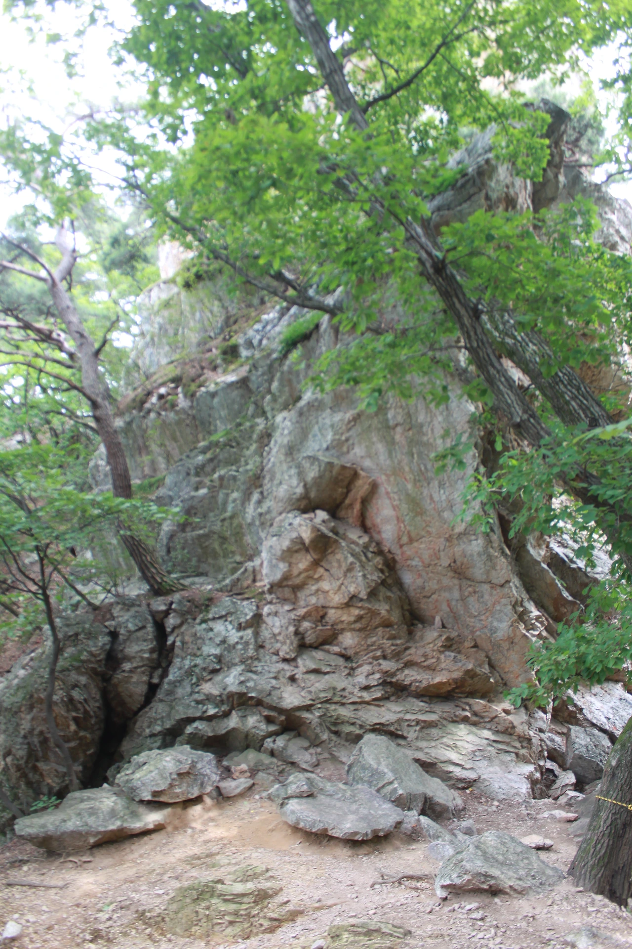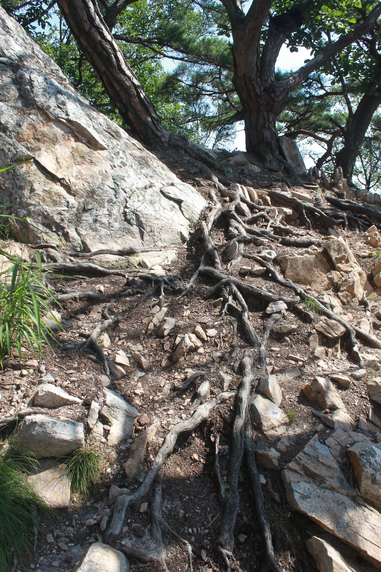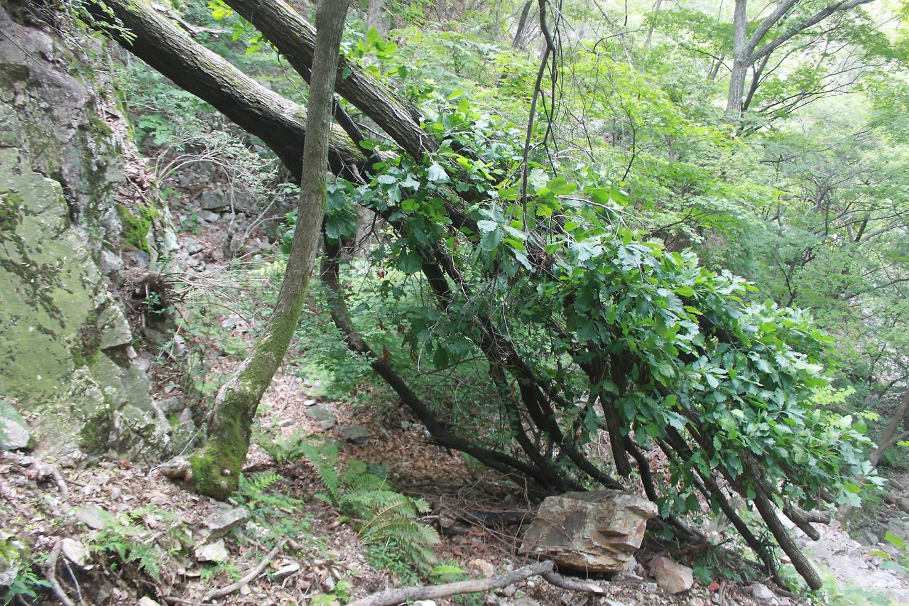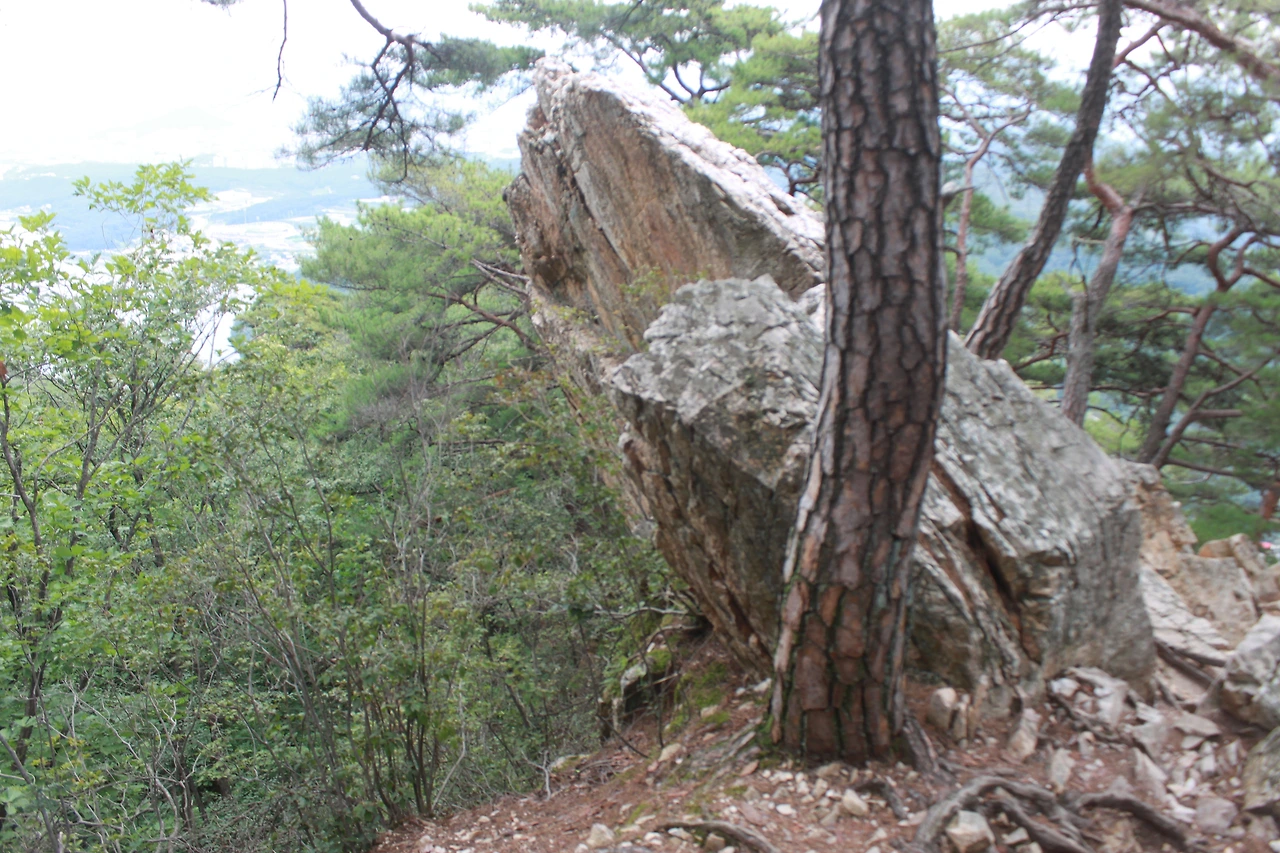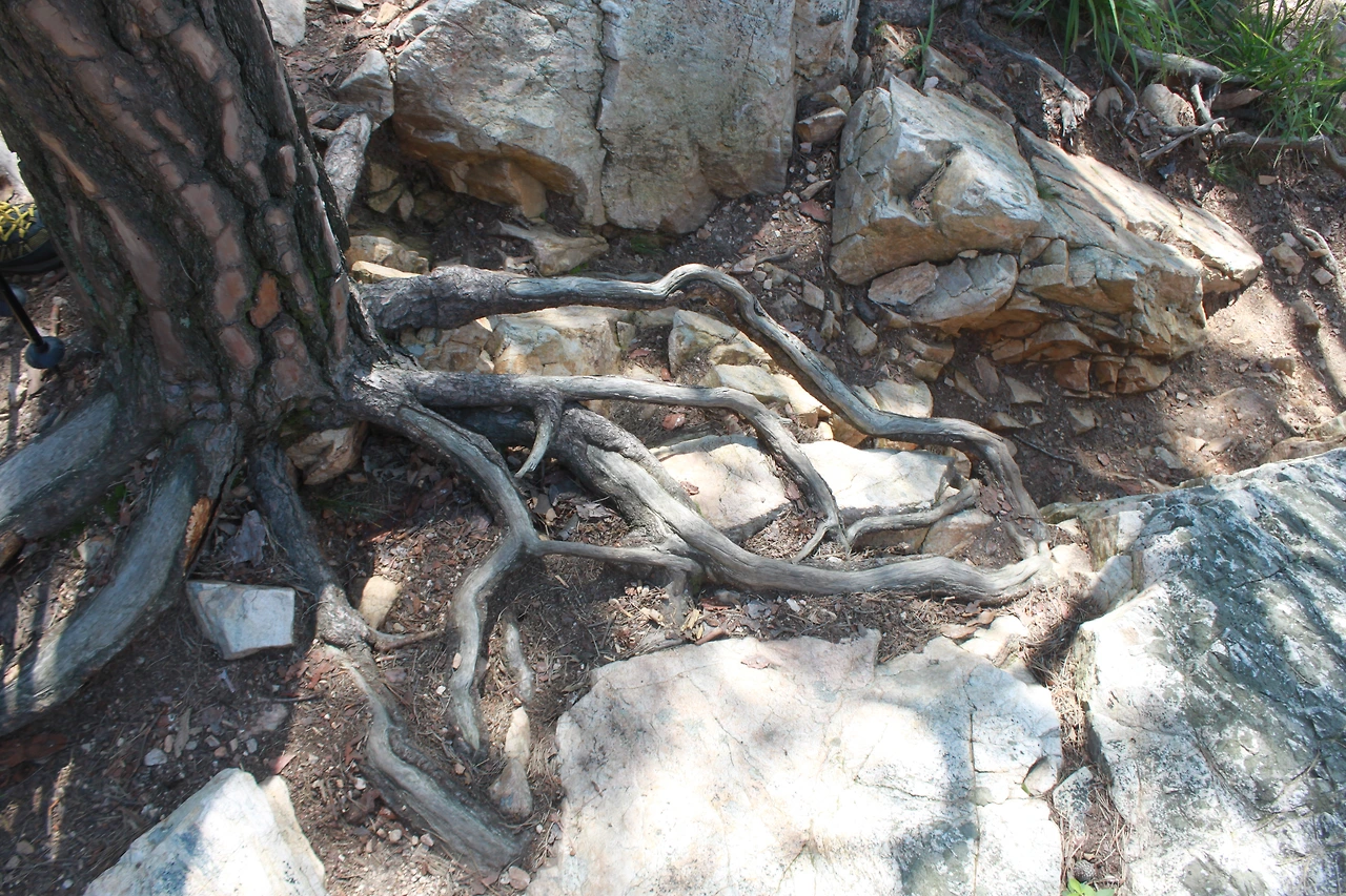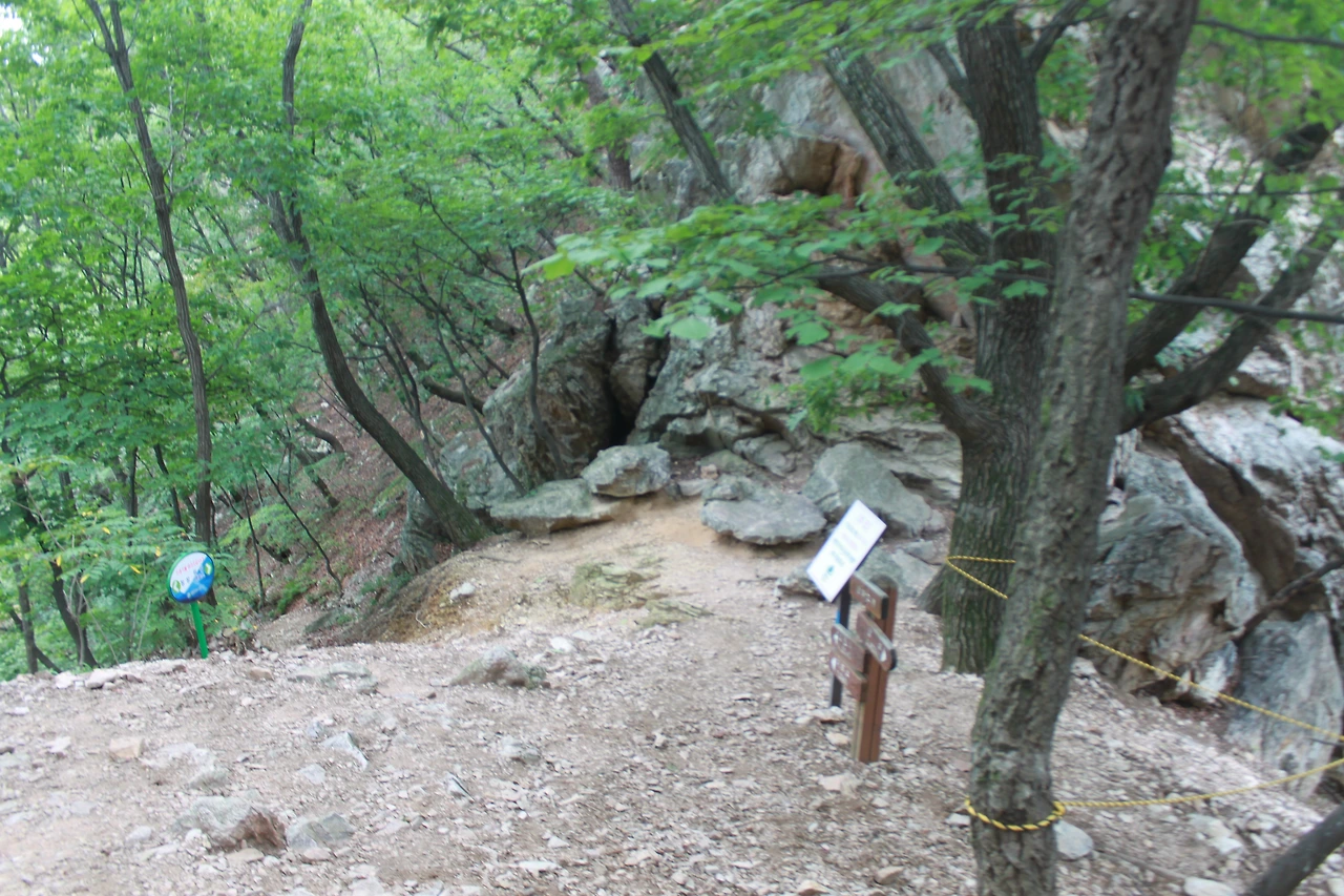 어두운 터널을 헤치듯 계단을 오르고 다시 바위가 많은 산길을 오르니 아름드리 큰 나무들이 나타난다.