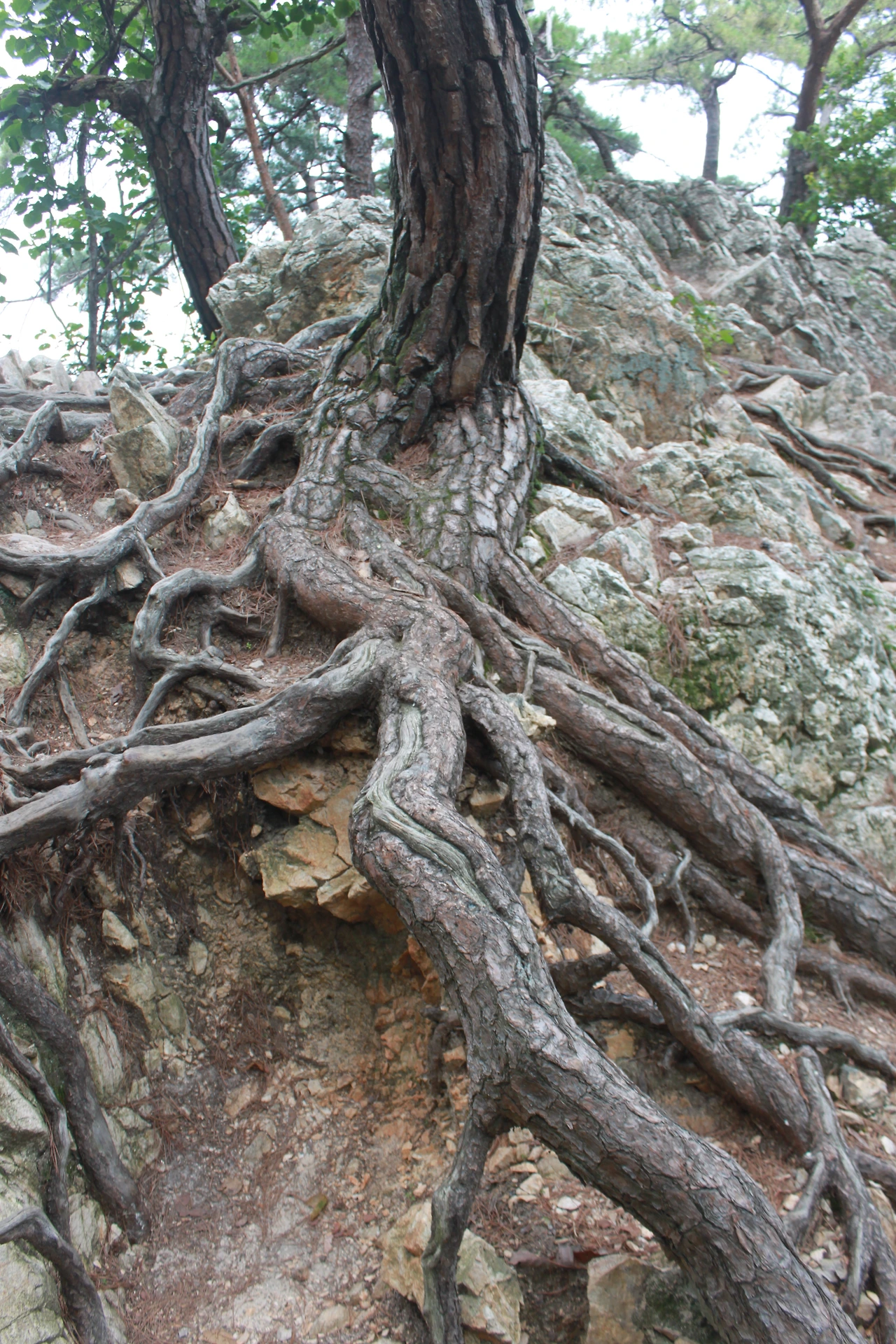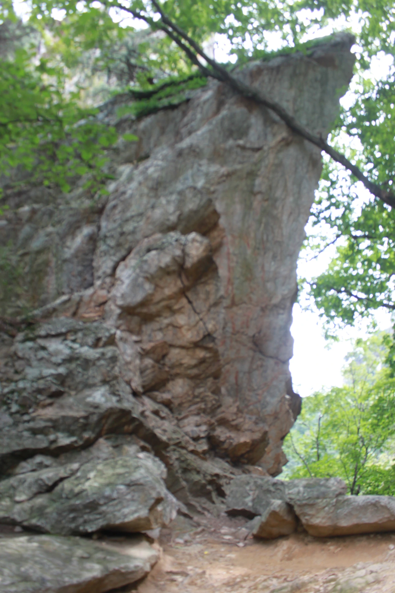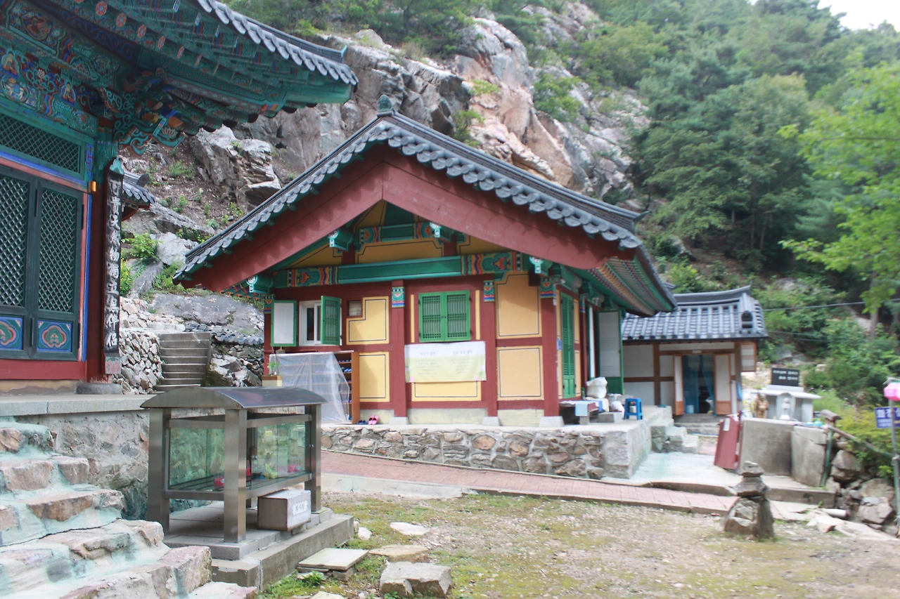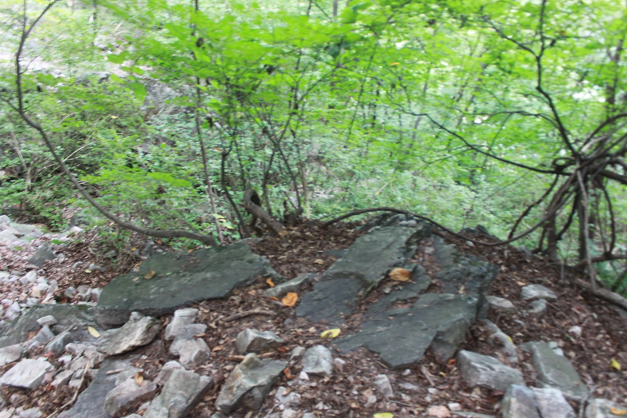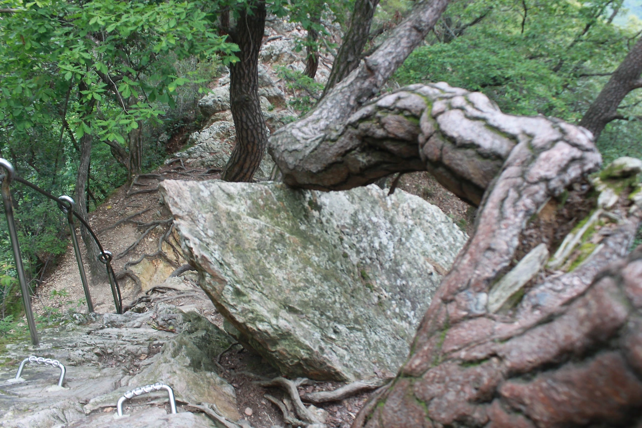 어두운 터널을 헤치듯 계단을 오르고 다시 바위가 많은 산길을 오르니 아름드리 큰 나무들이 나타난다.