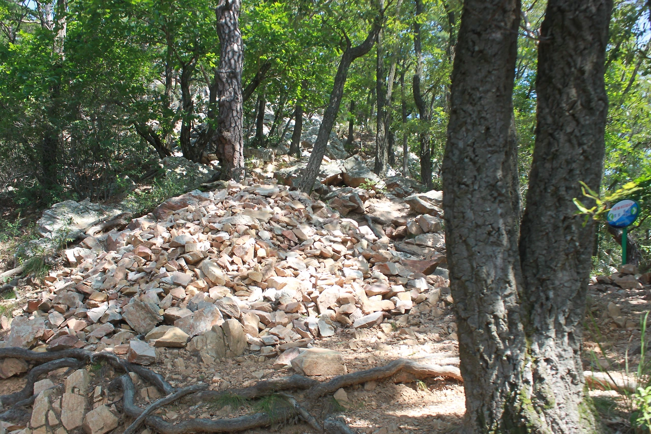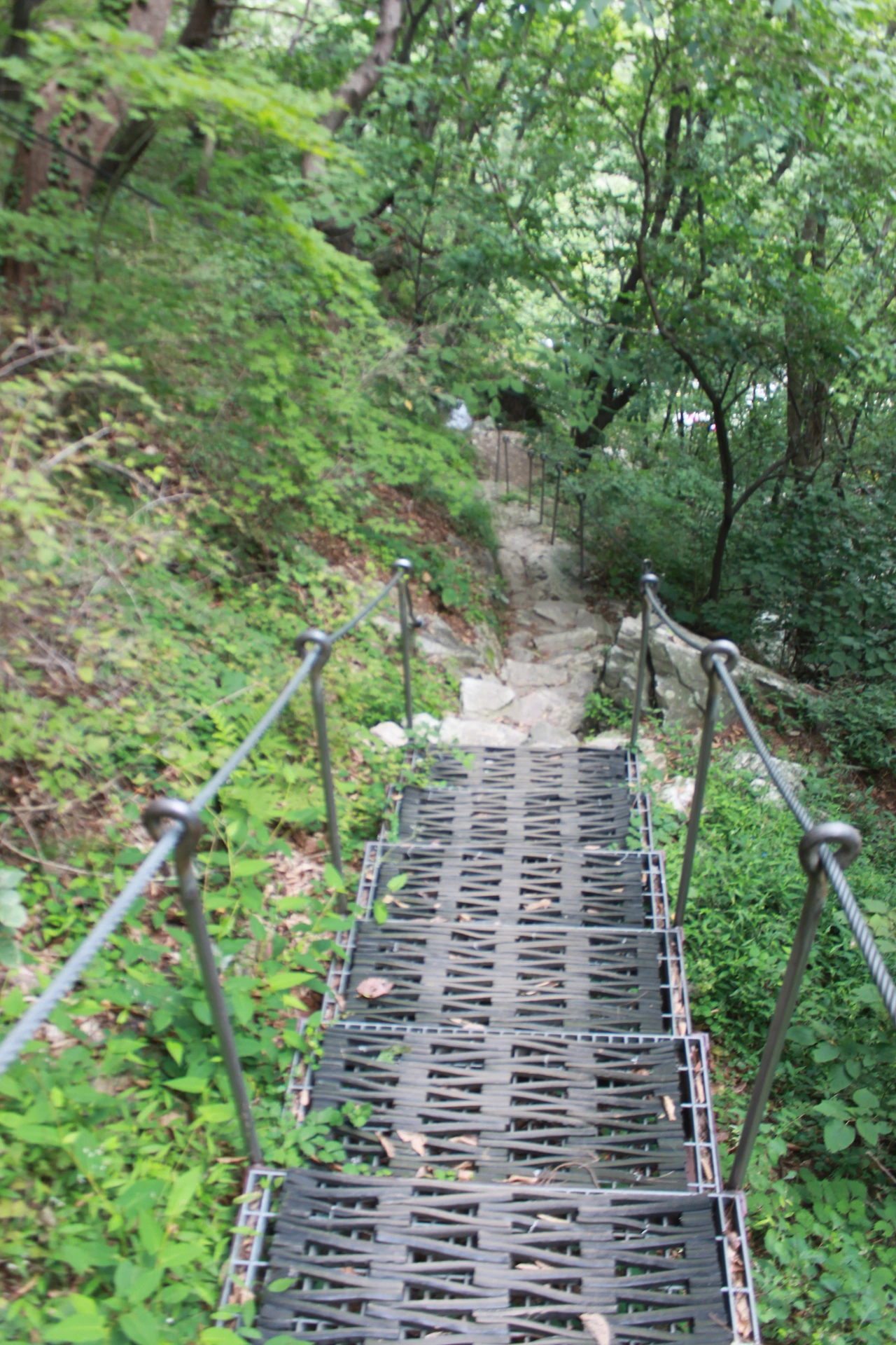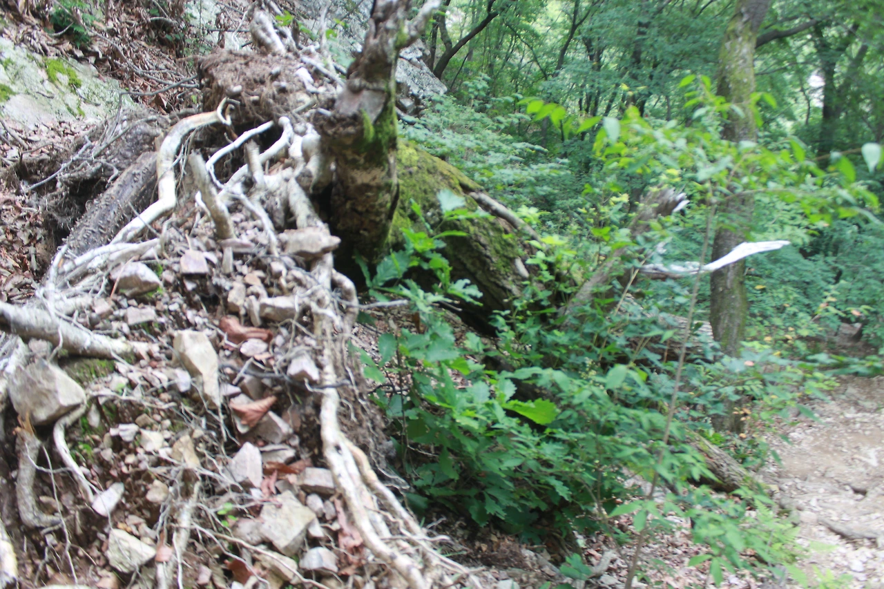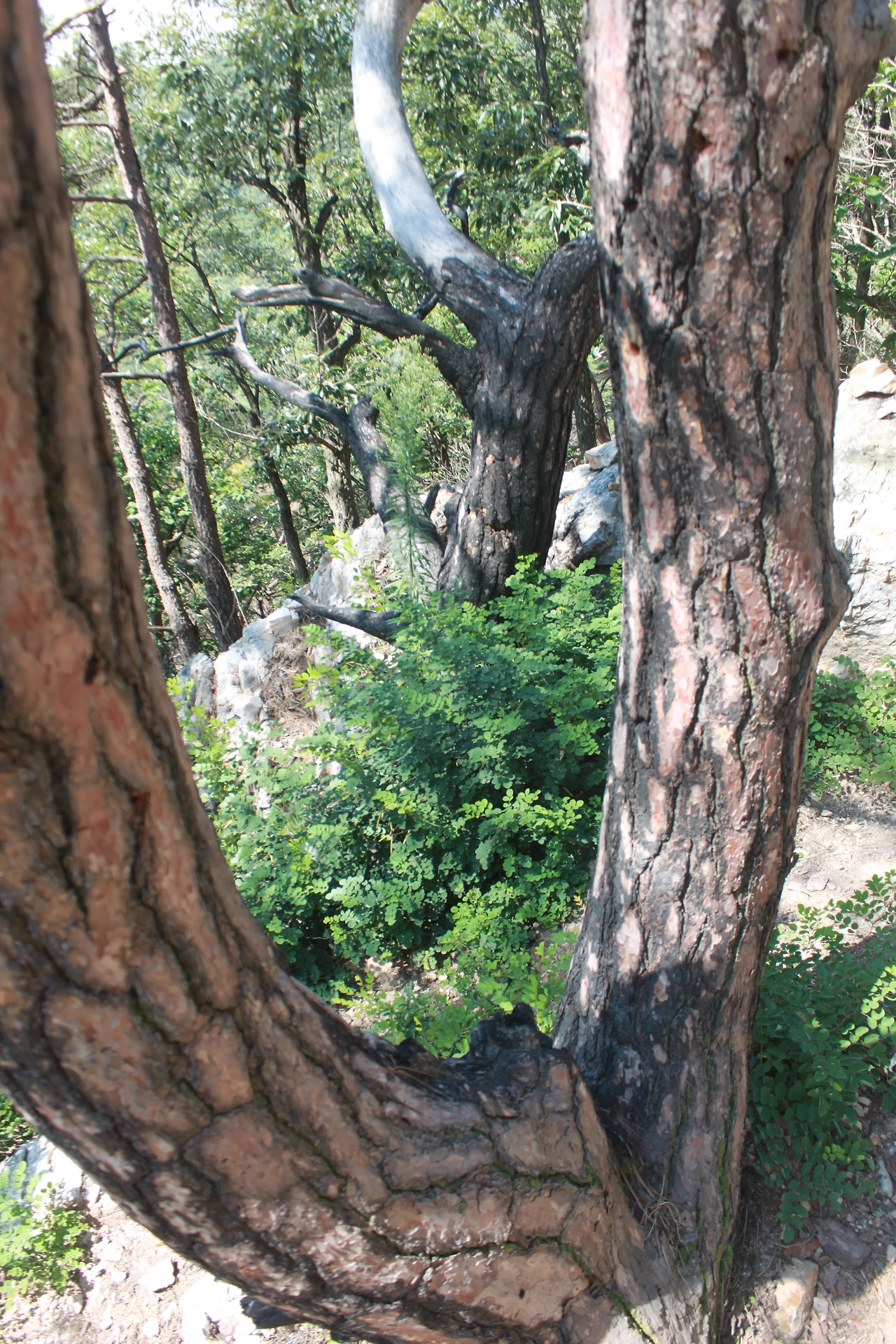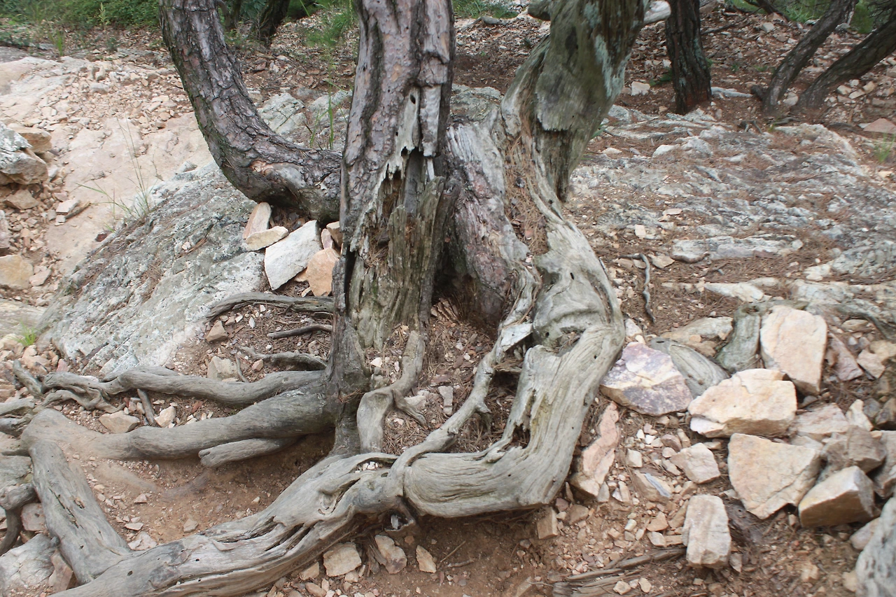 어두운 터널을 헤치듯 계단을 오르고 다시 바위가 많은 산길을 오르니 아름드리 큰 나무들이 나타난다.