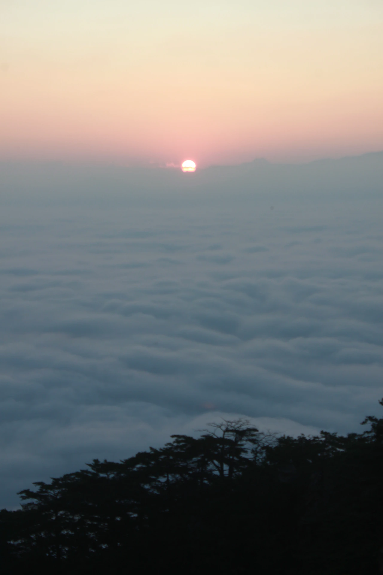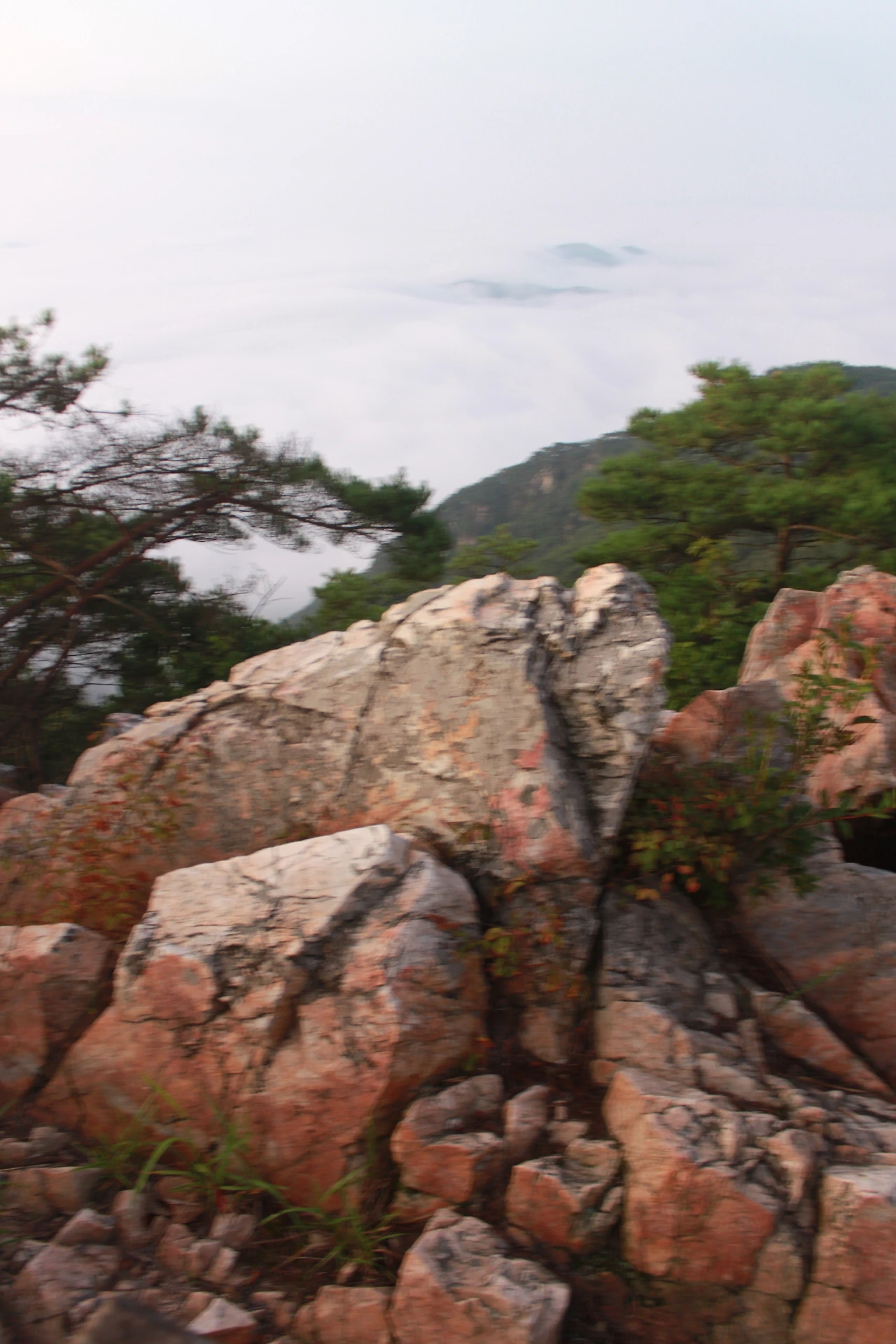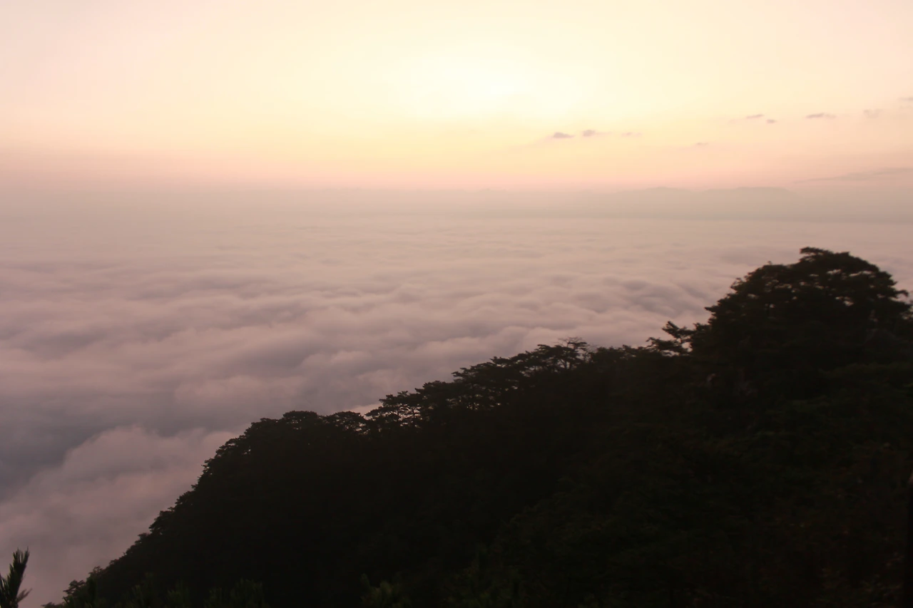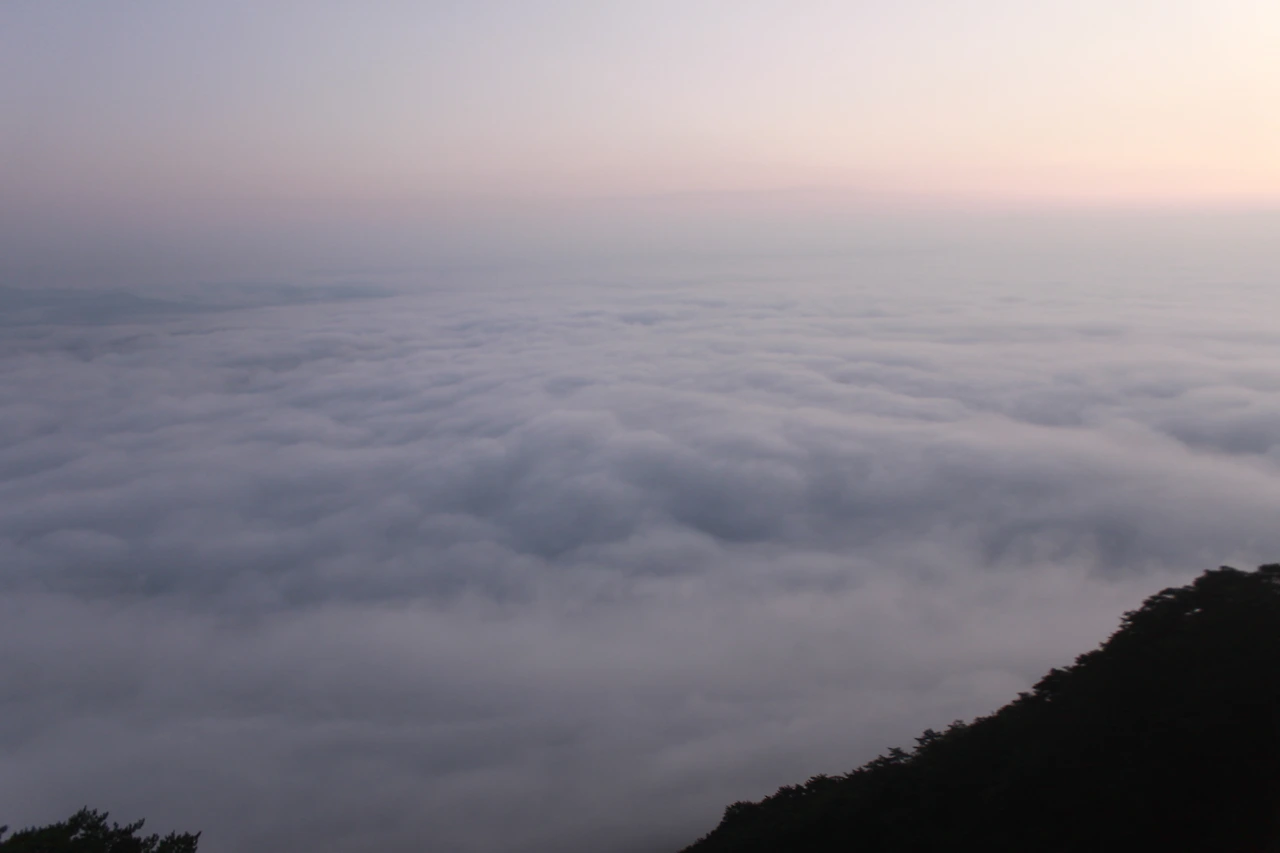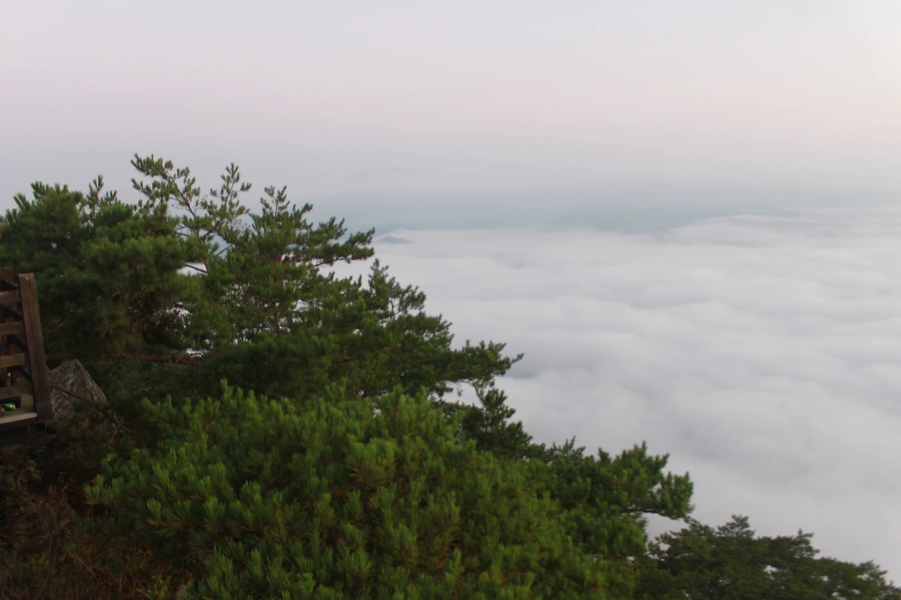 아침 해가 붉은 혀를 내밀기 시작하고, 세상은 마치 나를 중심으로 구름 위에 둥둥 떠 있는 것처럼 사방이 구름으로 그득하다.