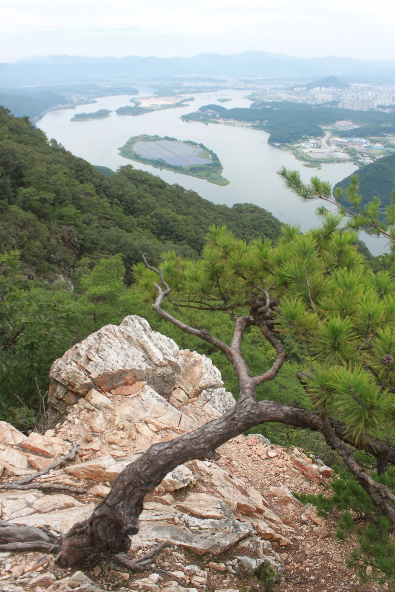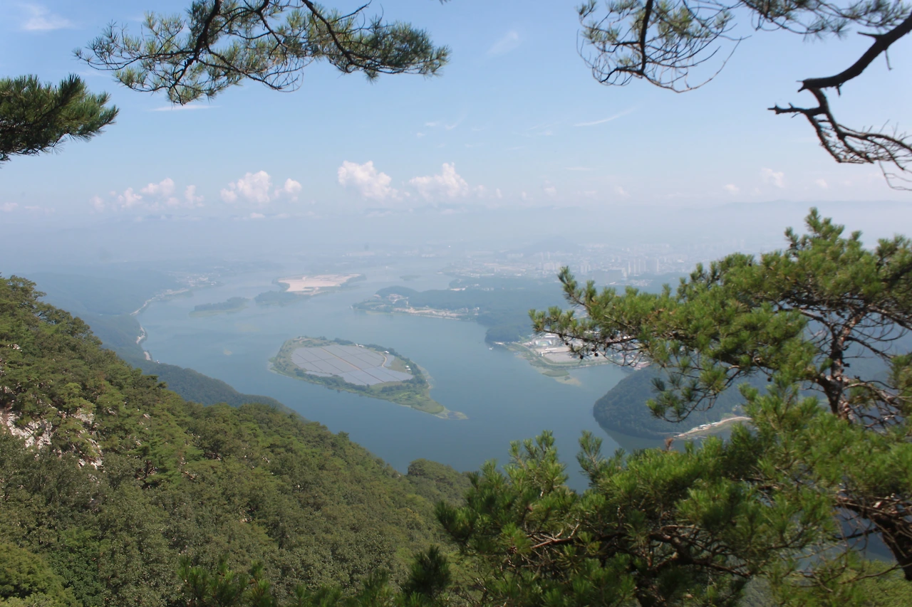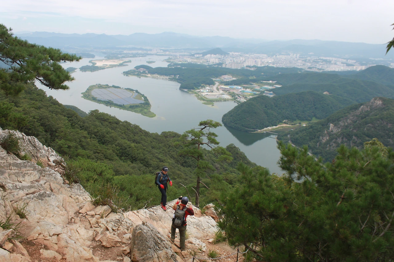 30여분 내려왔을까? 절벽 위로 내려다 보이는 춘천의 모습이 한눈에 보인다.