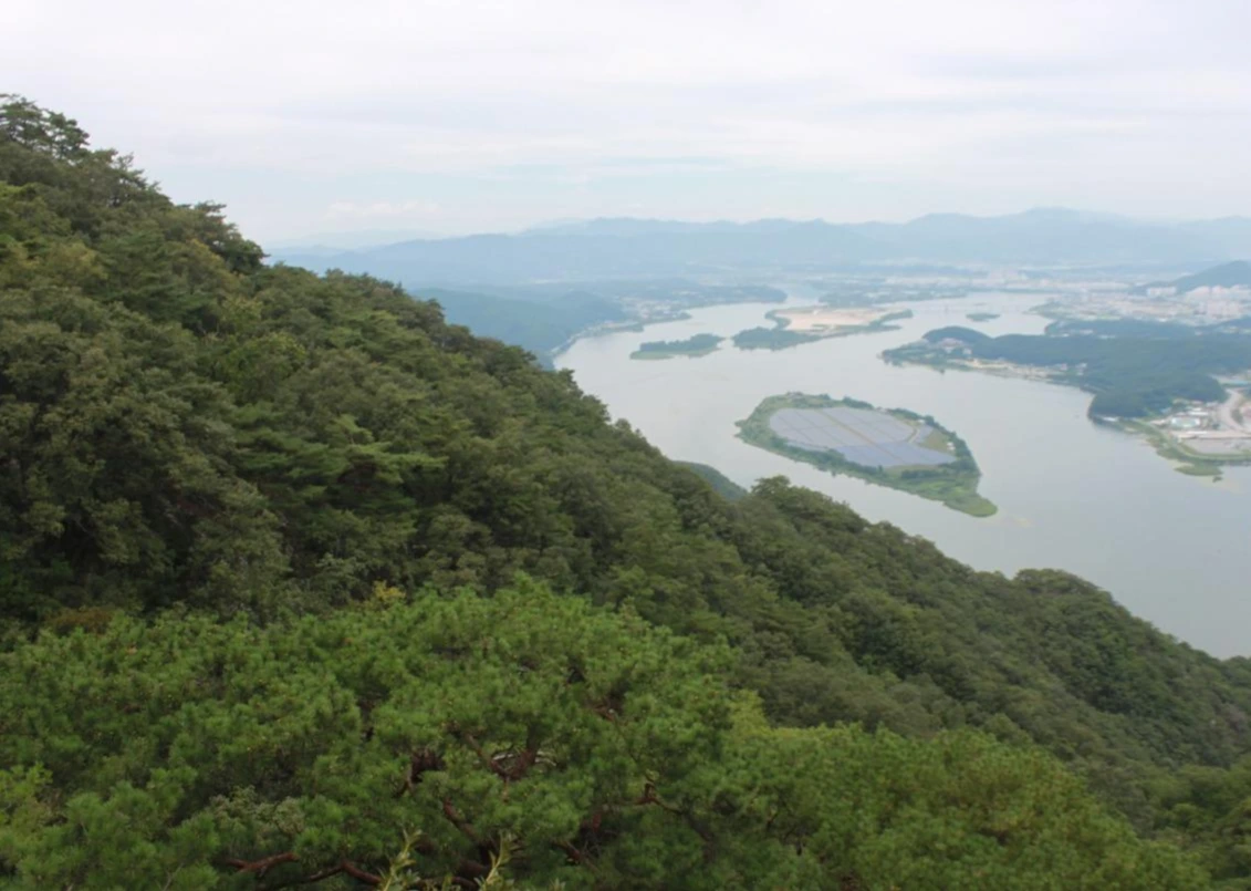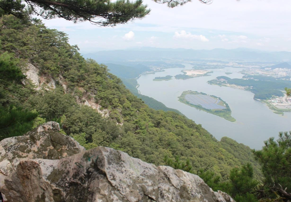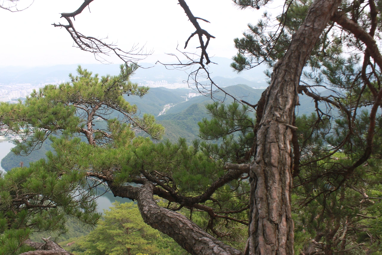 30여분 내려왔을까? 절벽 위로 내려다 보이는 춘천의 모습이 한눈에 보인다.