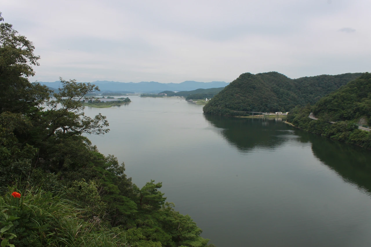 온몸이 땀범벅되어 내려오니 보이는 의암댐, 길 따라 올라가 다리 건너기 전 손을 들어 탄 50번 버스로 포스코 아파트에 내려 춘천 사람들이 더 많이 간다는 '1.5 닭갈비' 집에서 닭갈비를 먹고 '남춘천역'으로 이동해 '춘천'과 '삼악산'의 아름다움을 온몸으로 느끼고 온다.