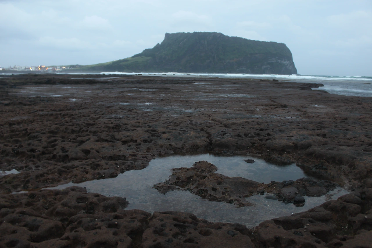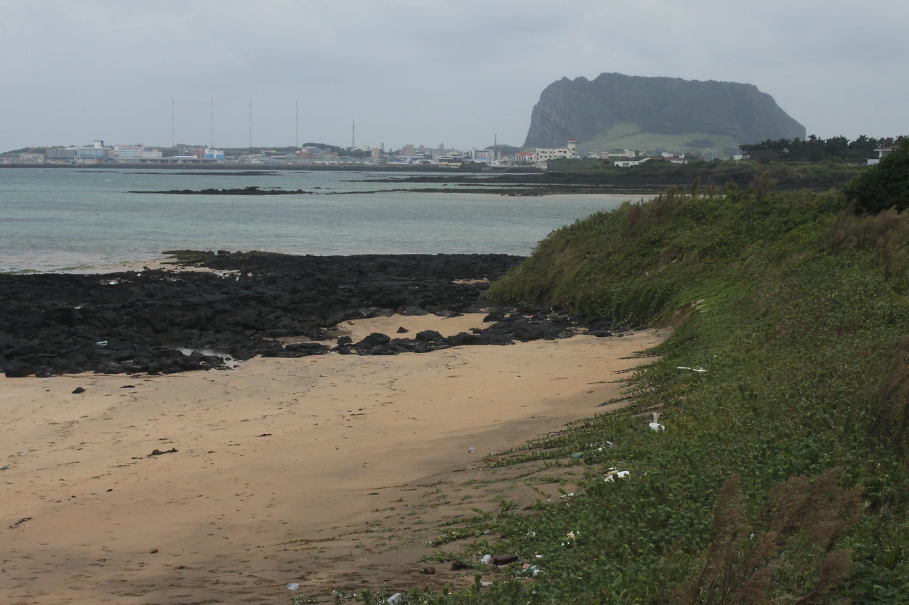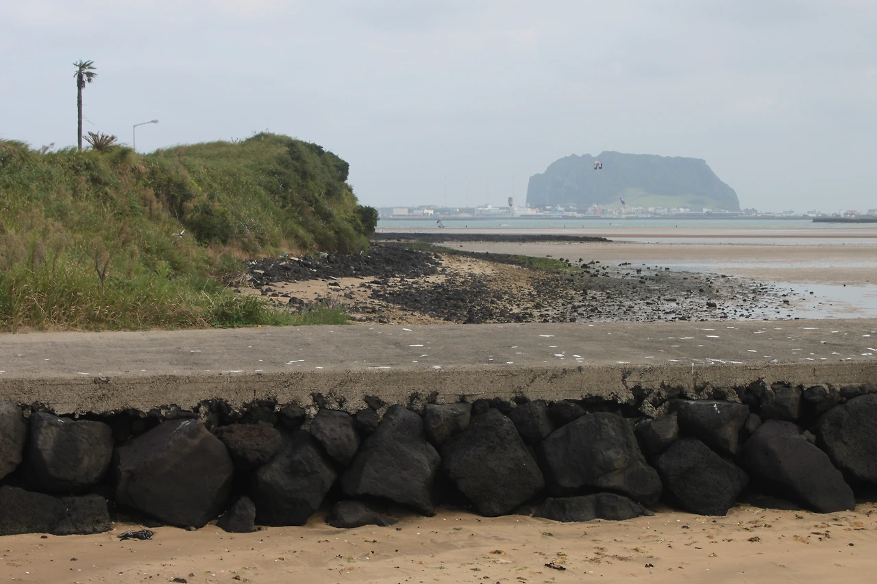 광야처럼 모래가 끝없이 늘어져 있어서 광치기 해변이라고 한다는데 이쪽 방면에서의 일출봉은 숨겨진 아름다운 아기 속살 같은 모습이었다. 거뭇한 모래를 밟고 걸으며, 일찍 어둑해지는 하늘과 함께 간신히 올레길 1코스 종점에 도달할 수 있었다.