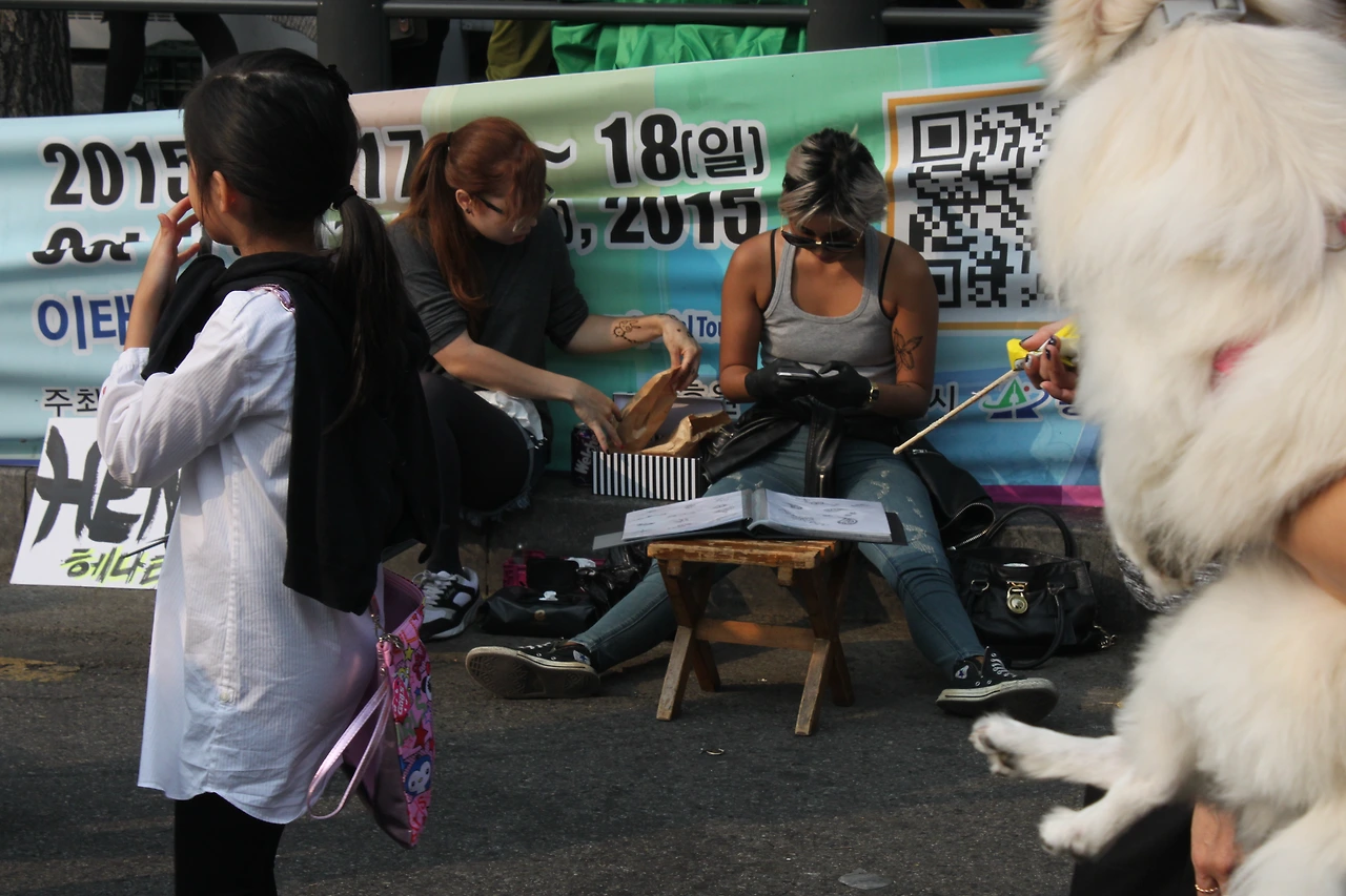 그곳에서 시작해 거리는 녹사평까지 쭉 이어지는데 제일 먼저 눈에 띈 곳은 케밥을 파는 '터키 부스', 이어서 인기 있는 곳은 영화에서도 인기 있었던 '쿠바 샌드위치', 그리고 연이어 인기 있는 곳은 홍콩식 꼬치 구이 뭐 각 나라 음식들 모두 자부심들이 대단해 인기 없는 곳이 없었으나 위 부스들에 선 줄의 길이는 혀를 내두를 만큼 긴 줄을 자랑하고 있었다.